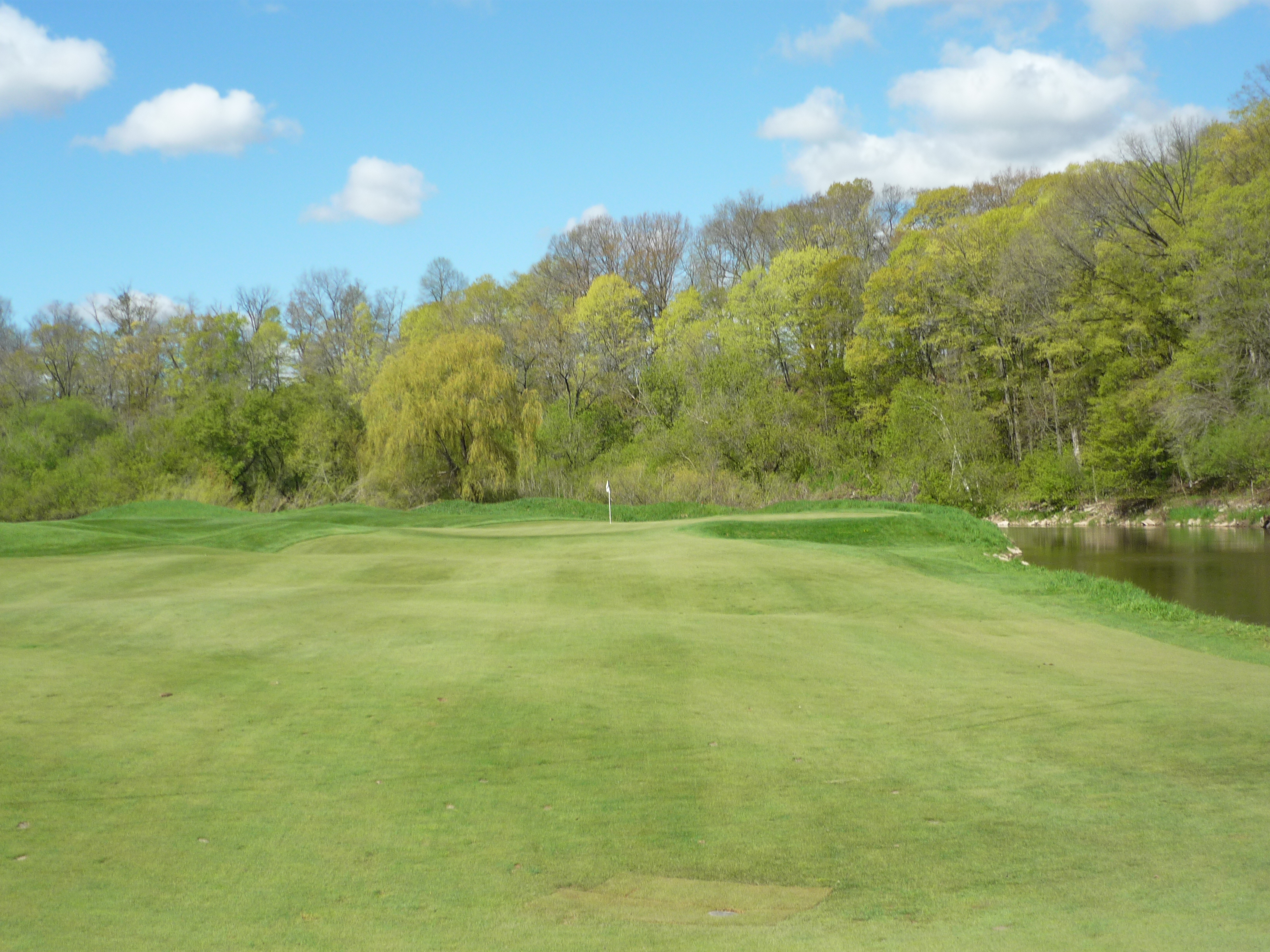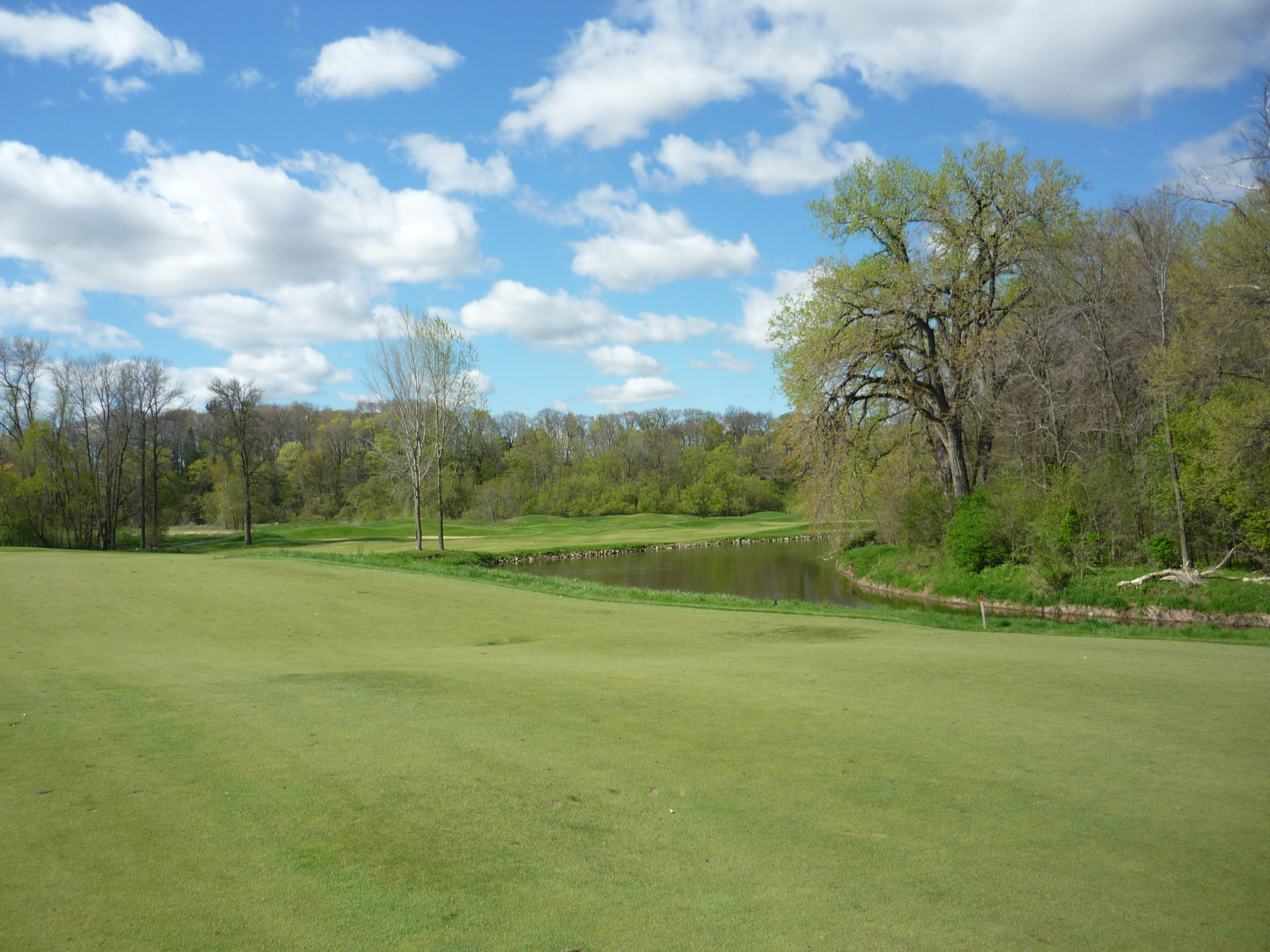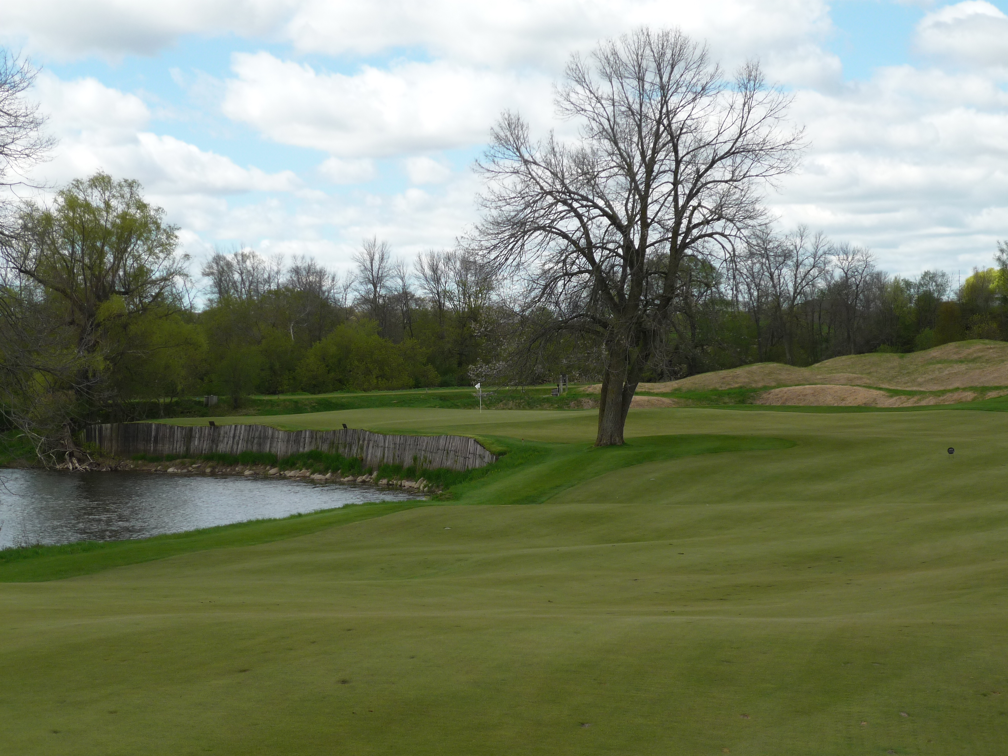 The Sheboygan River is the main feature on this hole and you will see it throughout the course. The landing area is generous but this will be a three-shot hole for many.