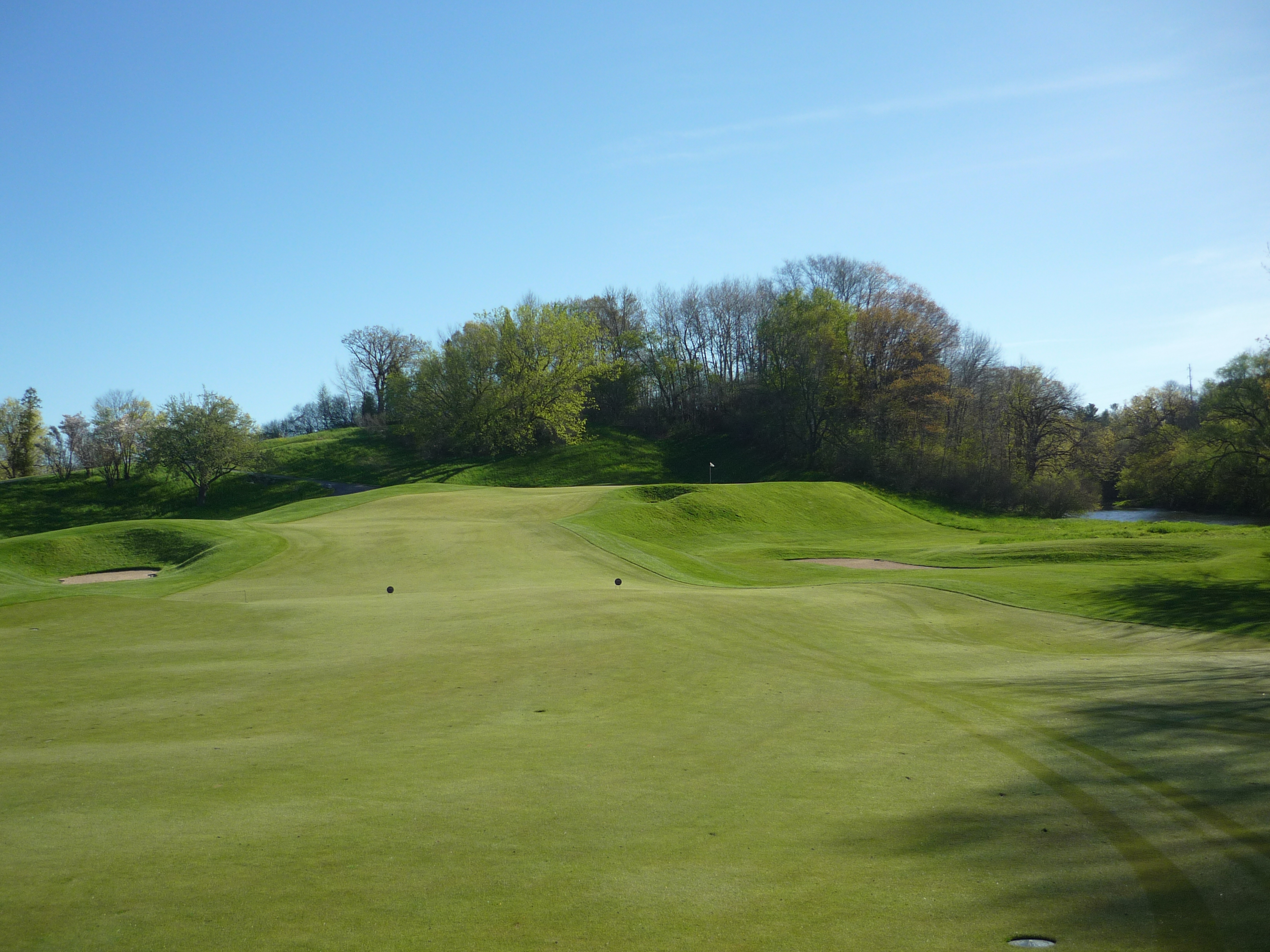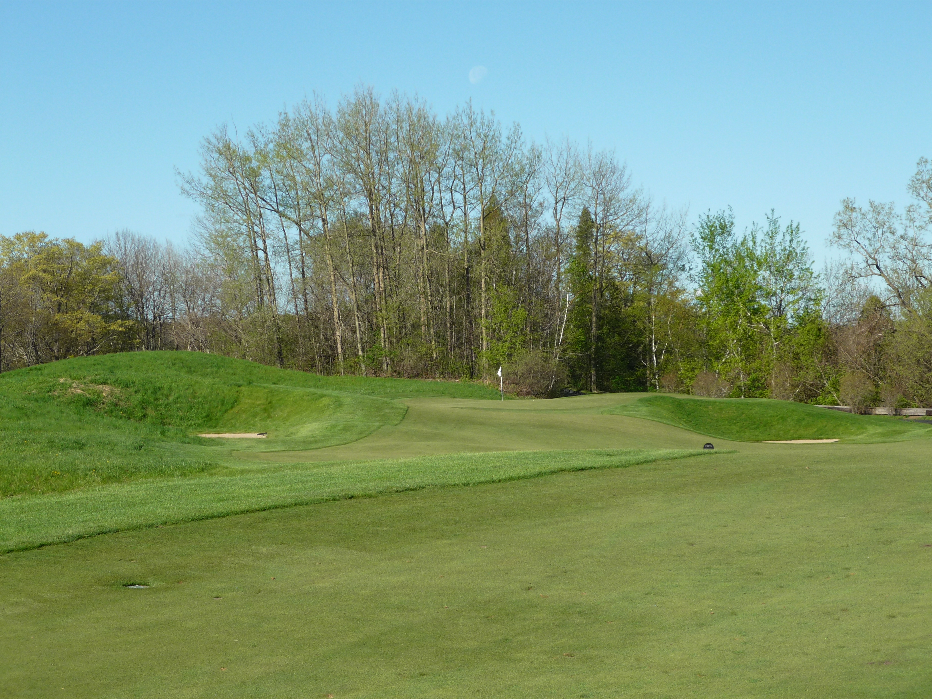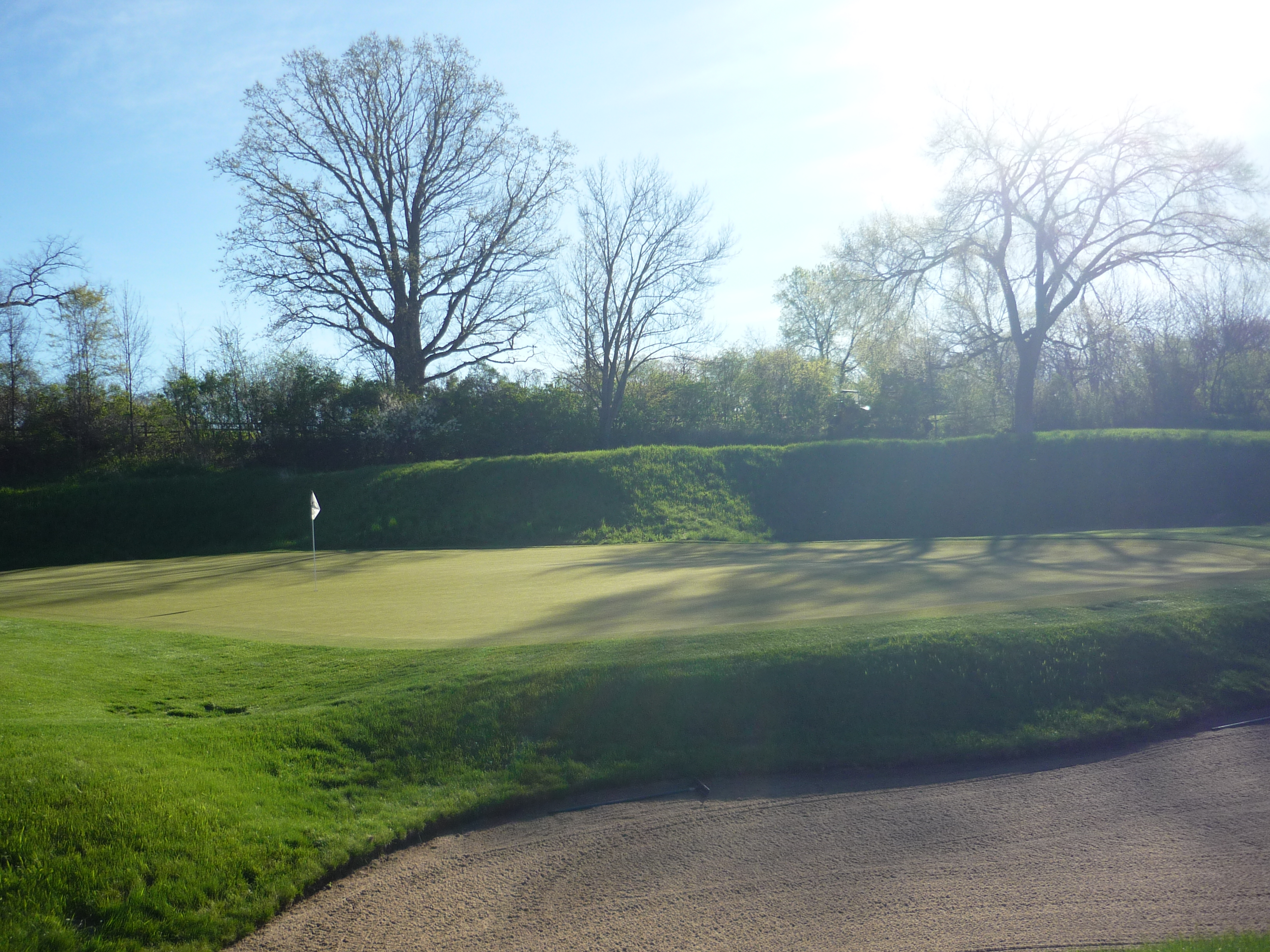Be aware of the bunkers that guard the green. You can see them below in this view from behind the putting surface.