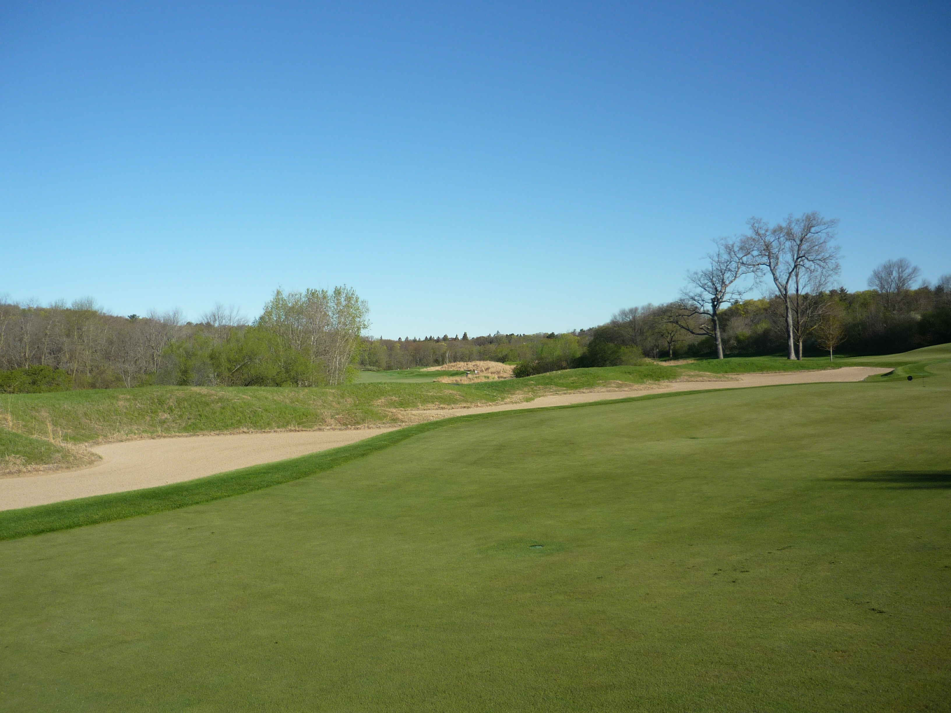 The massive bunker below runs along the right side of the hole’s second half.