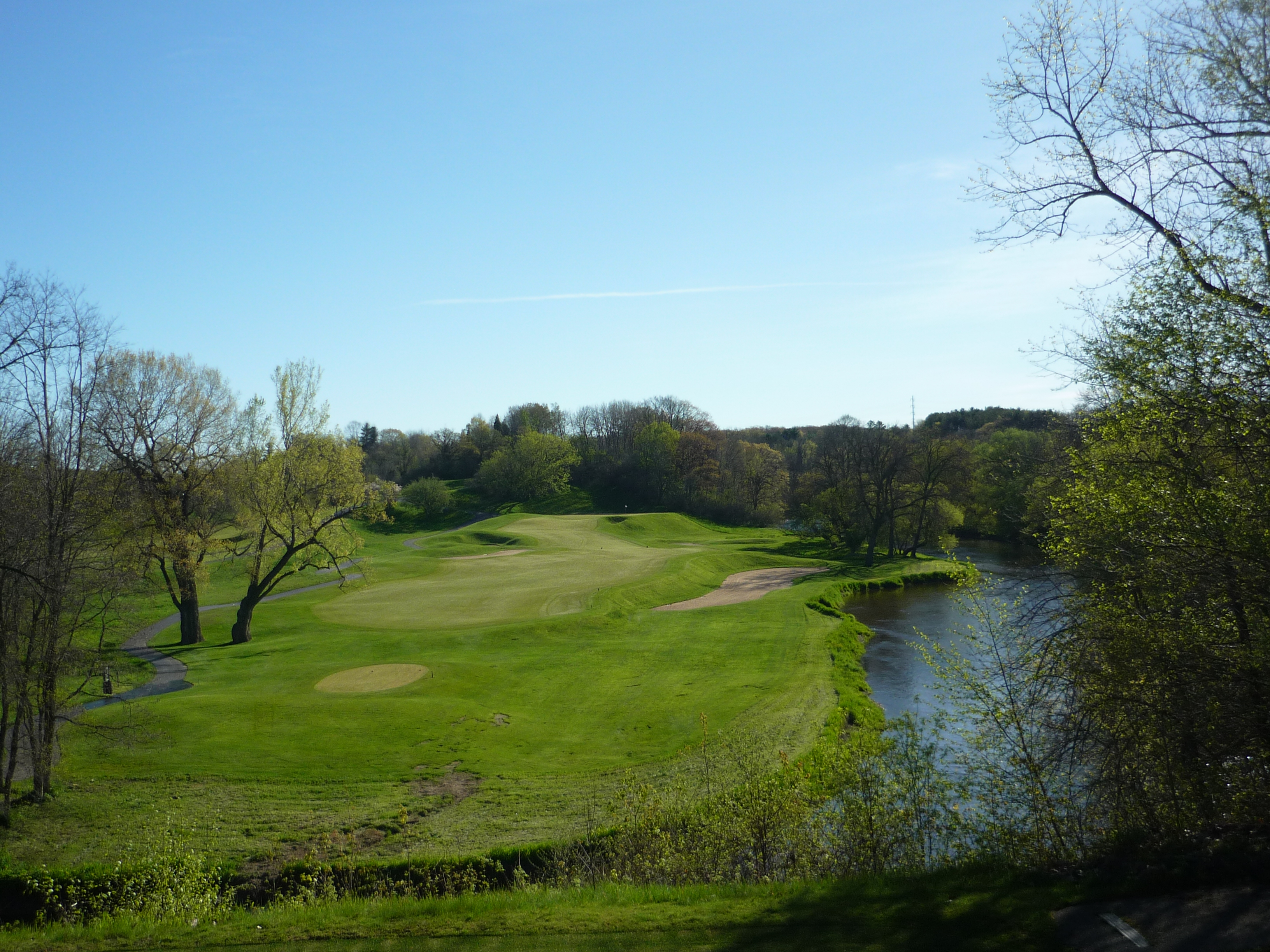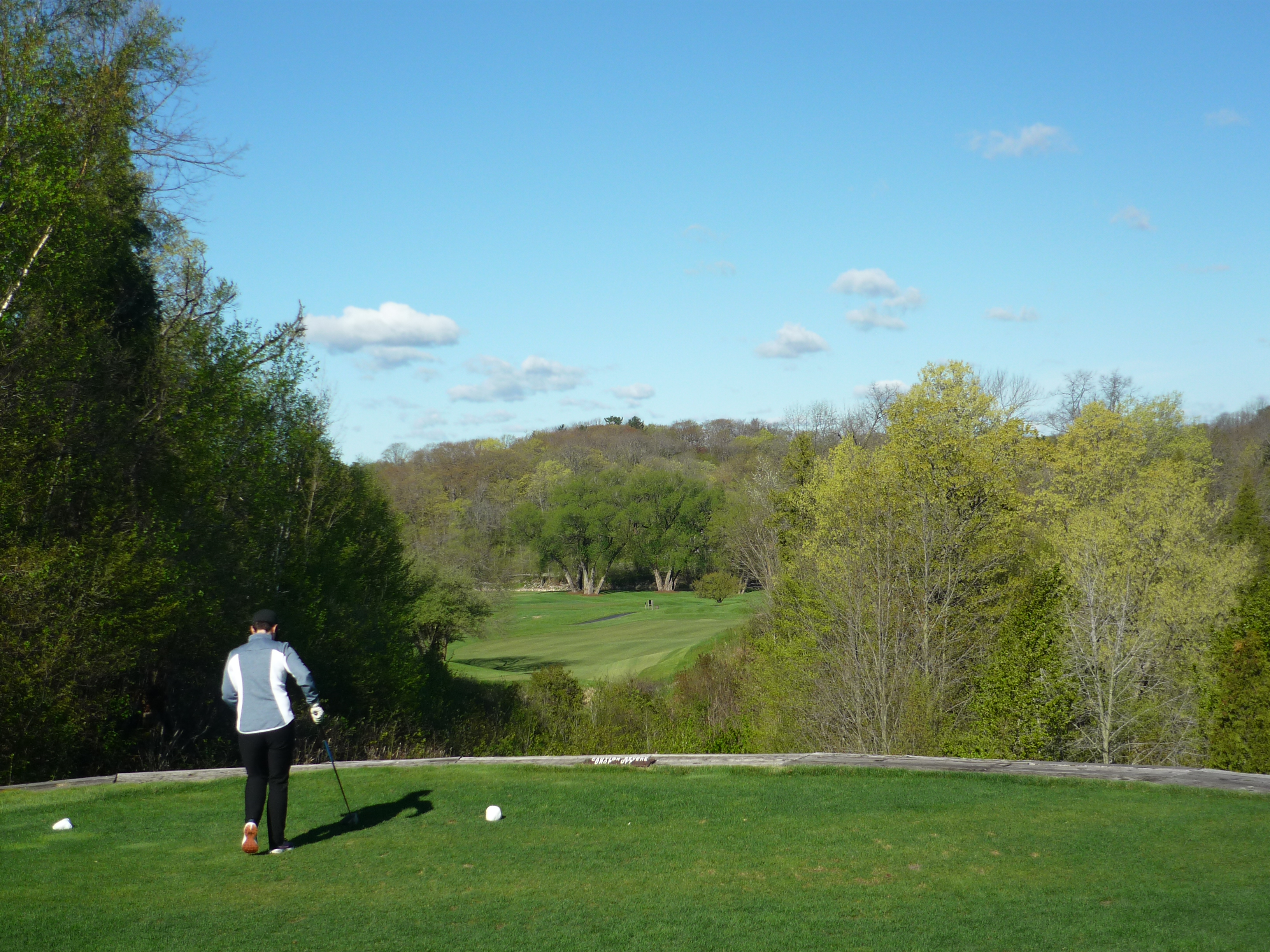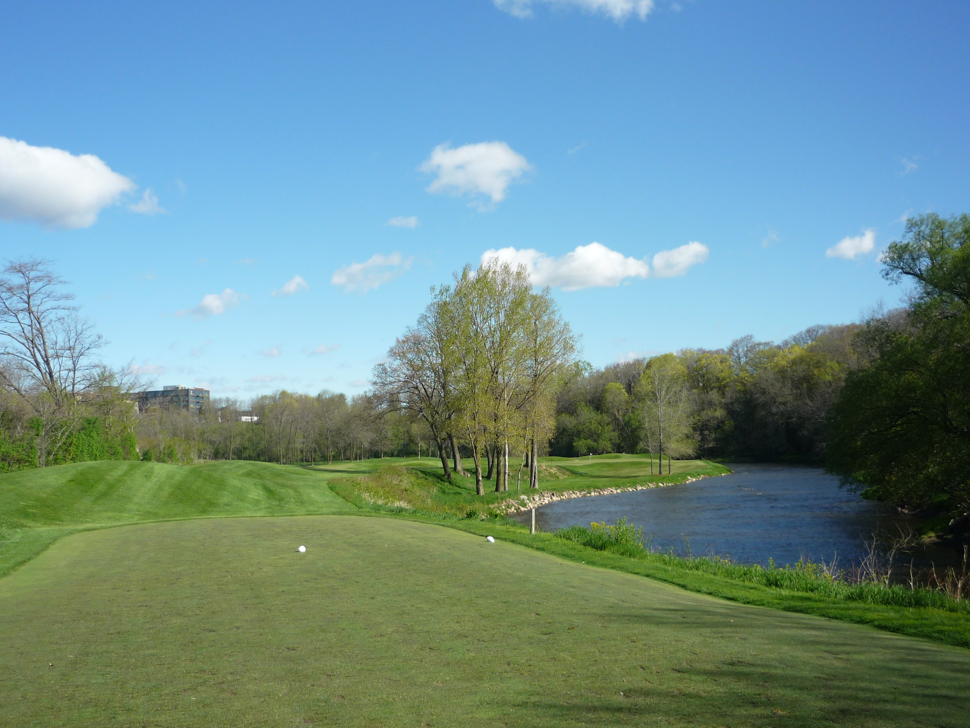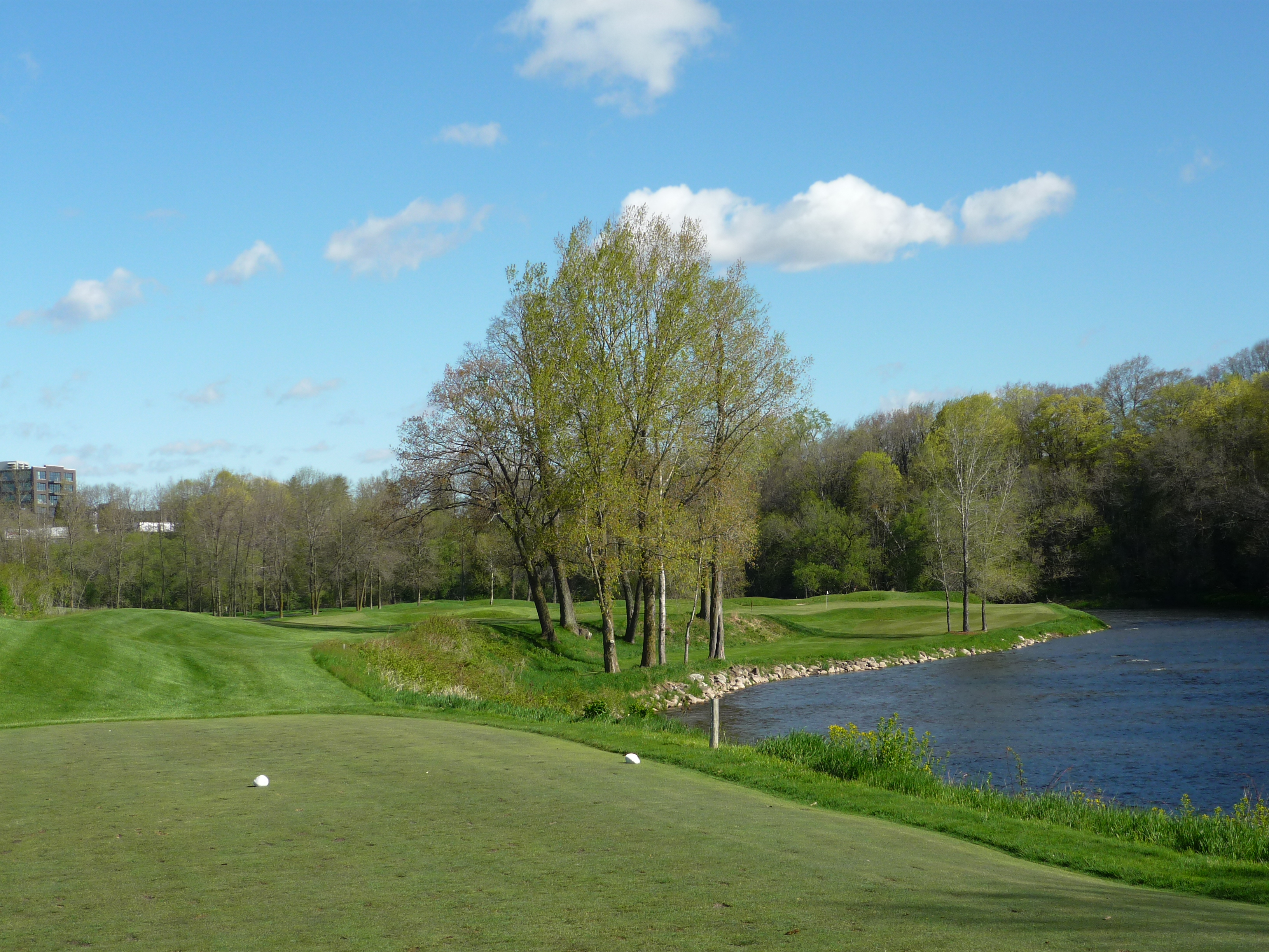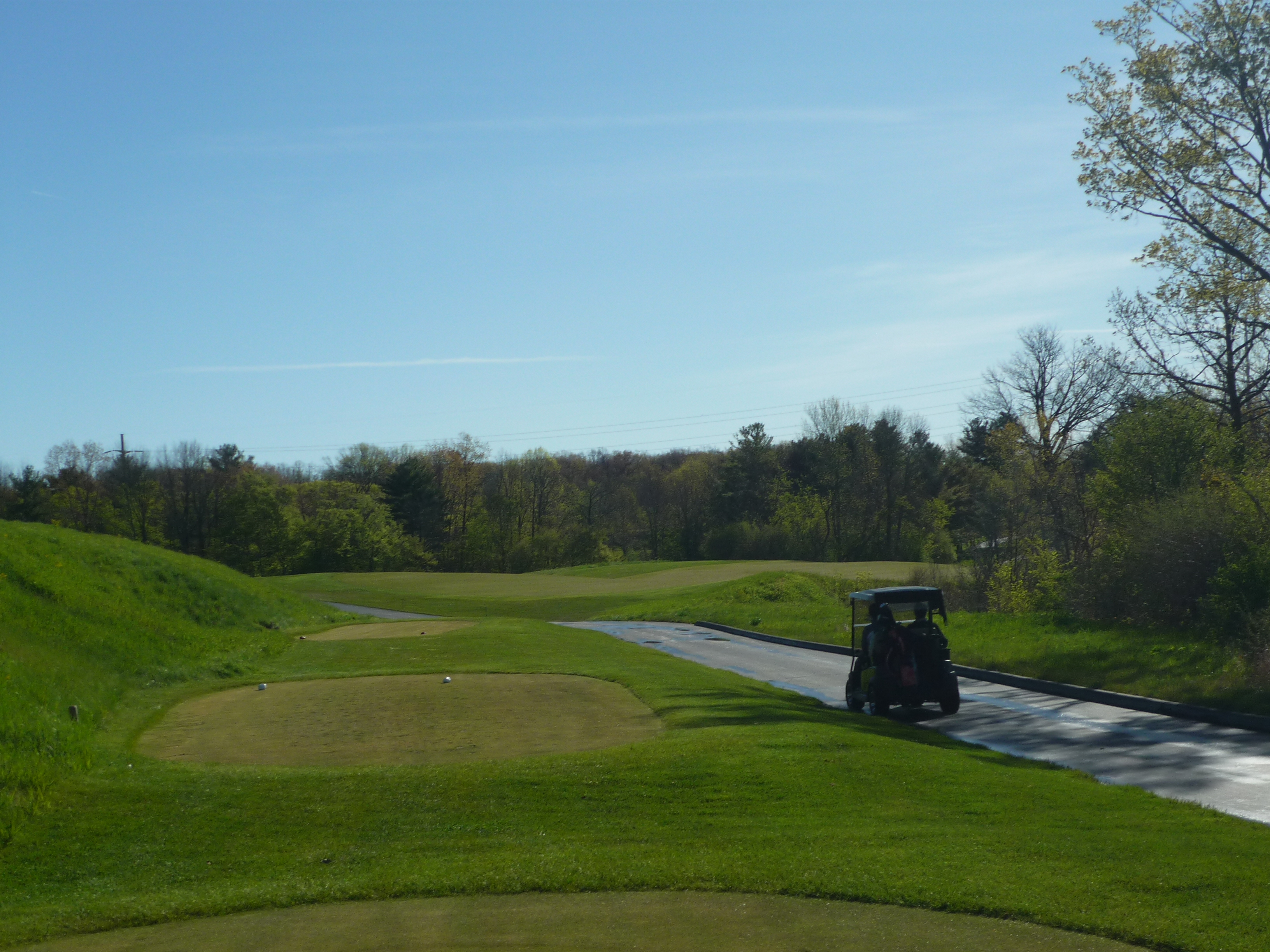 From this tee, you get a view of the Kohler plant and a view down into the river. Watch your step!