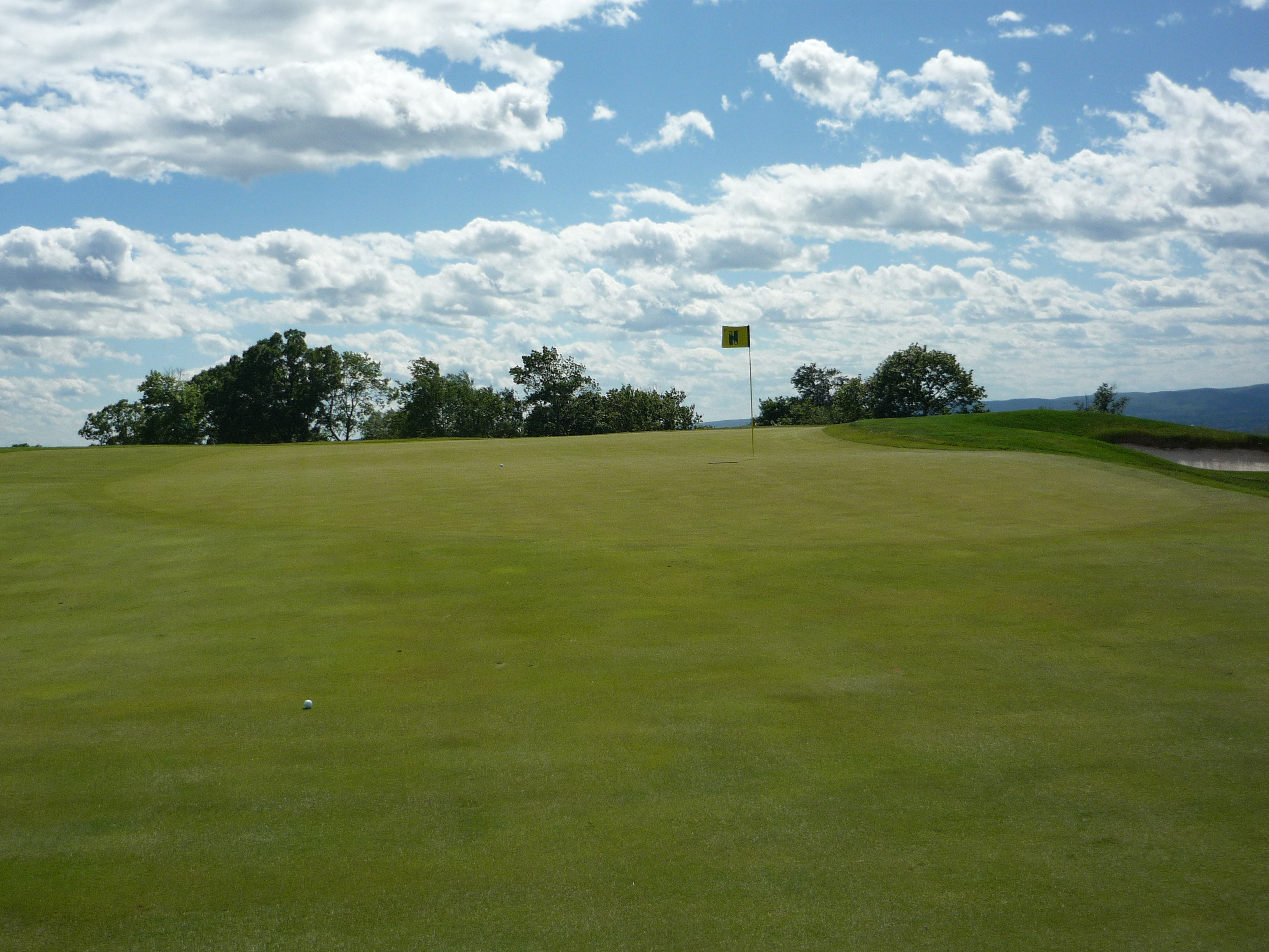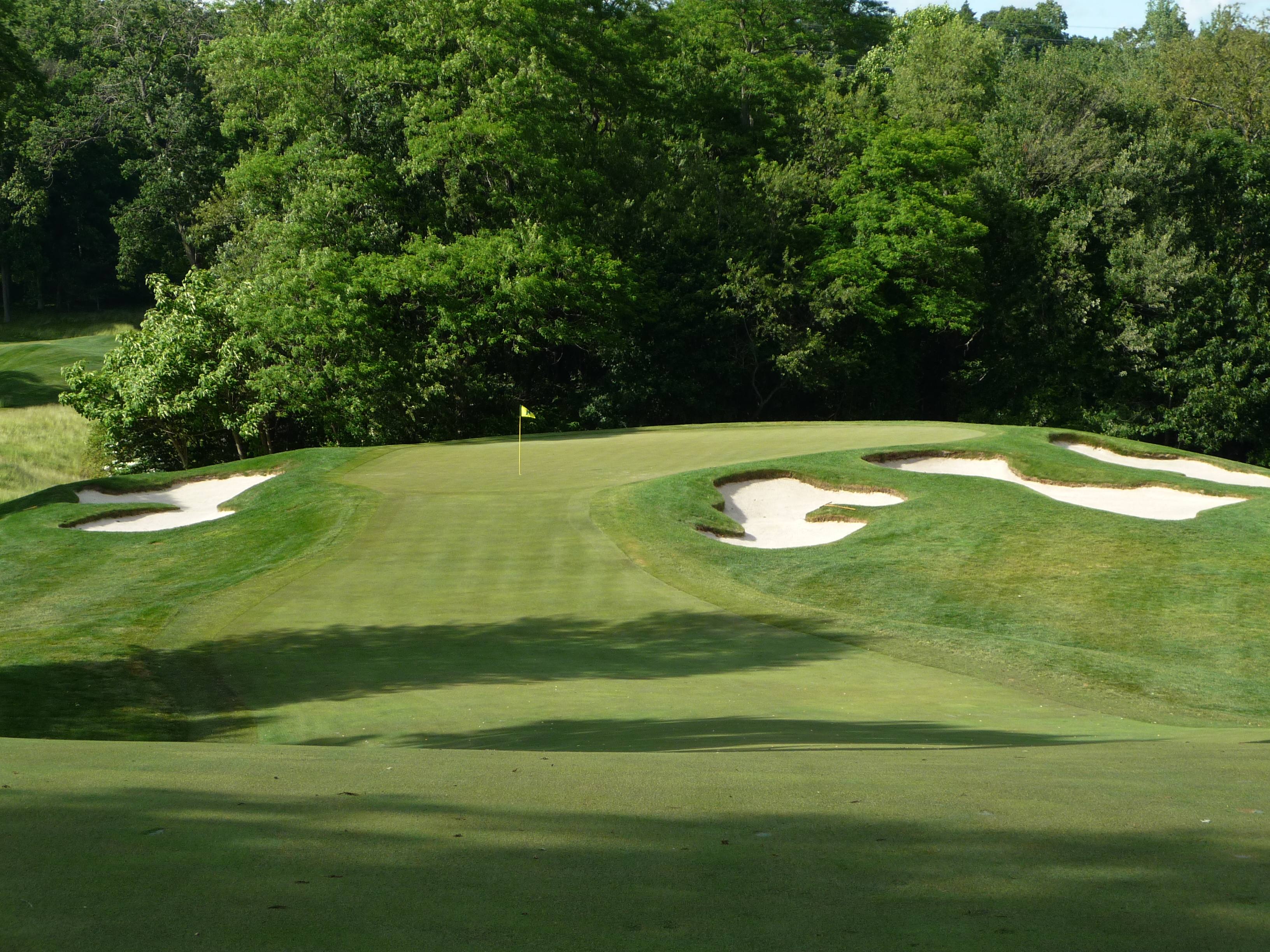The view from behind the green shows just how little room is behind the front greenside bunker.