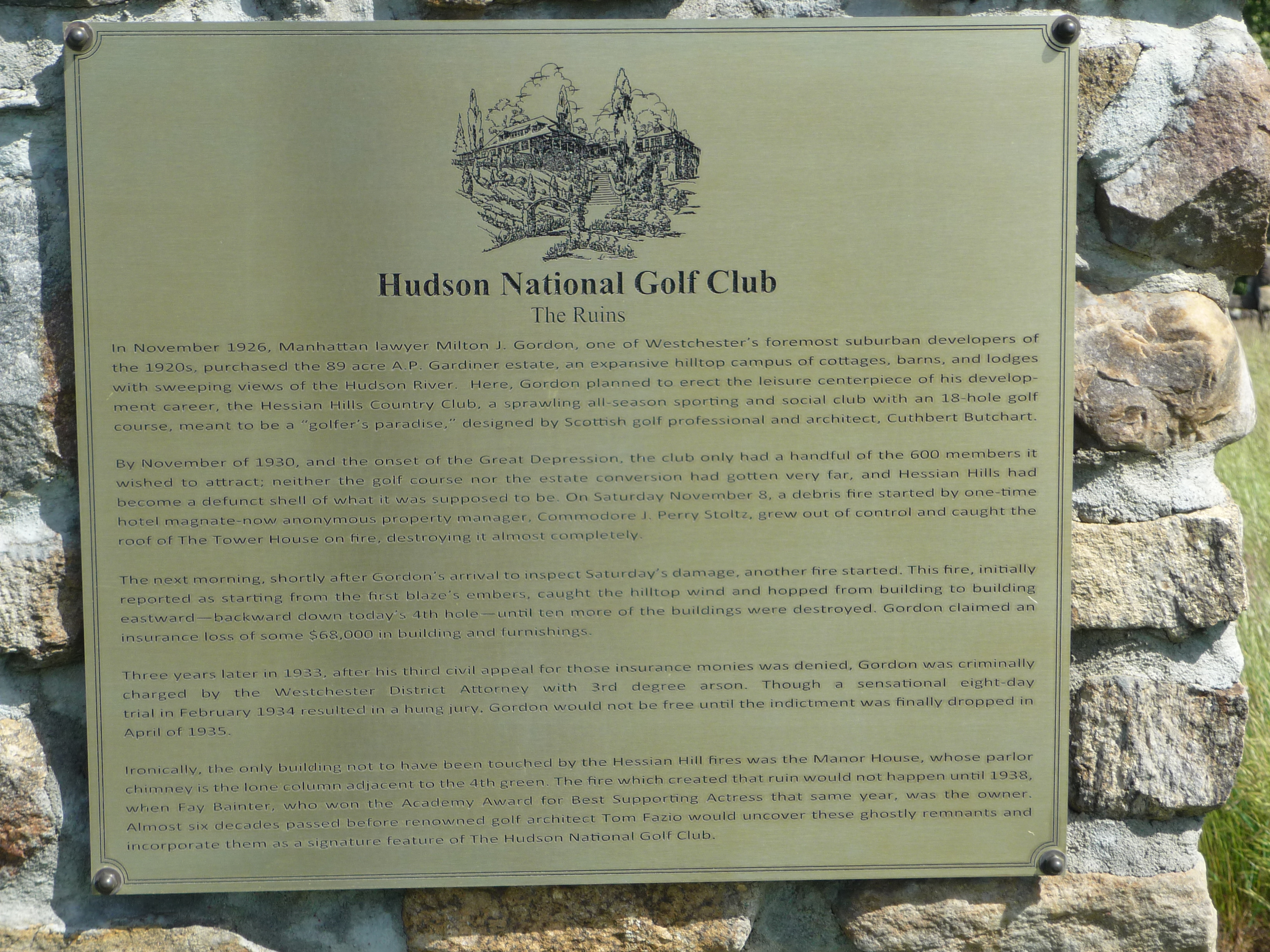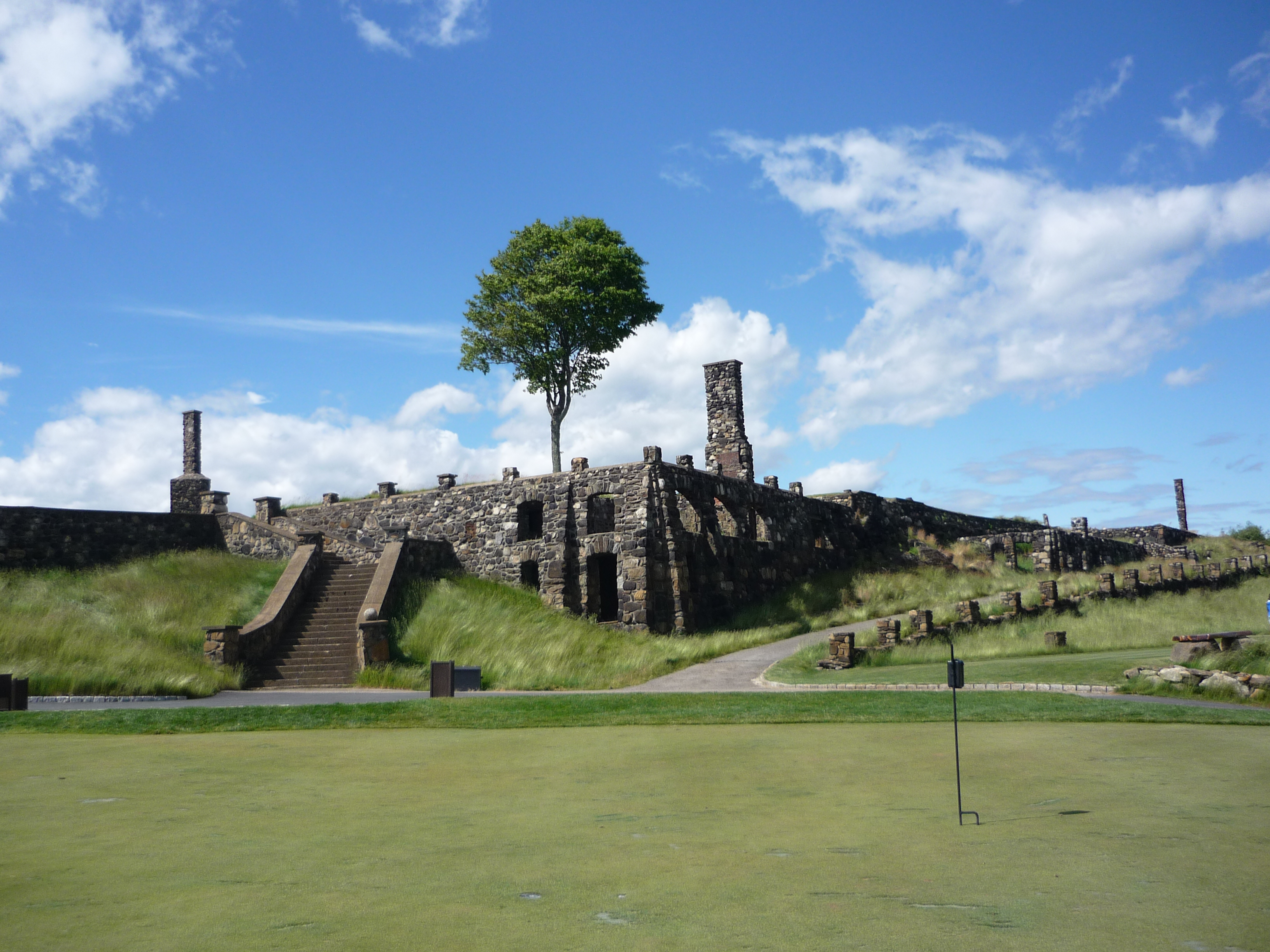 Earlier I mentioned that a golf course had occupied the site in the past. You could see some of the ruins from the clubhouse in the previous photos. Near the fourth green sits the sign below detailing some of the history. It is well worth a read.