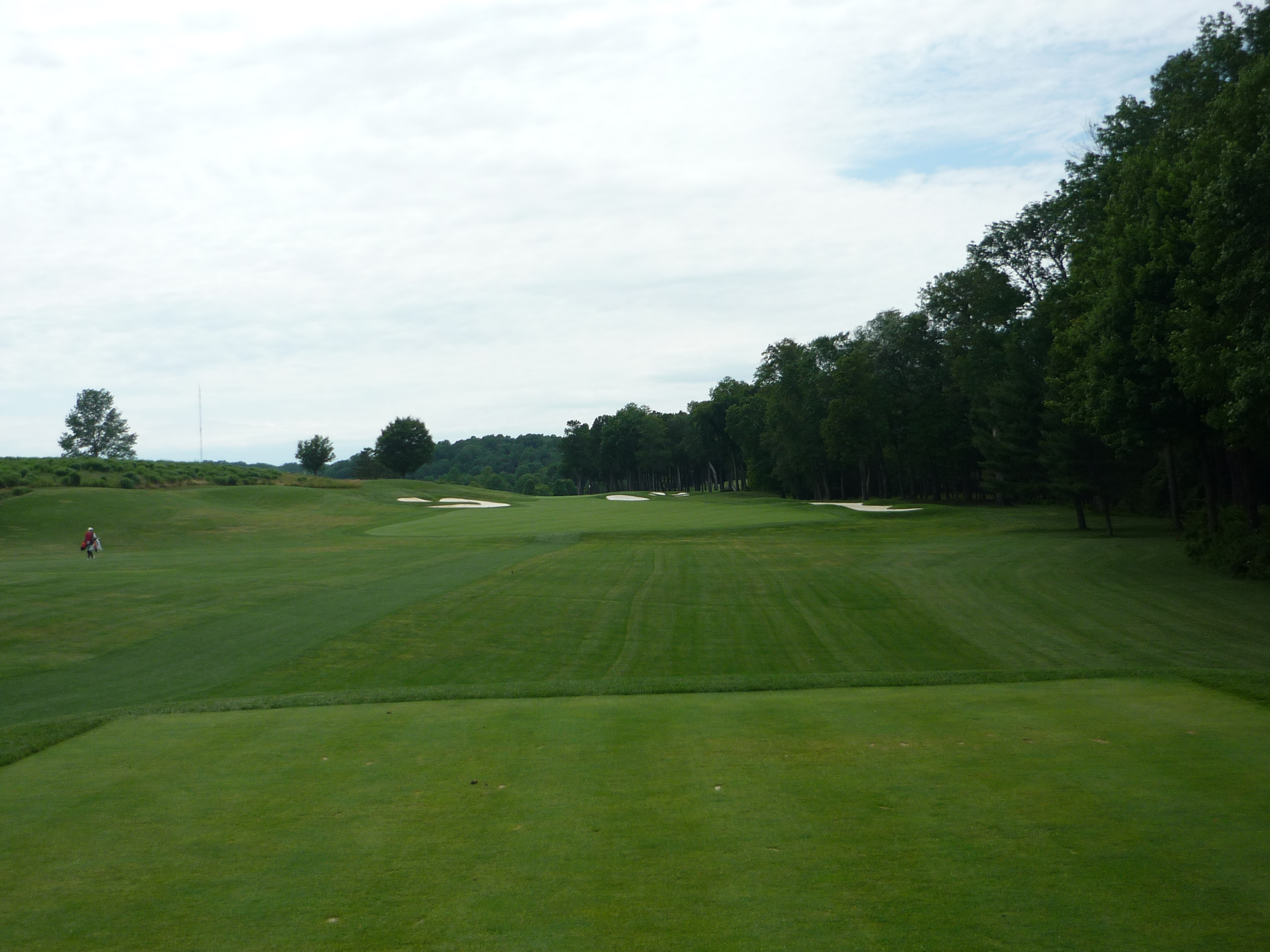 I found this to be one of the more interesting holes at Caves Valley. Mainly from the change of direction throughout the hole. Everything is pushing you left but there is a huge dropoff on that side.