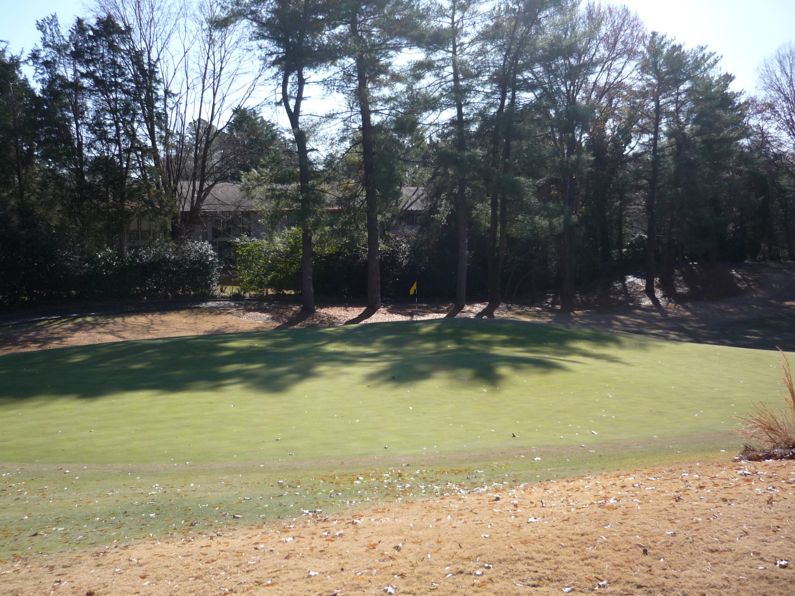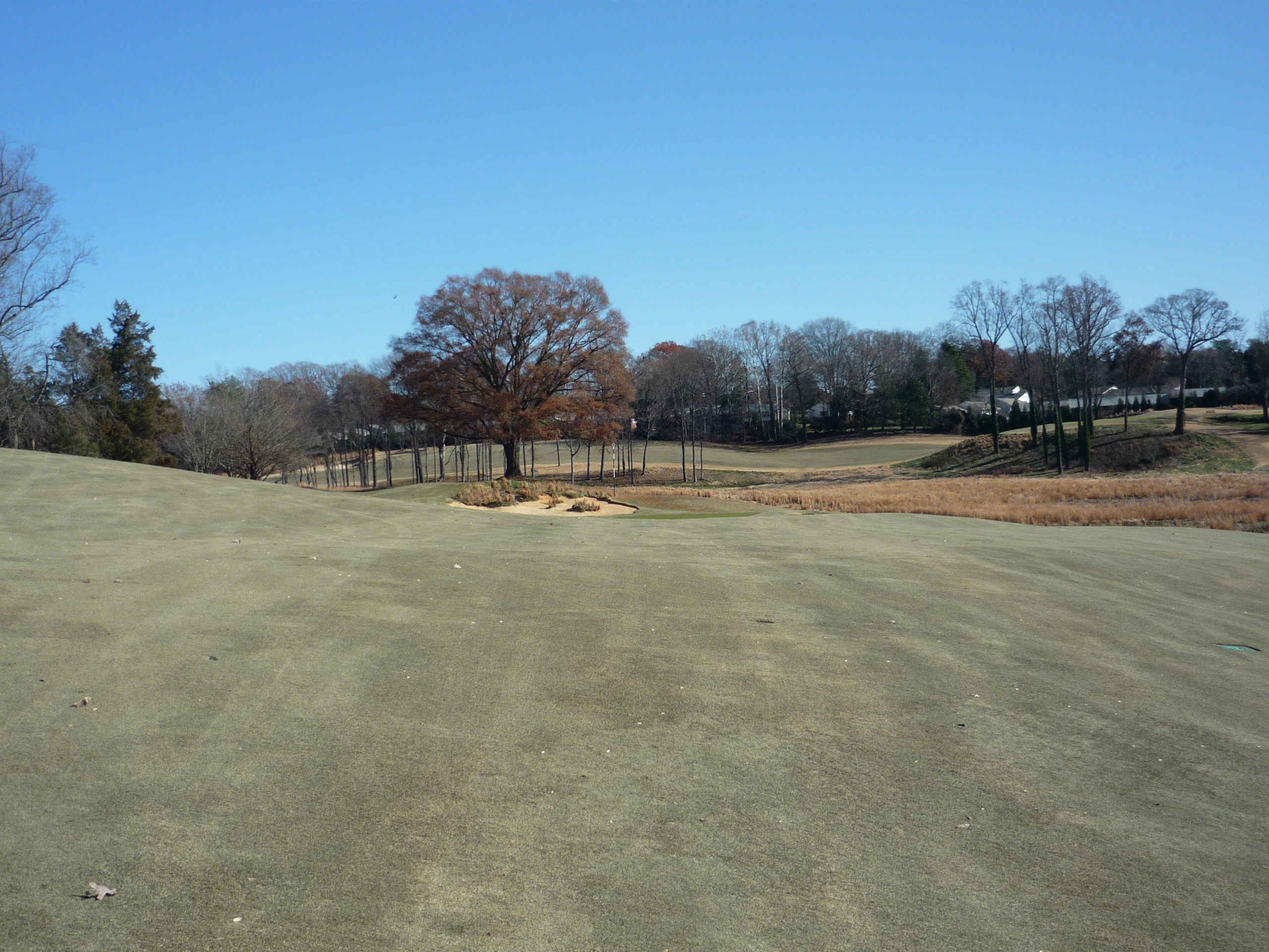 This hole is a great example of the land movement and charm of Old Town Club. The fairway tilts hard left to right but is plenty wide. Your approach can be blind, like mine, if you don’t catch your drive.