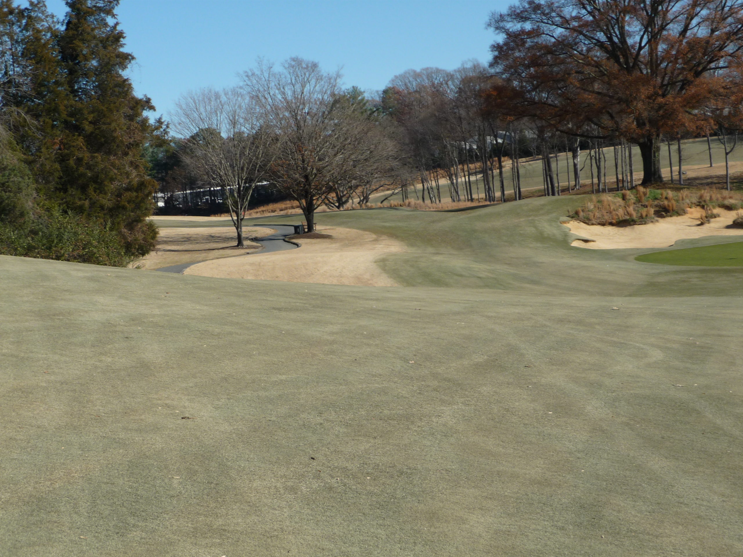 Not many weekend warriors will reach this green in two. We were facing a stiff headwind for good measure. For reference, the green is way down on the right, in line with the creek.