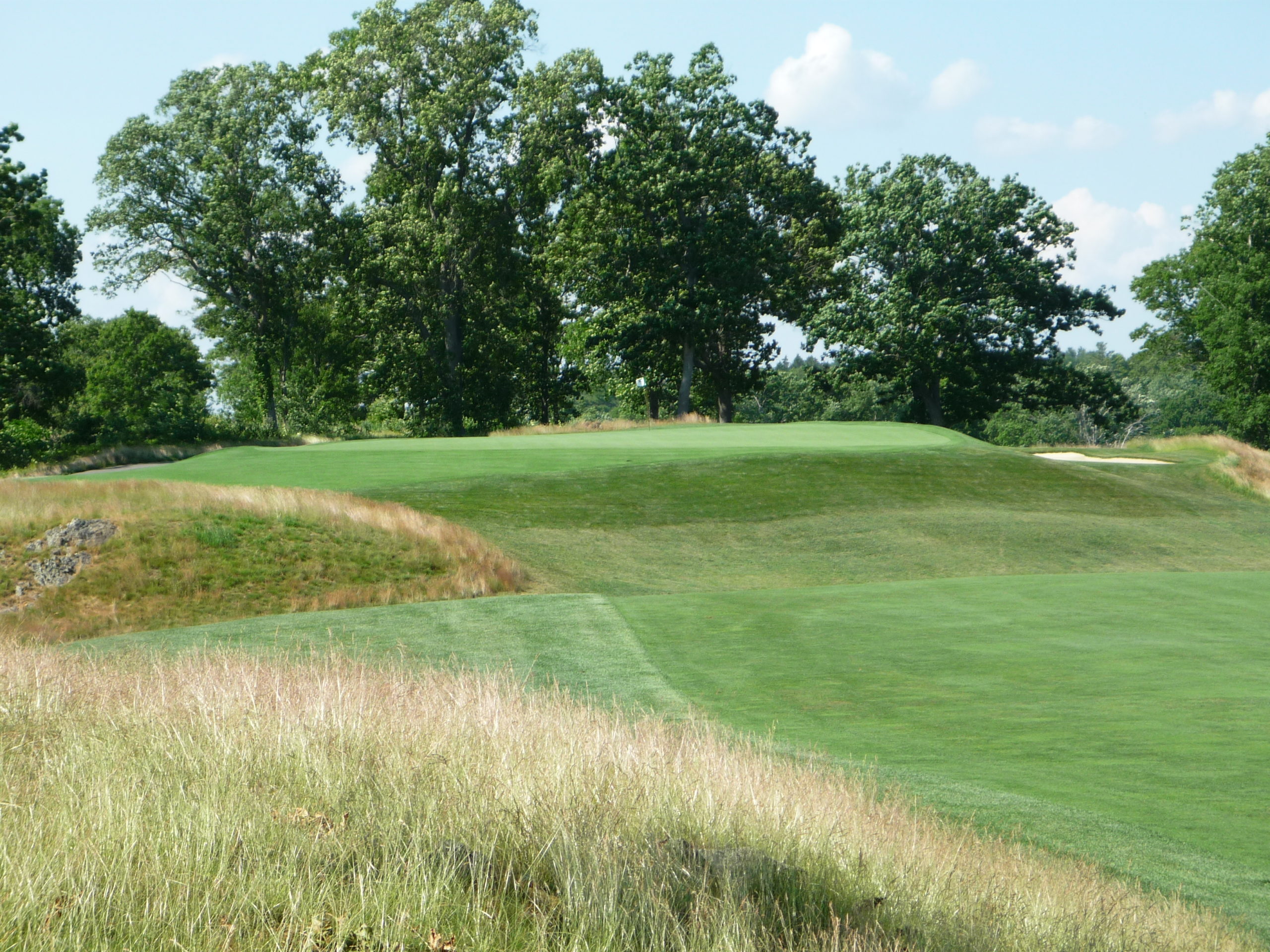 The old school design shows up here as there is a ramp to the green to run your shots onto the putting surface. I hit about 10-20 yards shot out of the rough and it ended up past the flag.