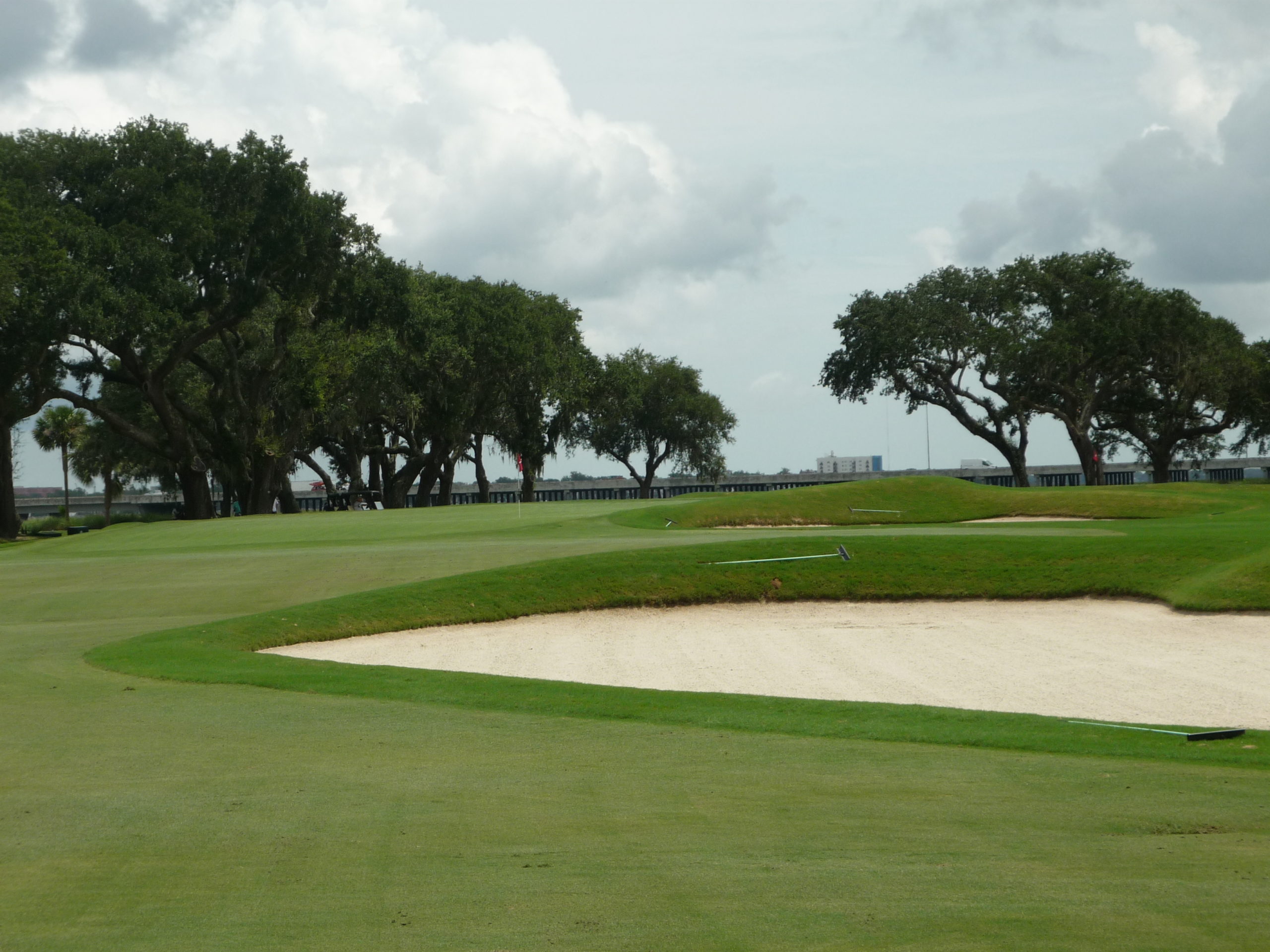 Almost all golfers know the Road Hole. This is the version at Country Club of Charleston. There is no hotel to deal with but I visited the bunker in front of the green. I do not recommend it!