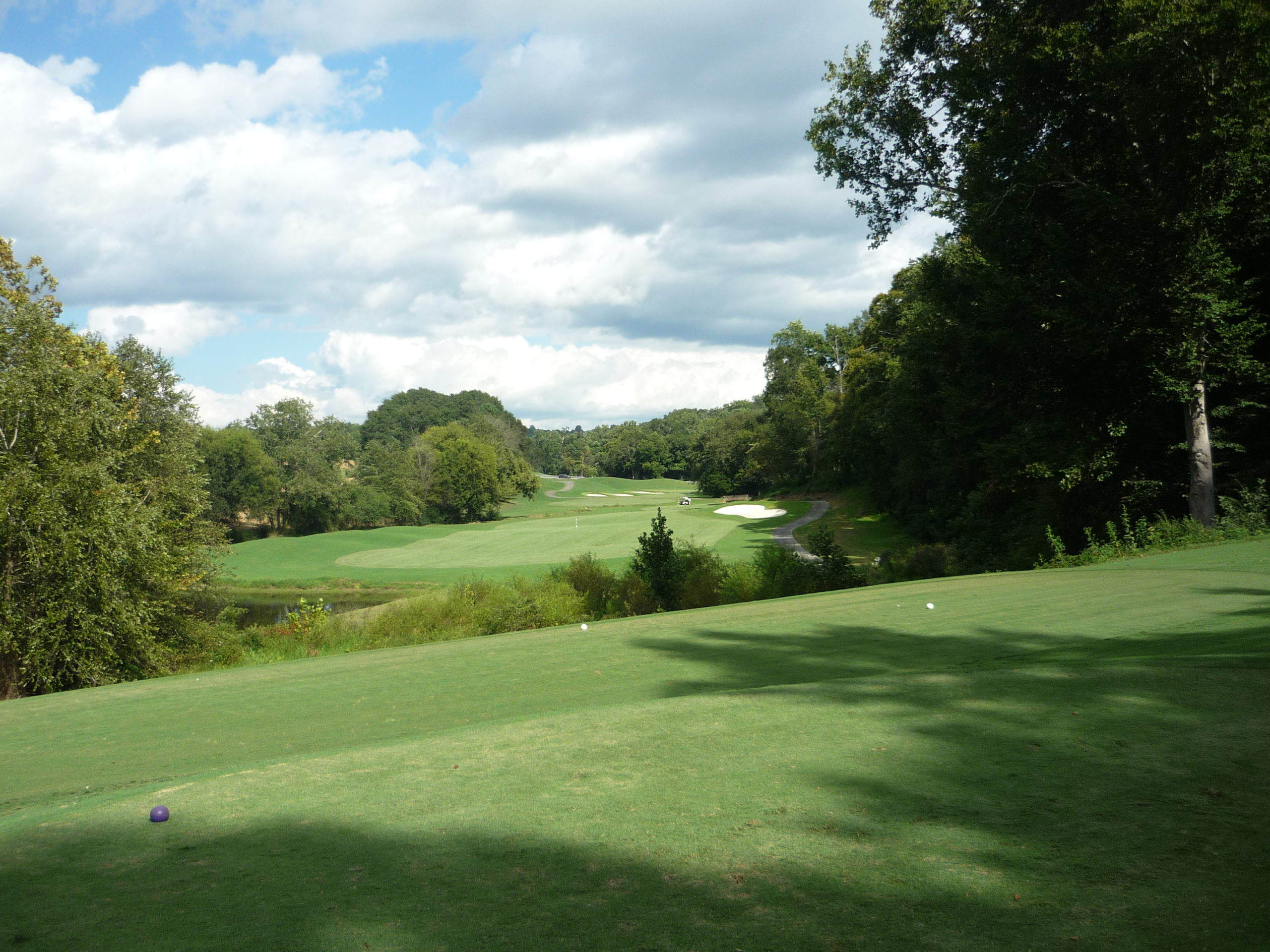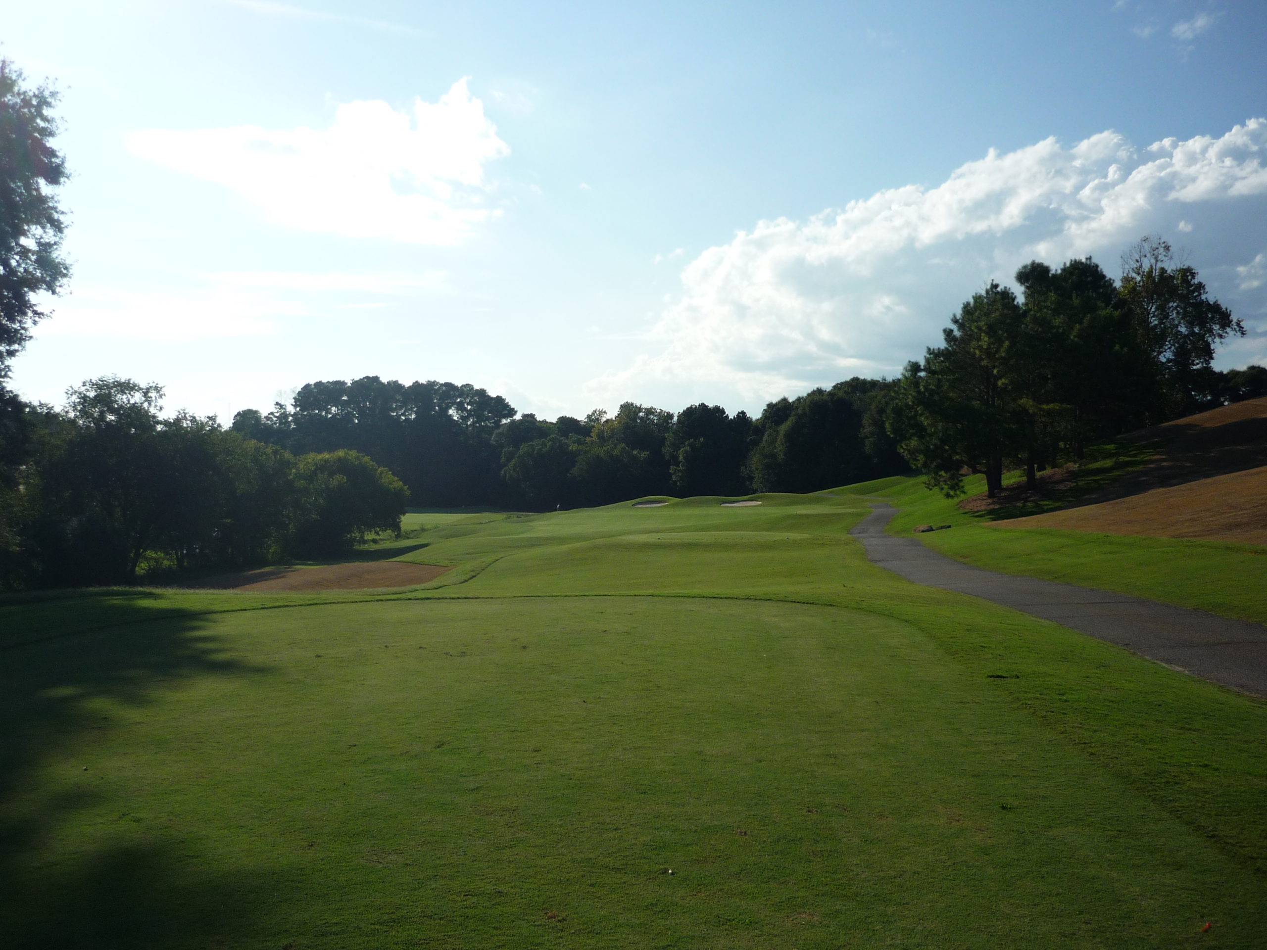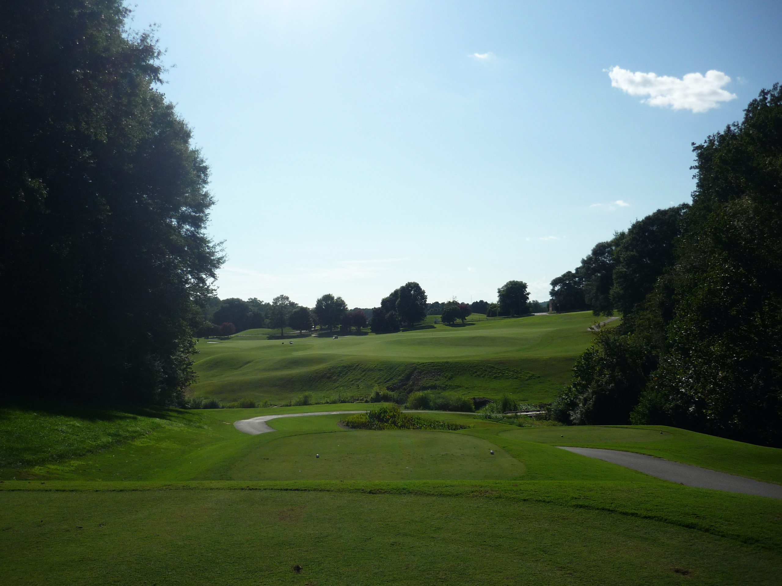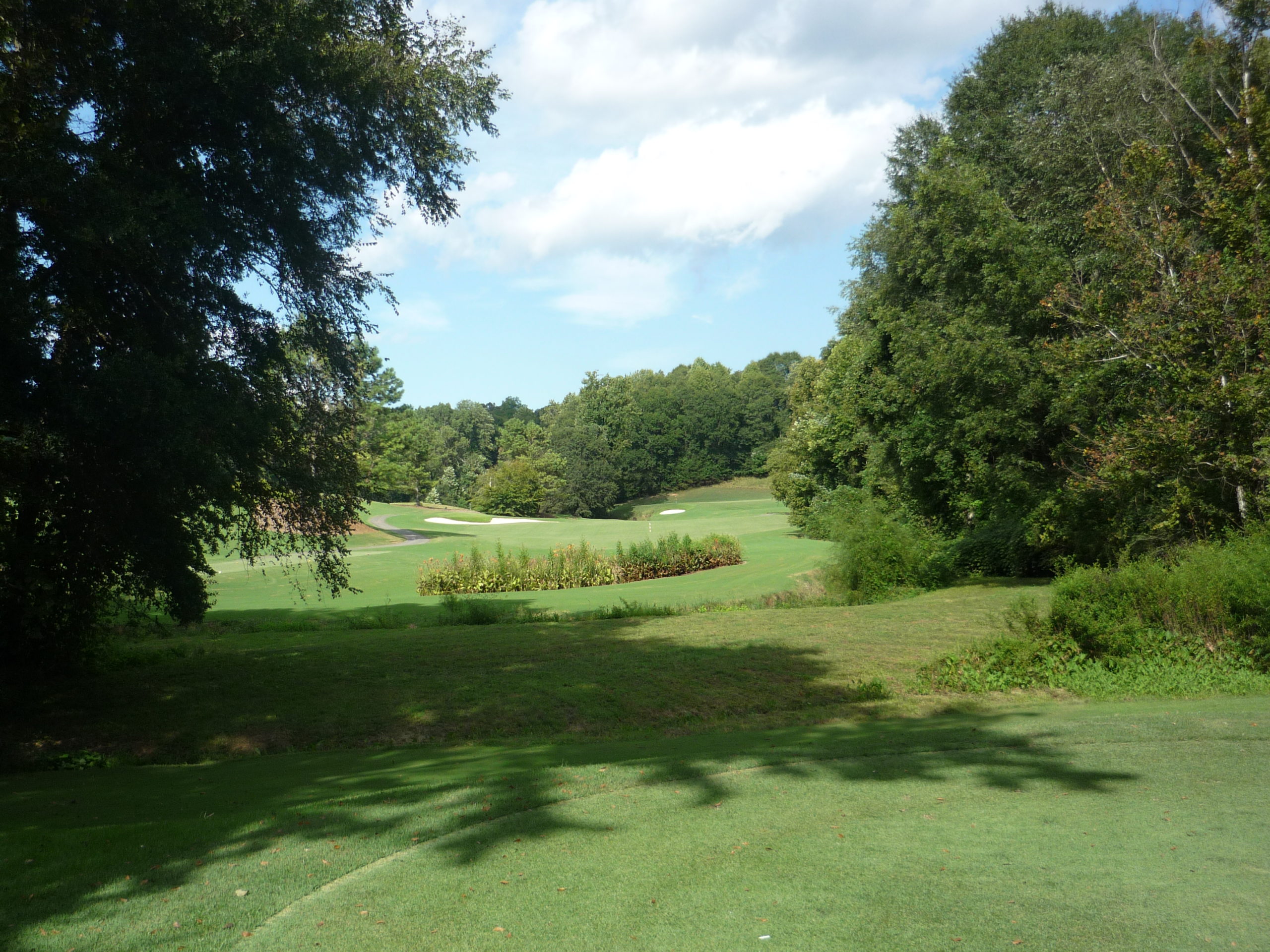 This is undoubtedly my least favorite hole on the course. It’s long but it’s hard to bust driver on anything but a perfect line. A creek cuts in from the left and across the fairway, so you must go up the extreme right side but not too far.
