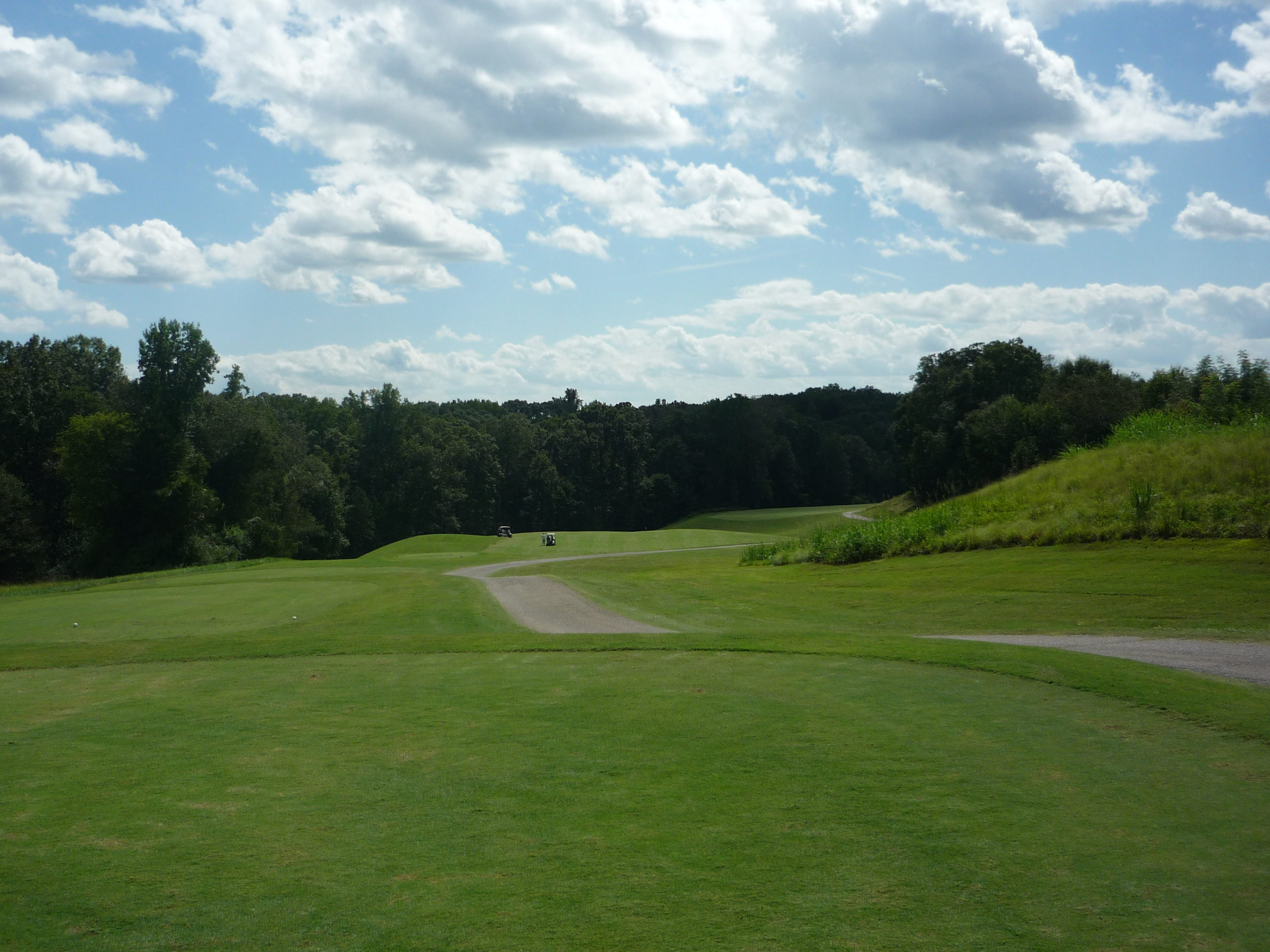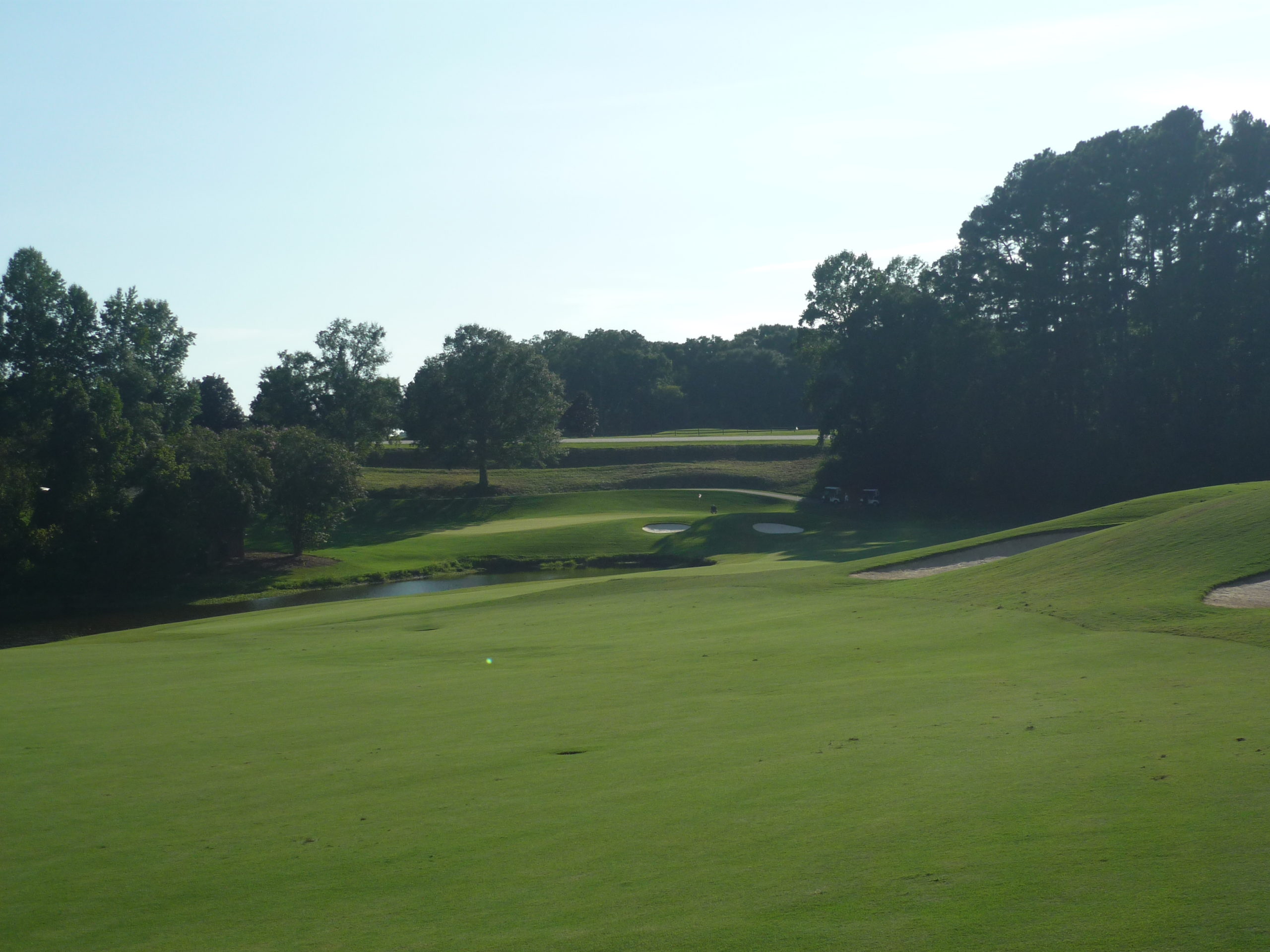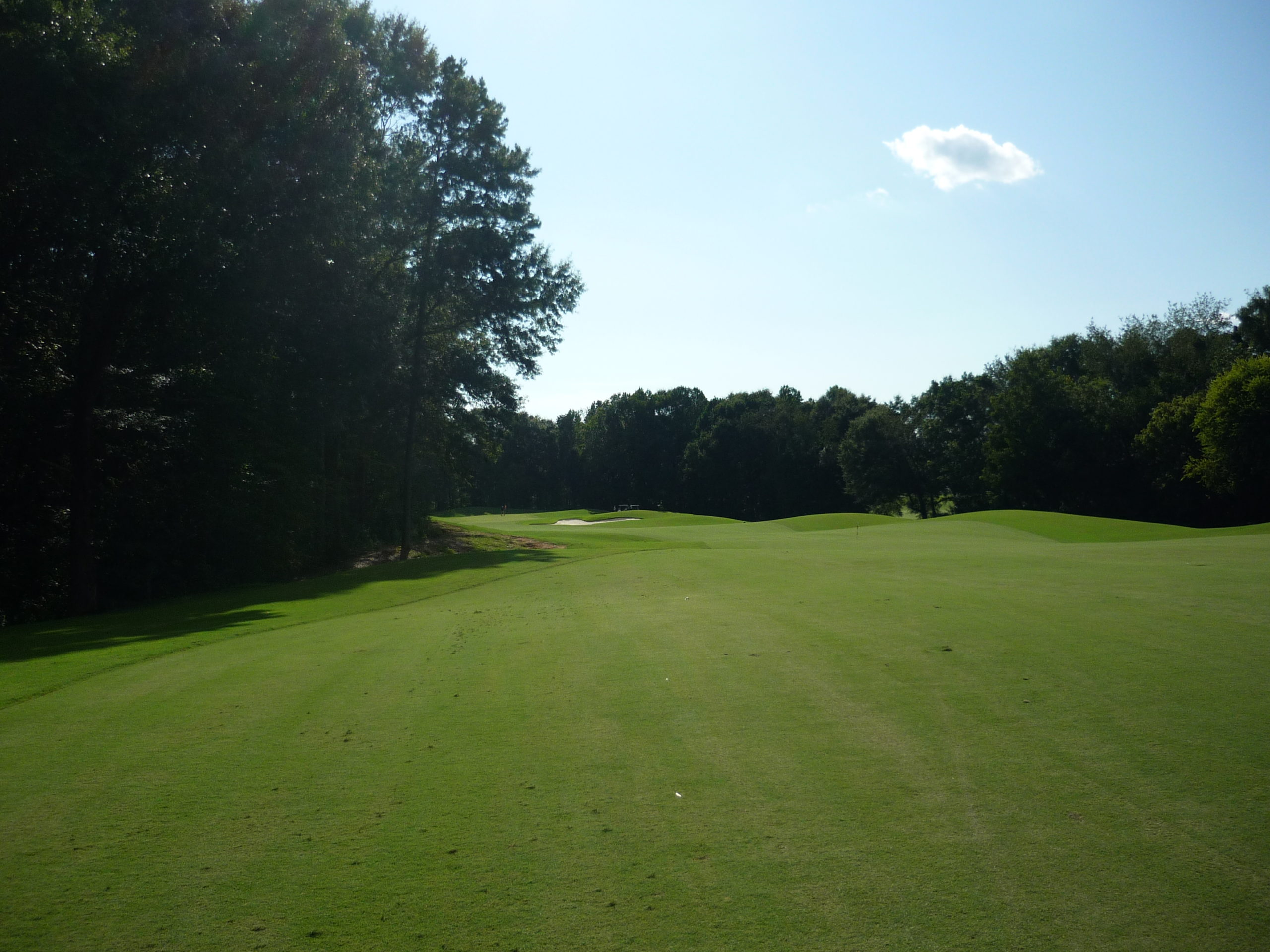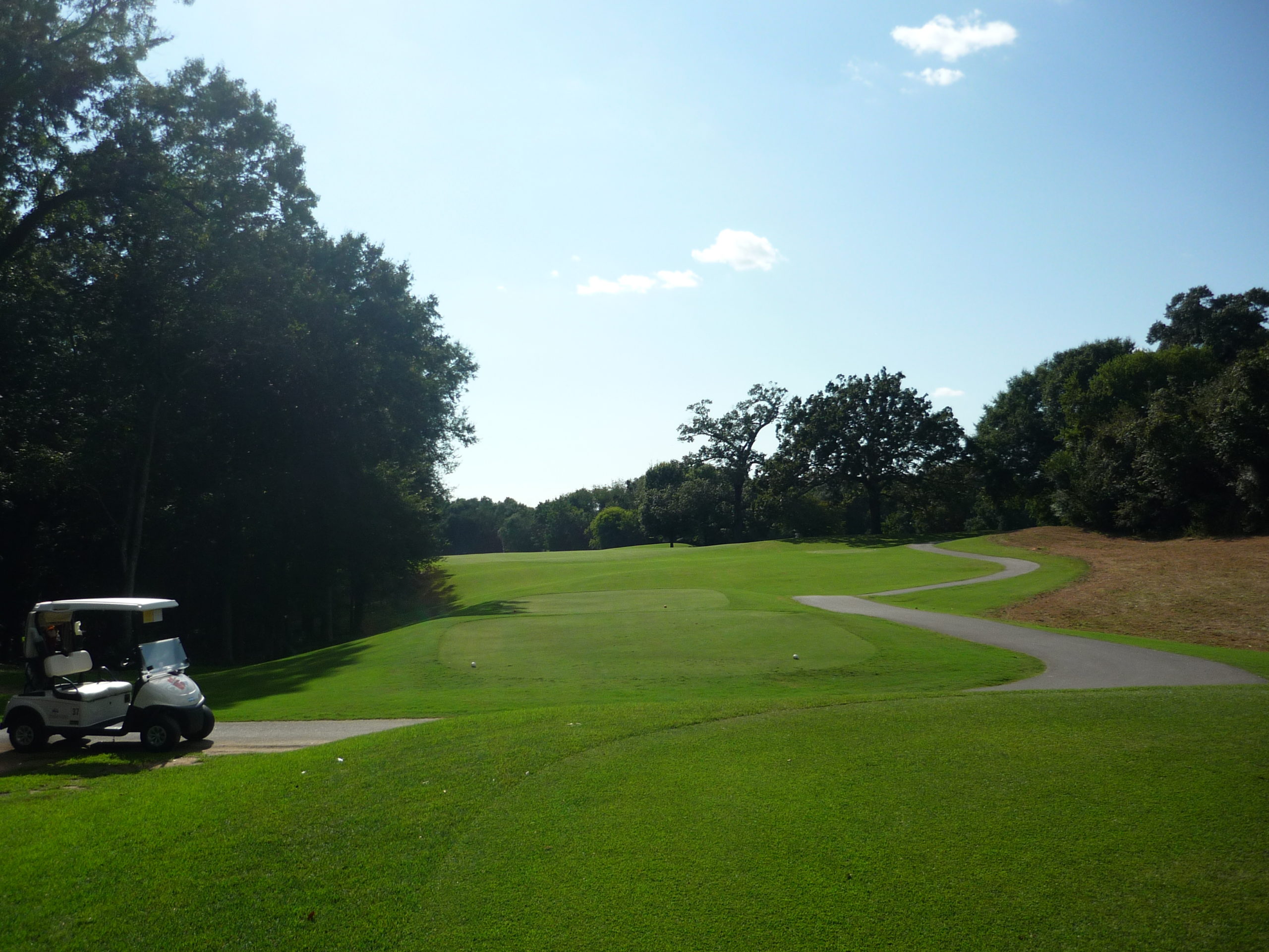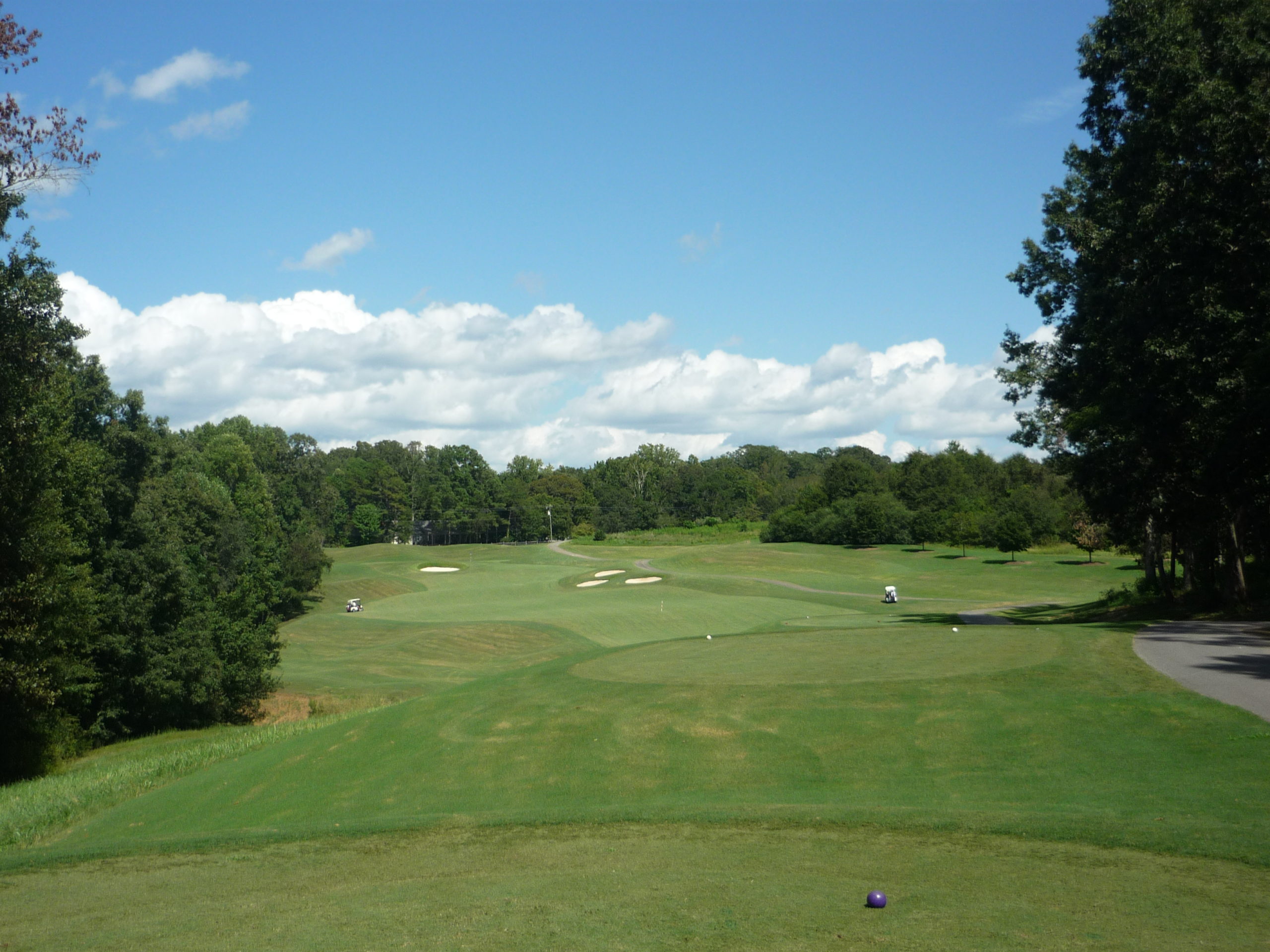 This is undoubtedly my least favorite hole on the course. It’s long but it’s hard to bust driver on anything but a perfect line. A creek cuts in from the left and across the fairway, so you must go up the extreme right side but not too far.