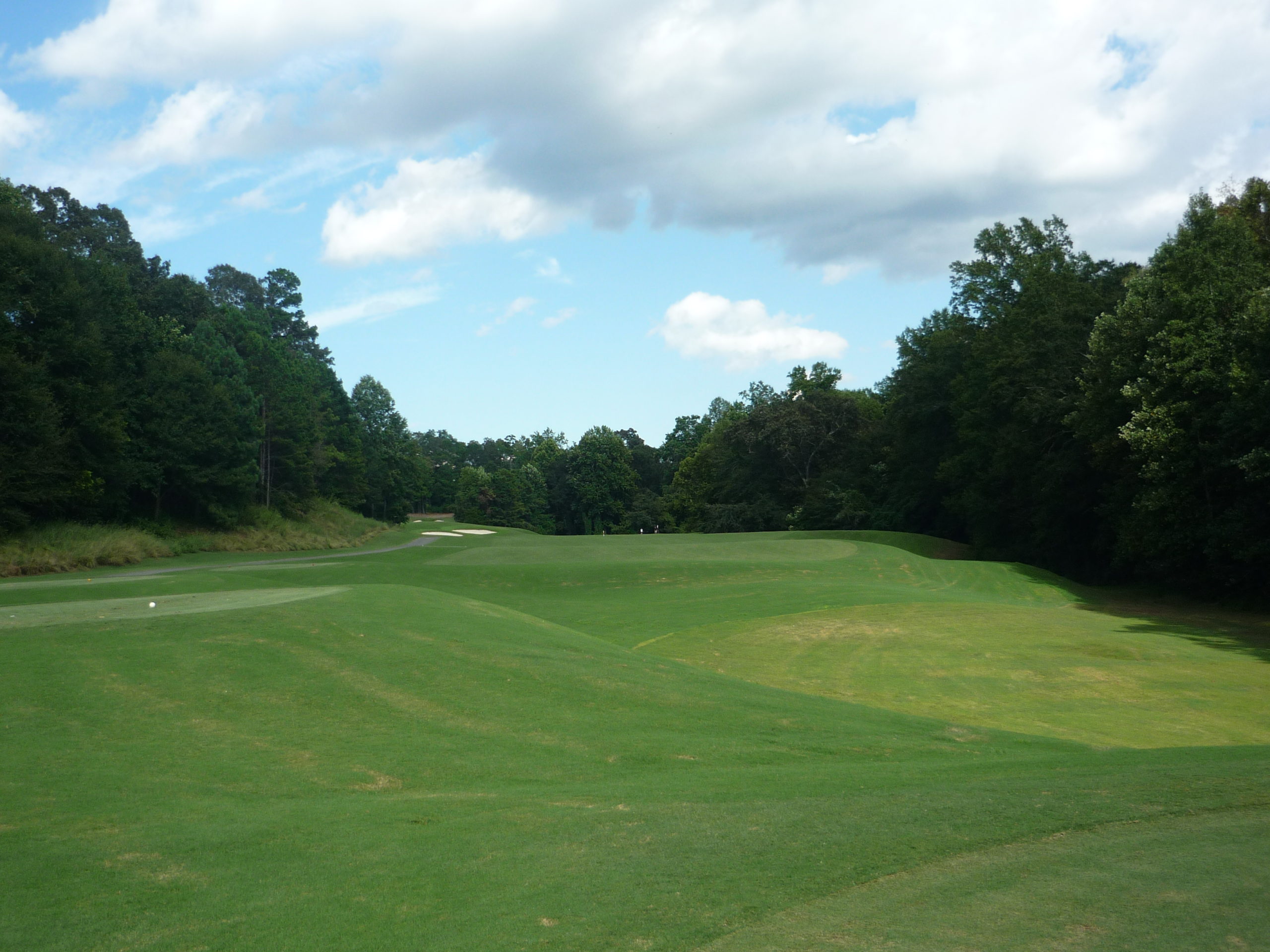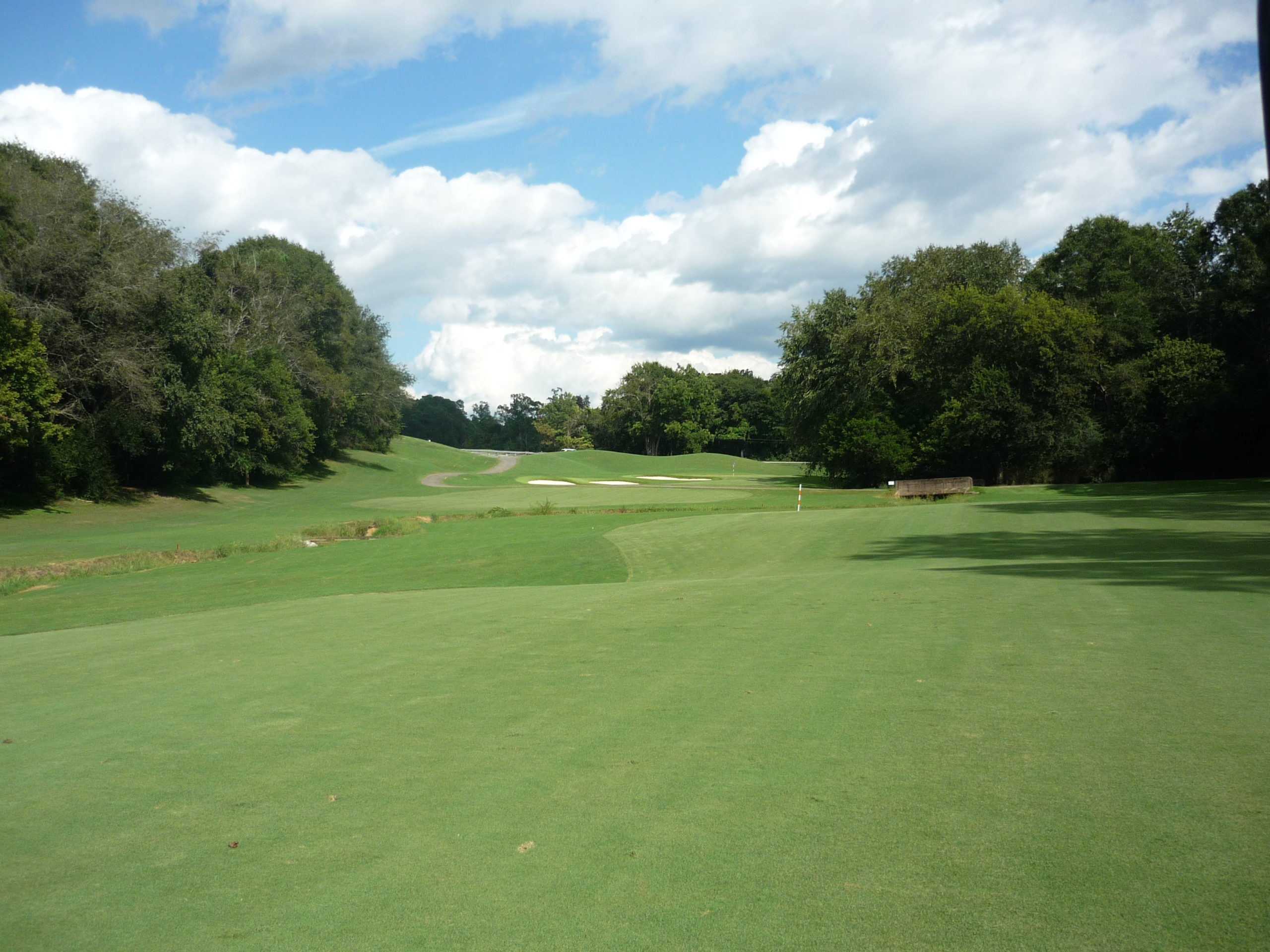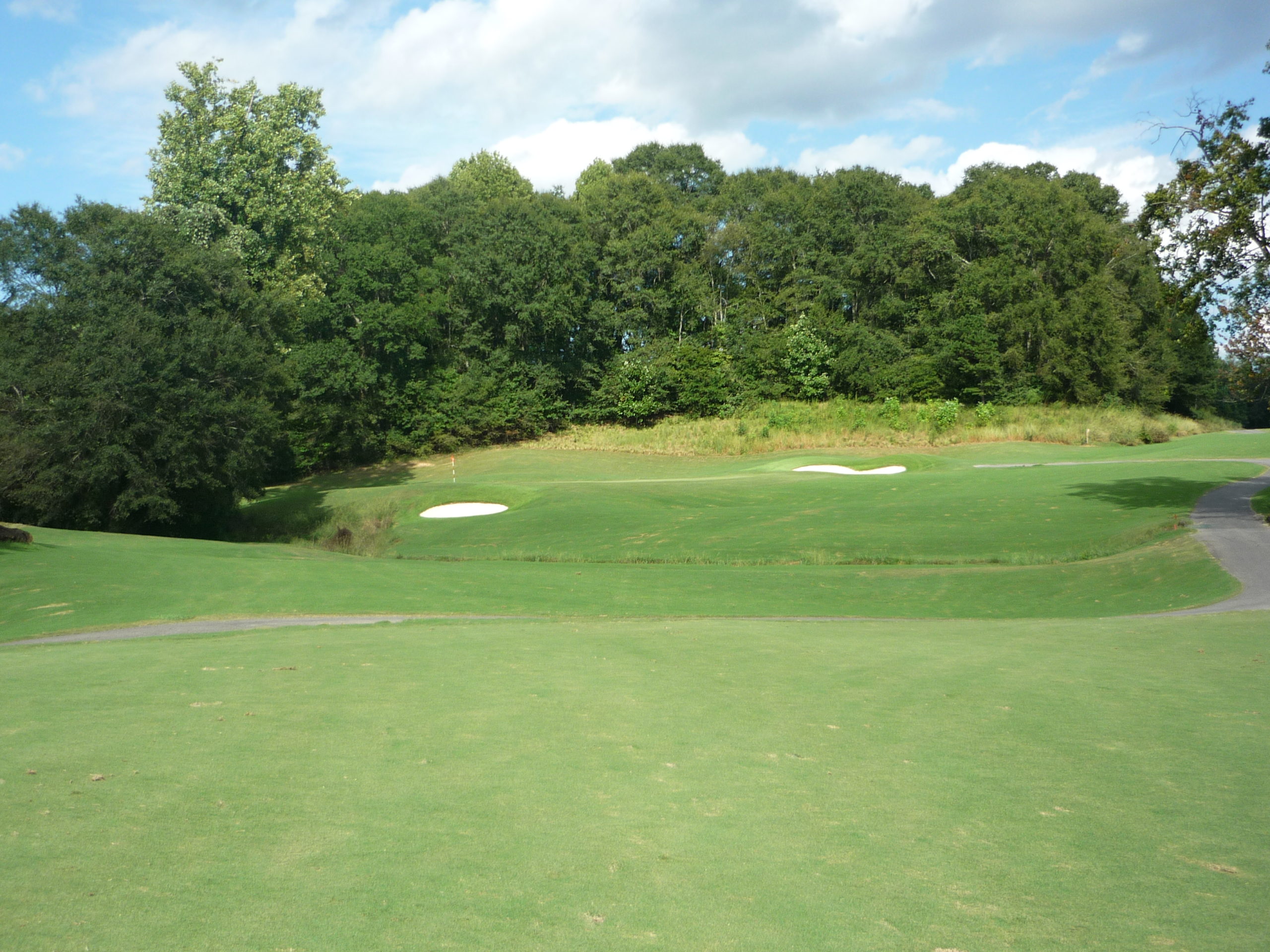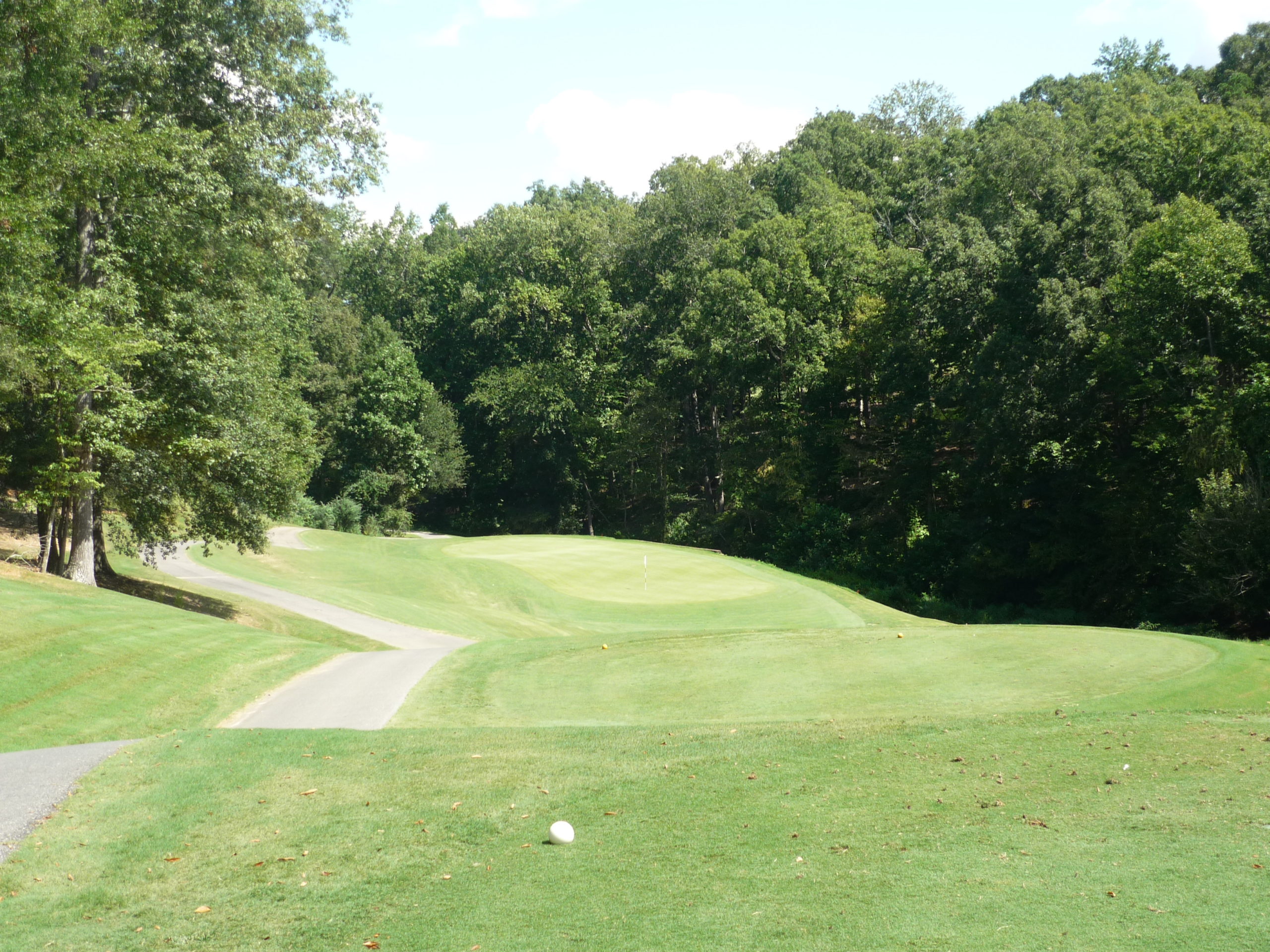 This is undoubtedly my least favorite hole on the course. It’s long but it’s hard to bust driver on anything but a perfect line. A creek cuts in from the left and across the fairway, so you must go up the extreme right side but not too far.
