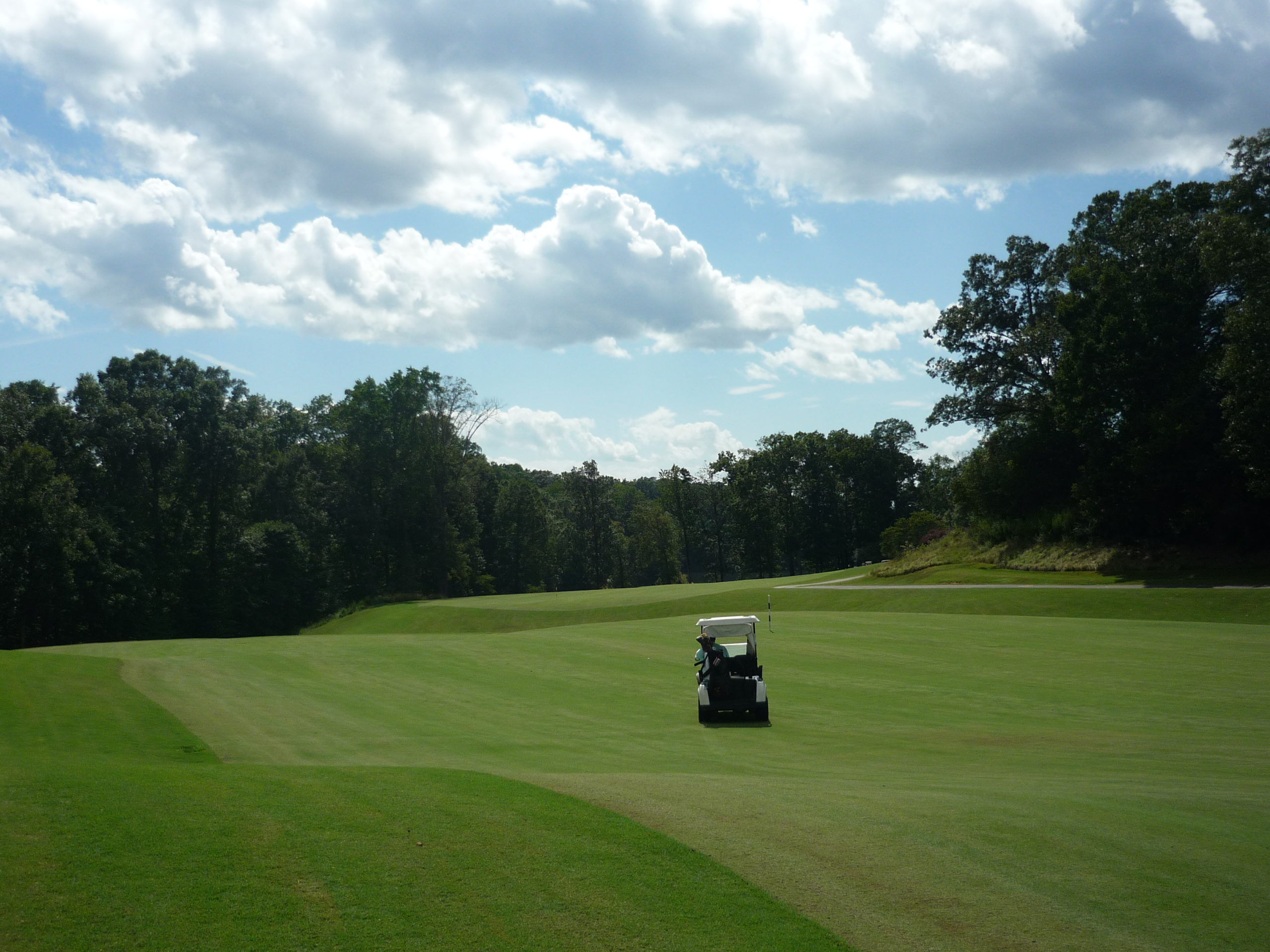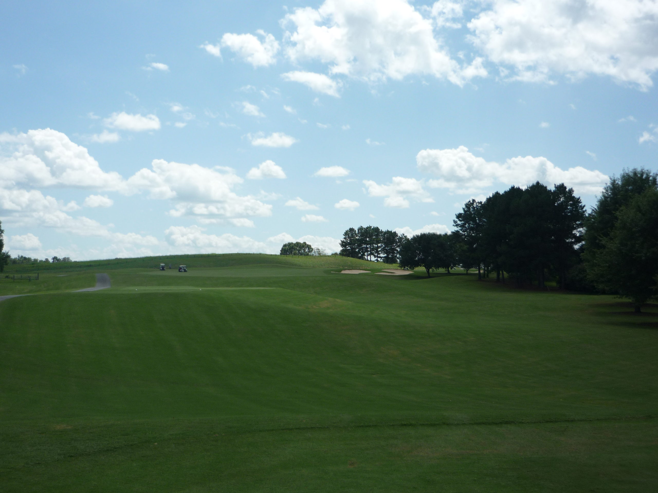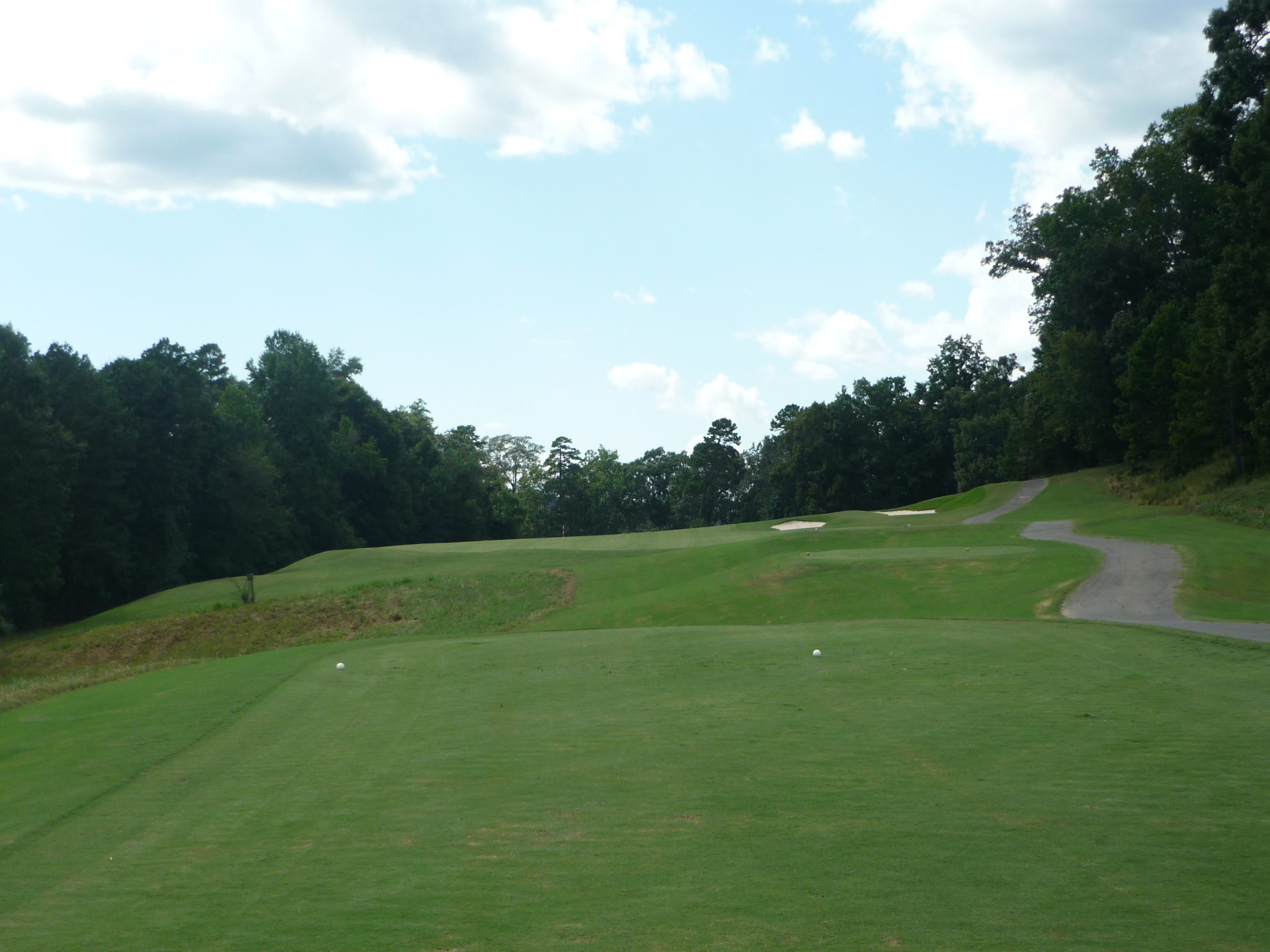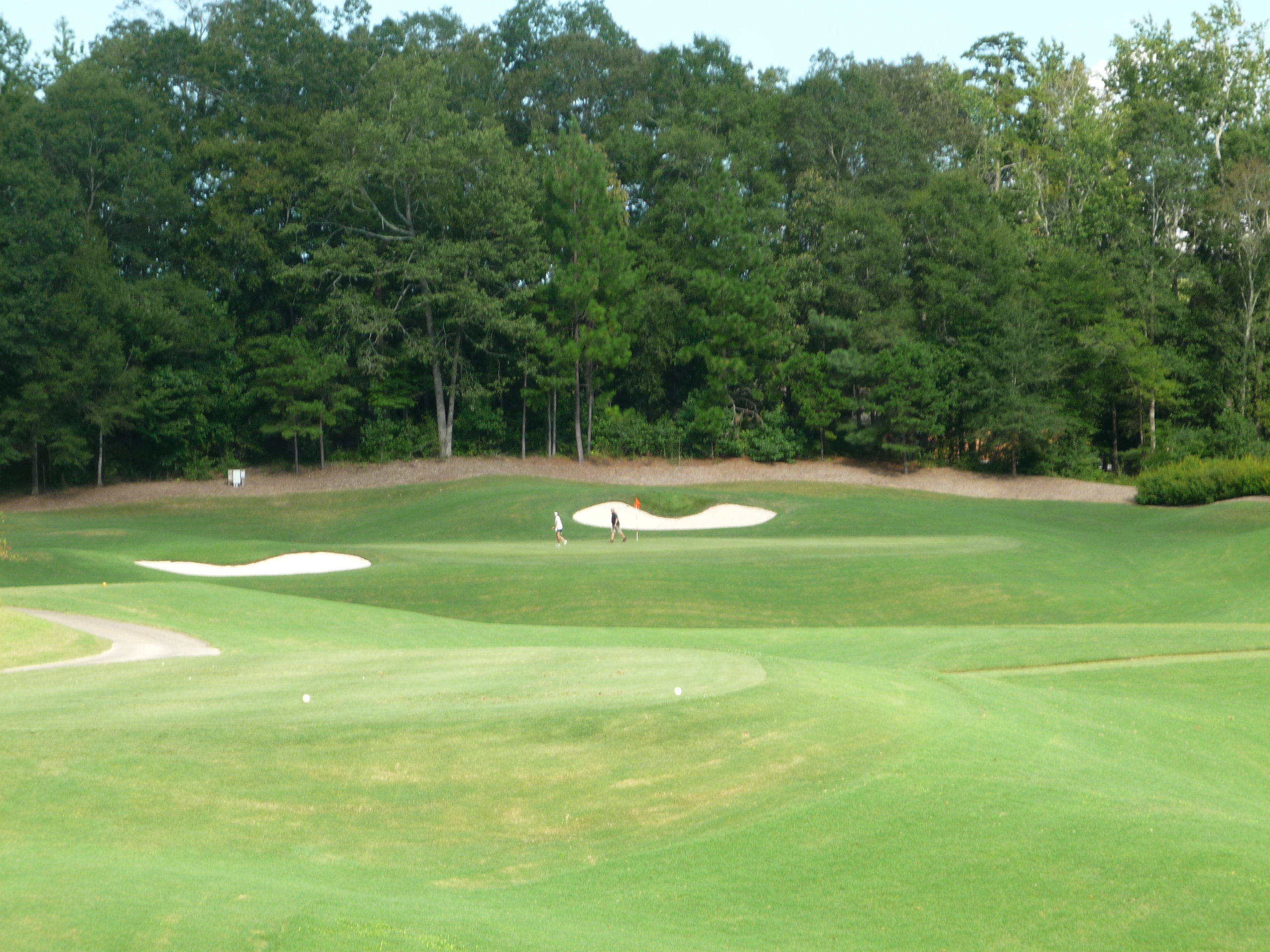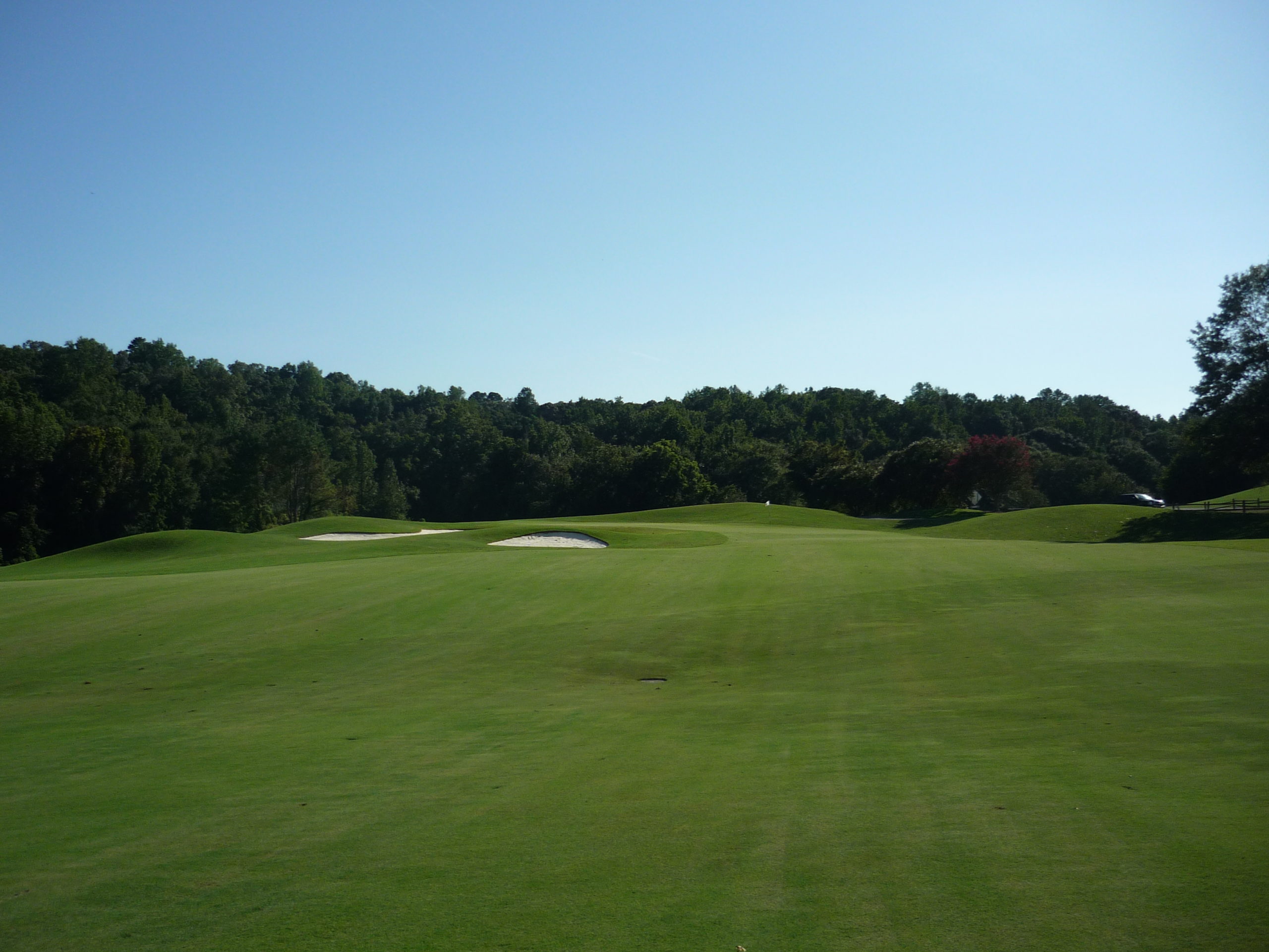 This is undoubtedly my least favorite hole on the course. It’s long but it’s hard to bust driver on anything but a perfect line. A creek cuts in from the left and across the fairway, so you must go up the extreme right side but not too far.