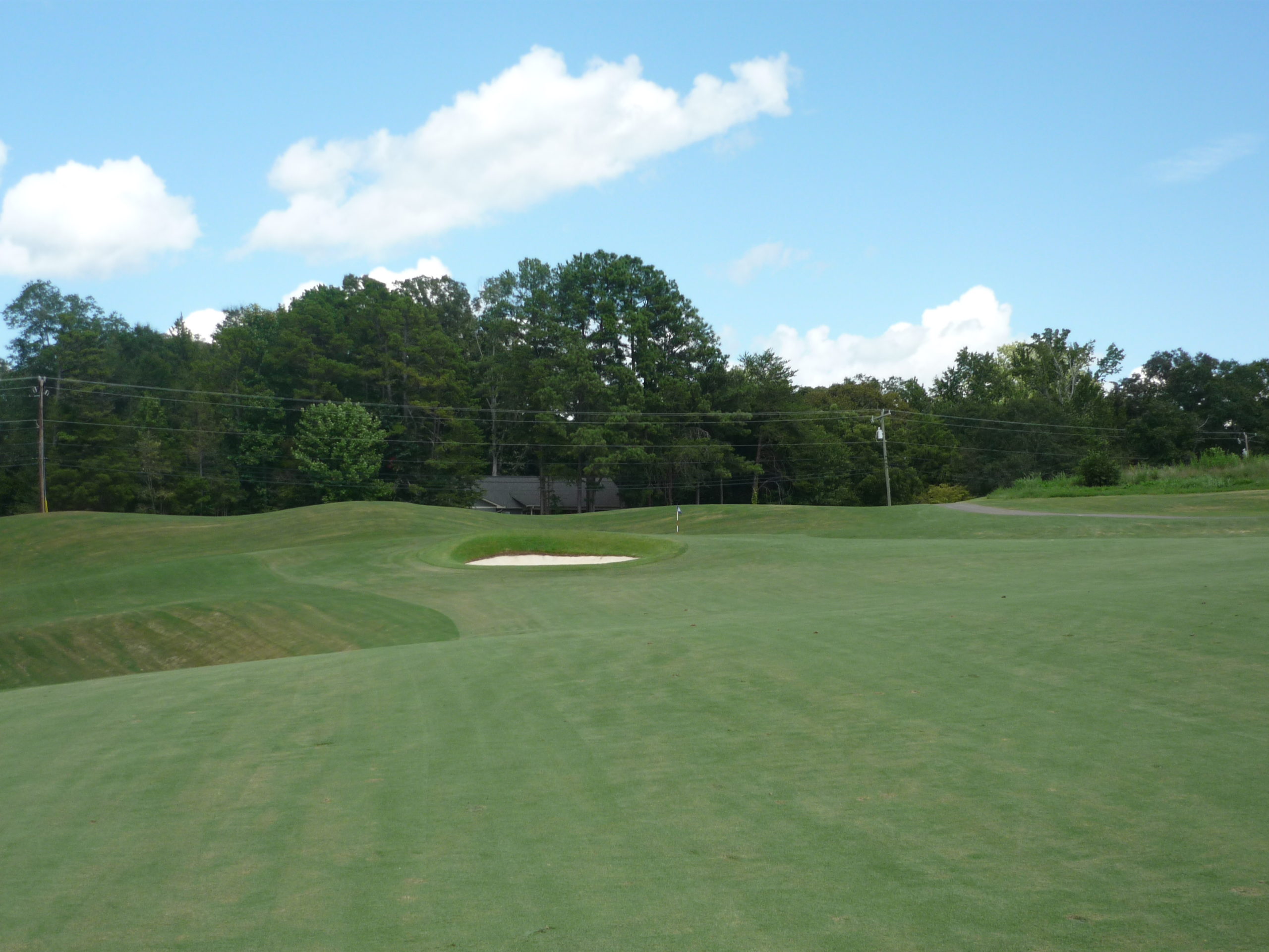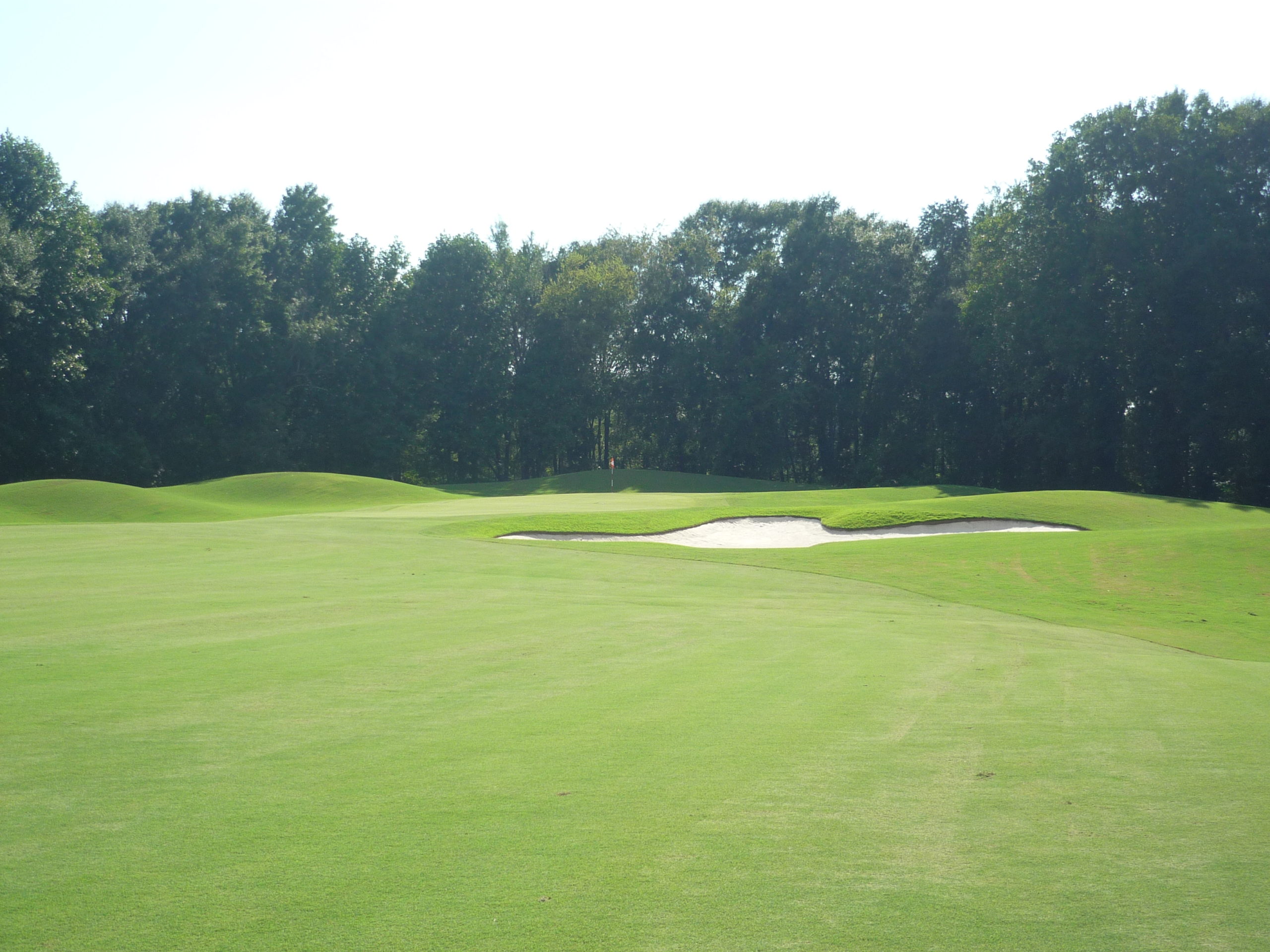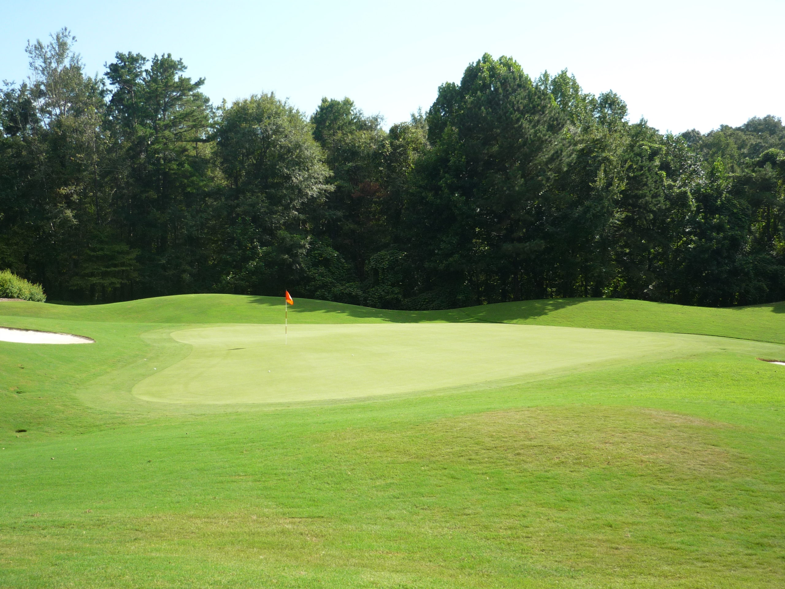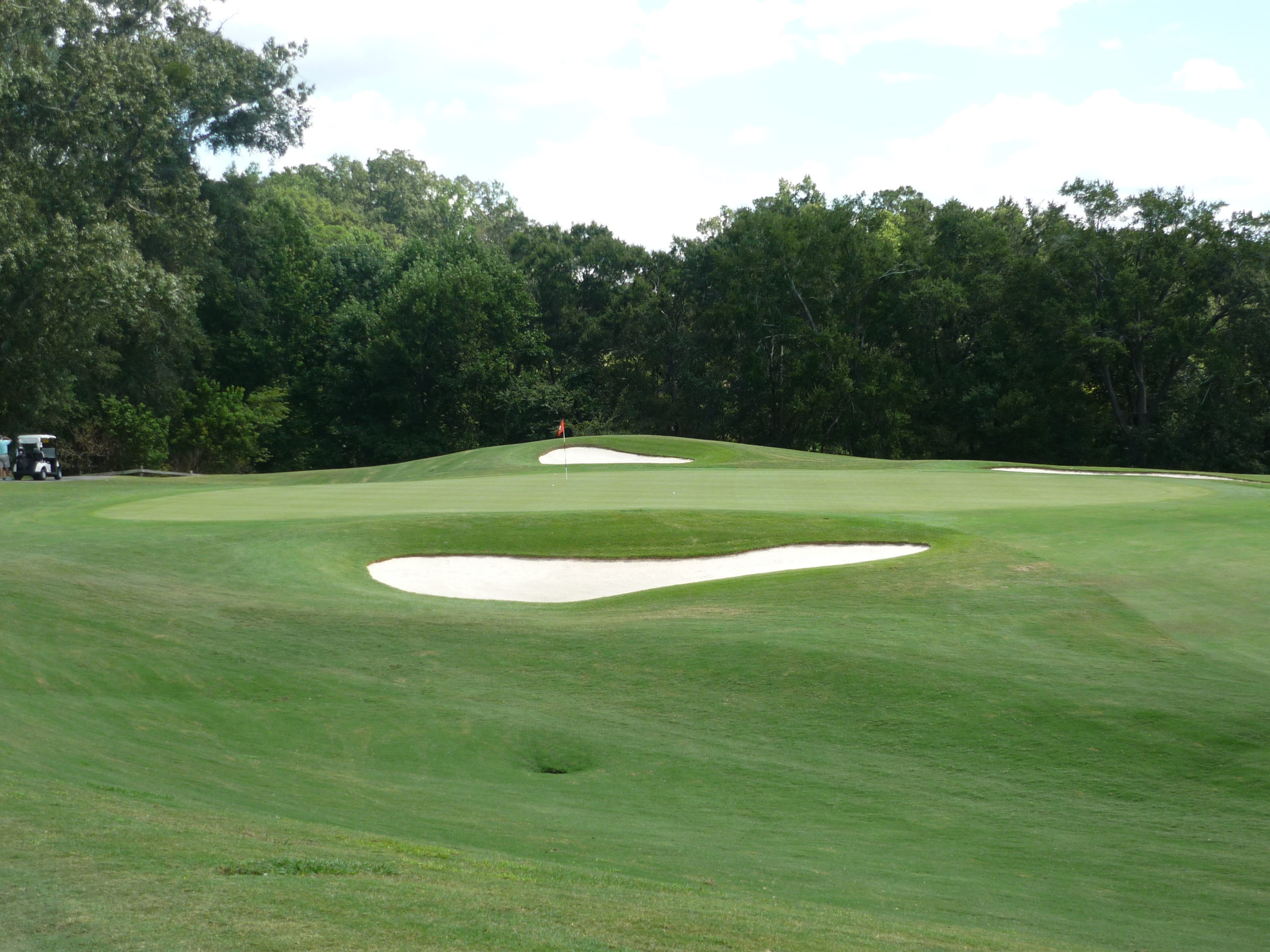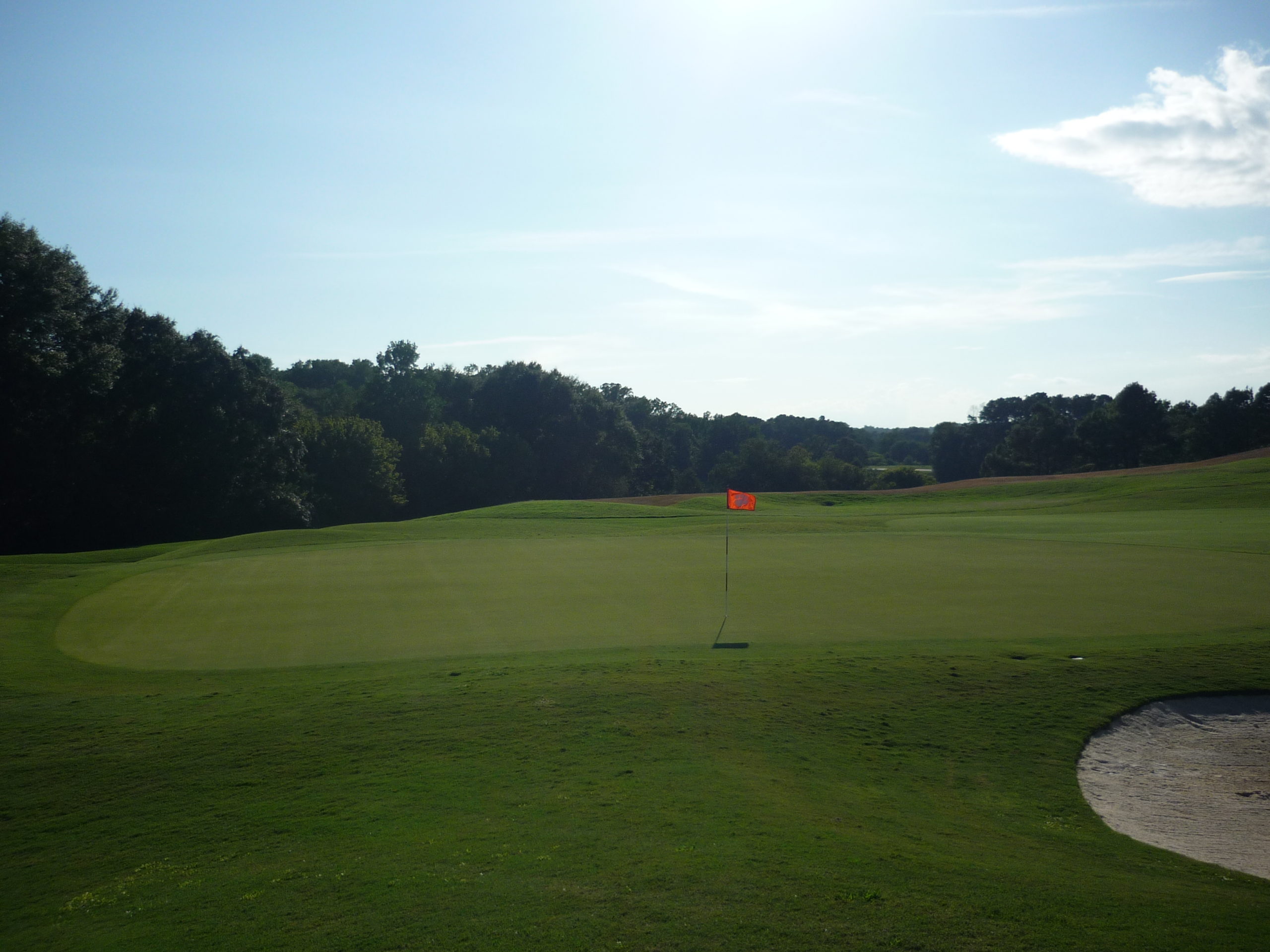 This would be the “signature hole” at the Walker Course. The bunkers form a tiger paw with the green. It’s a bit gimmicky but I like it. They’ve occasionally dyed the sand orange to really drive it home.