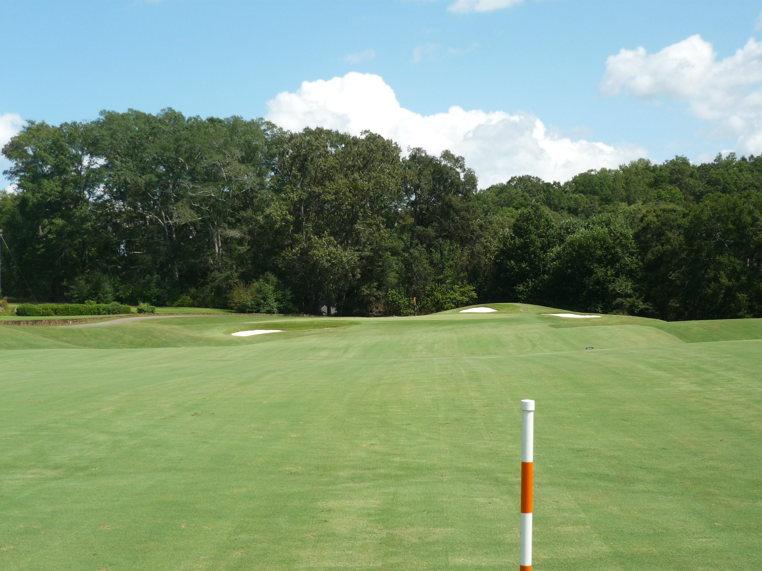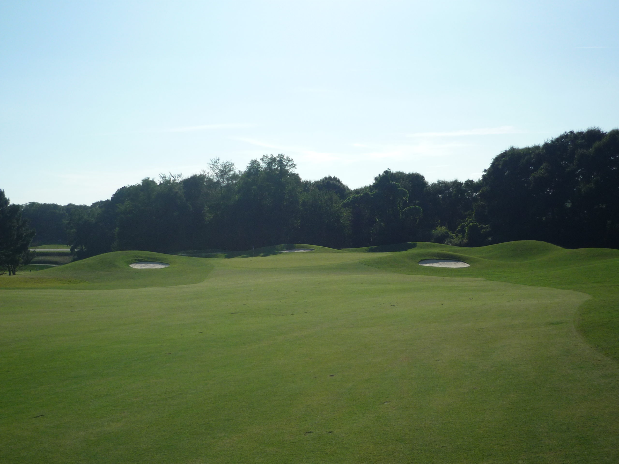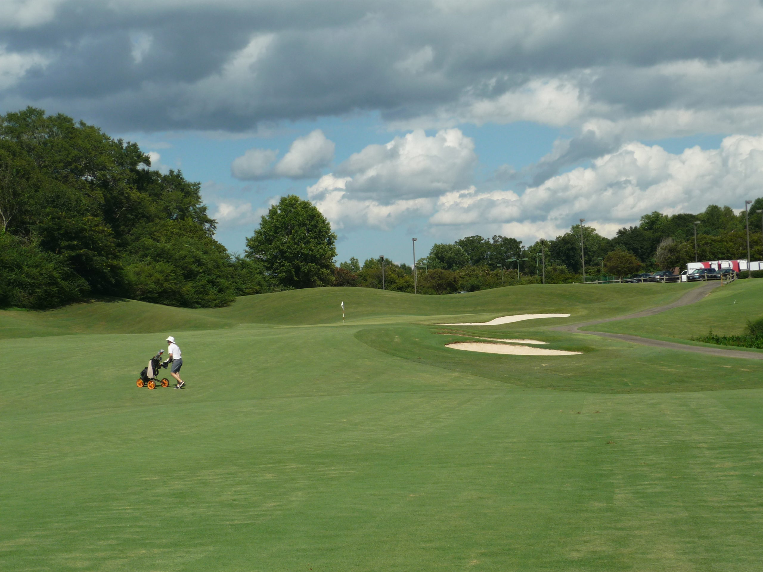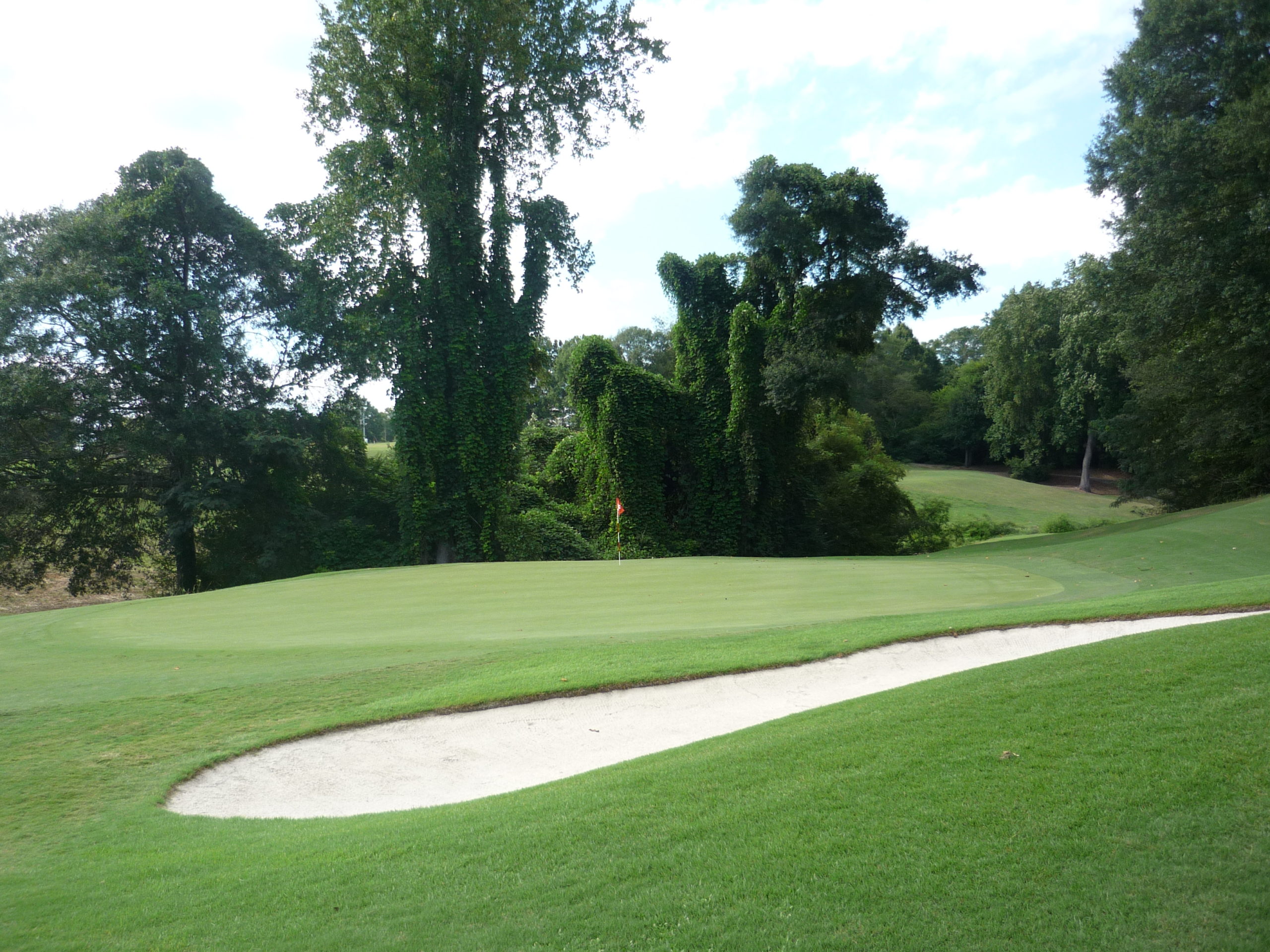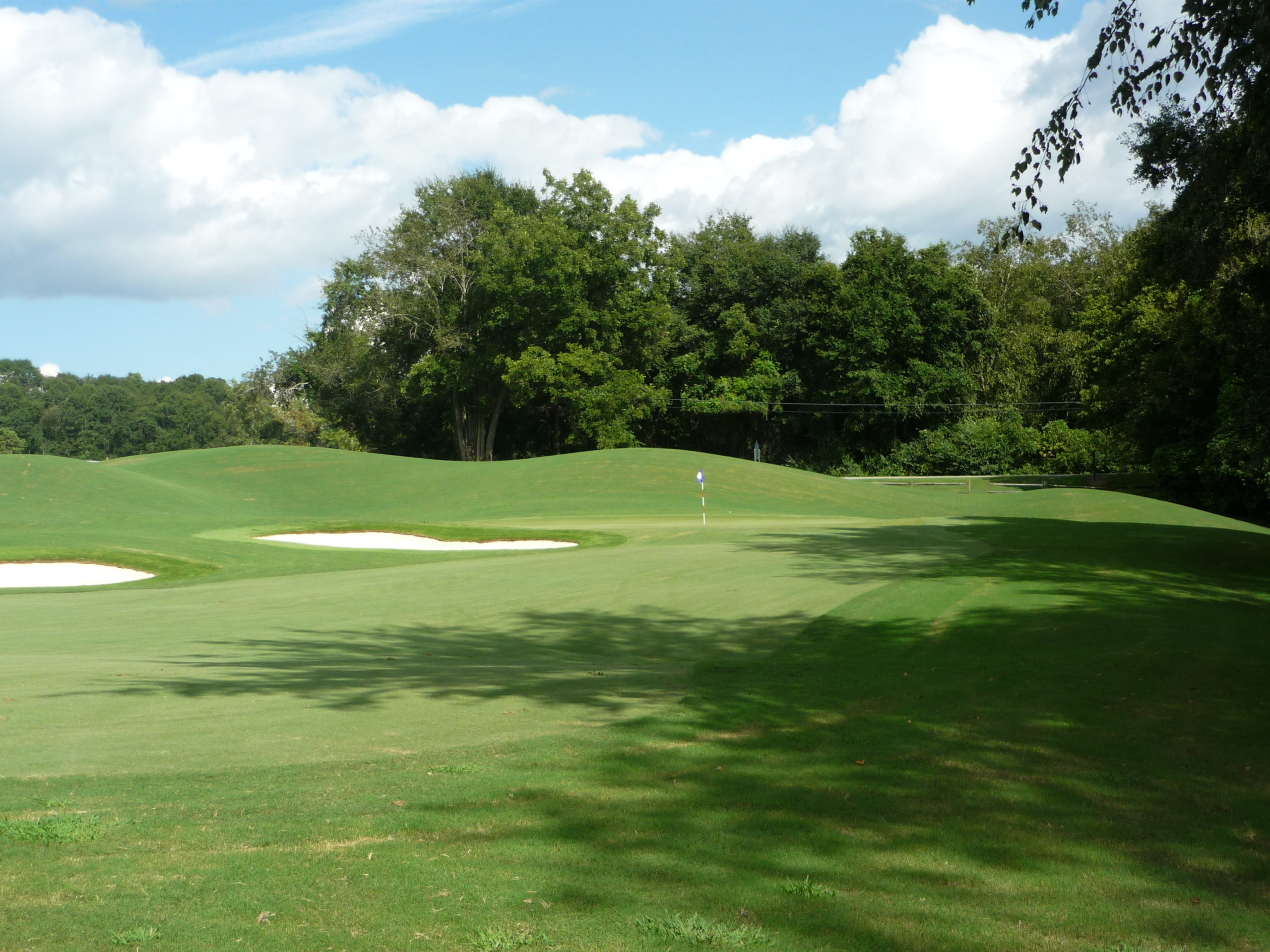 This would be the “signature hole” at the Walker Course. The bunkers form a tiger paw with the green. It’s a bit gimmicky but I like it. They’ve occasionally dyed the sand orange to really drive it home.