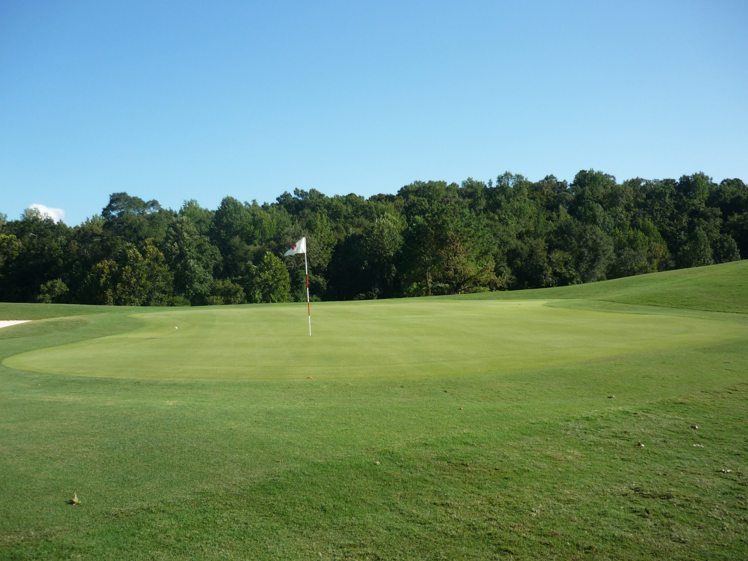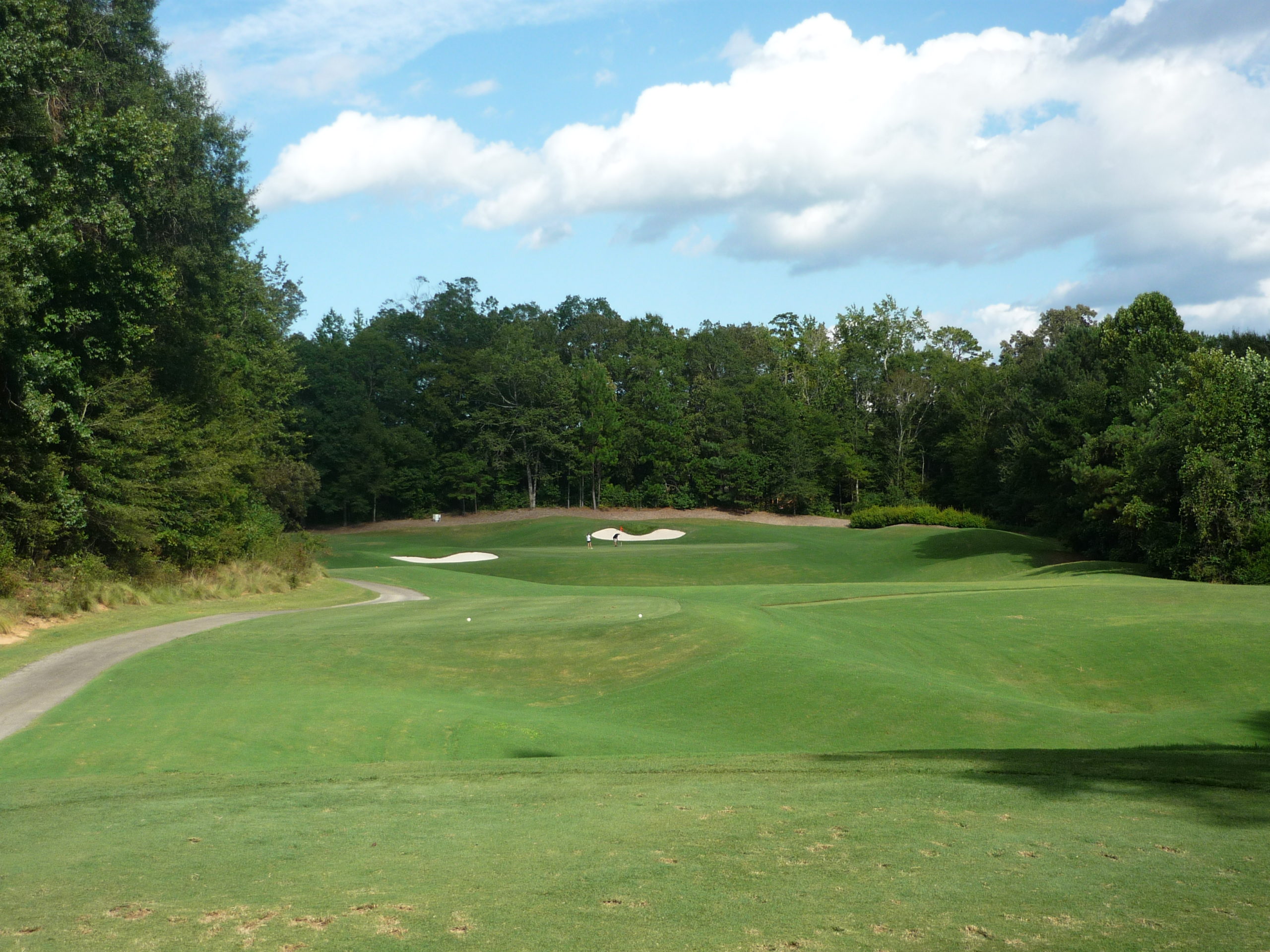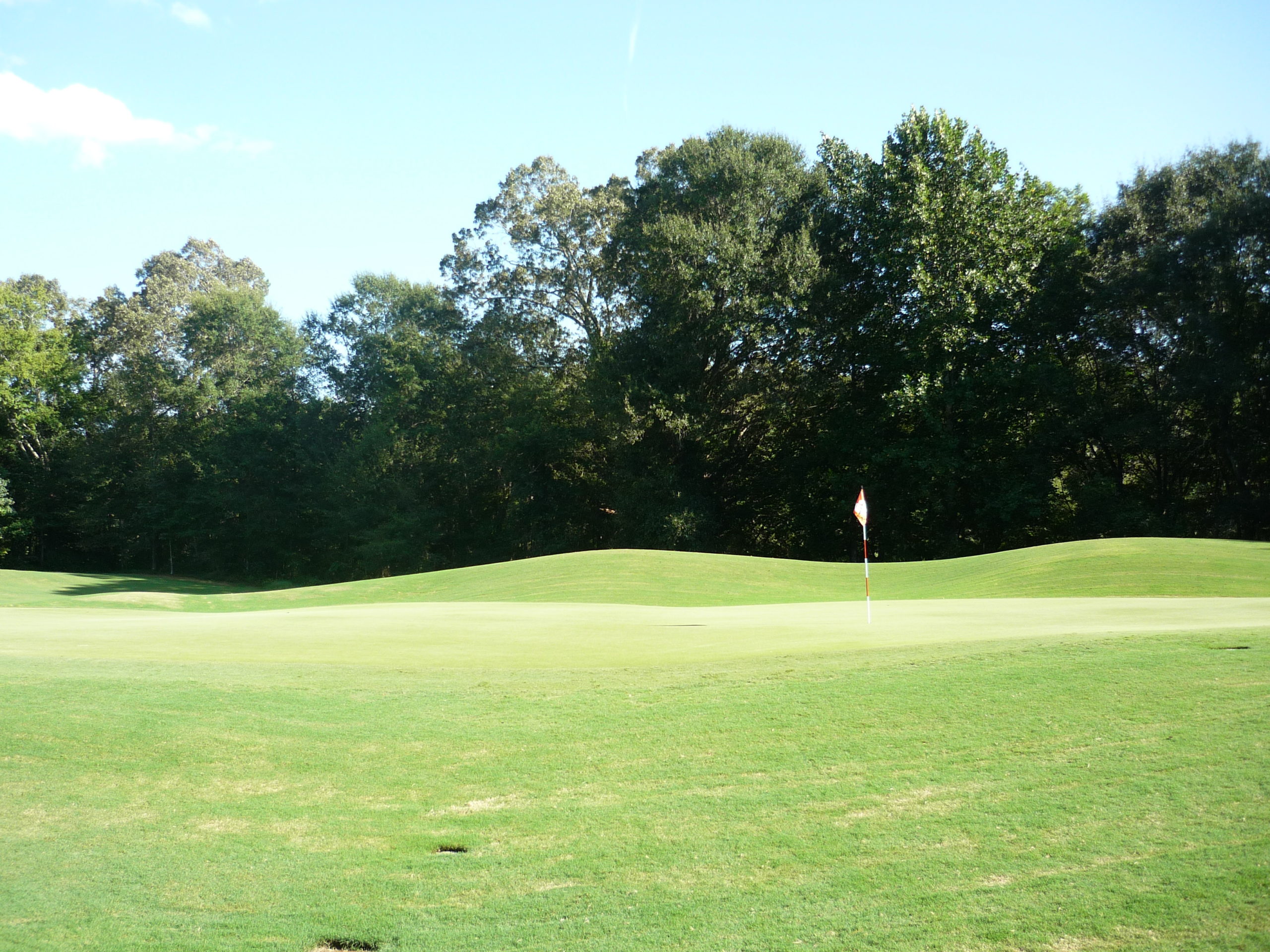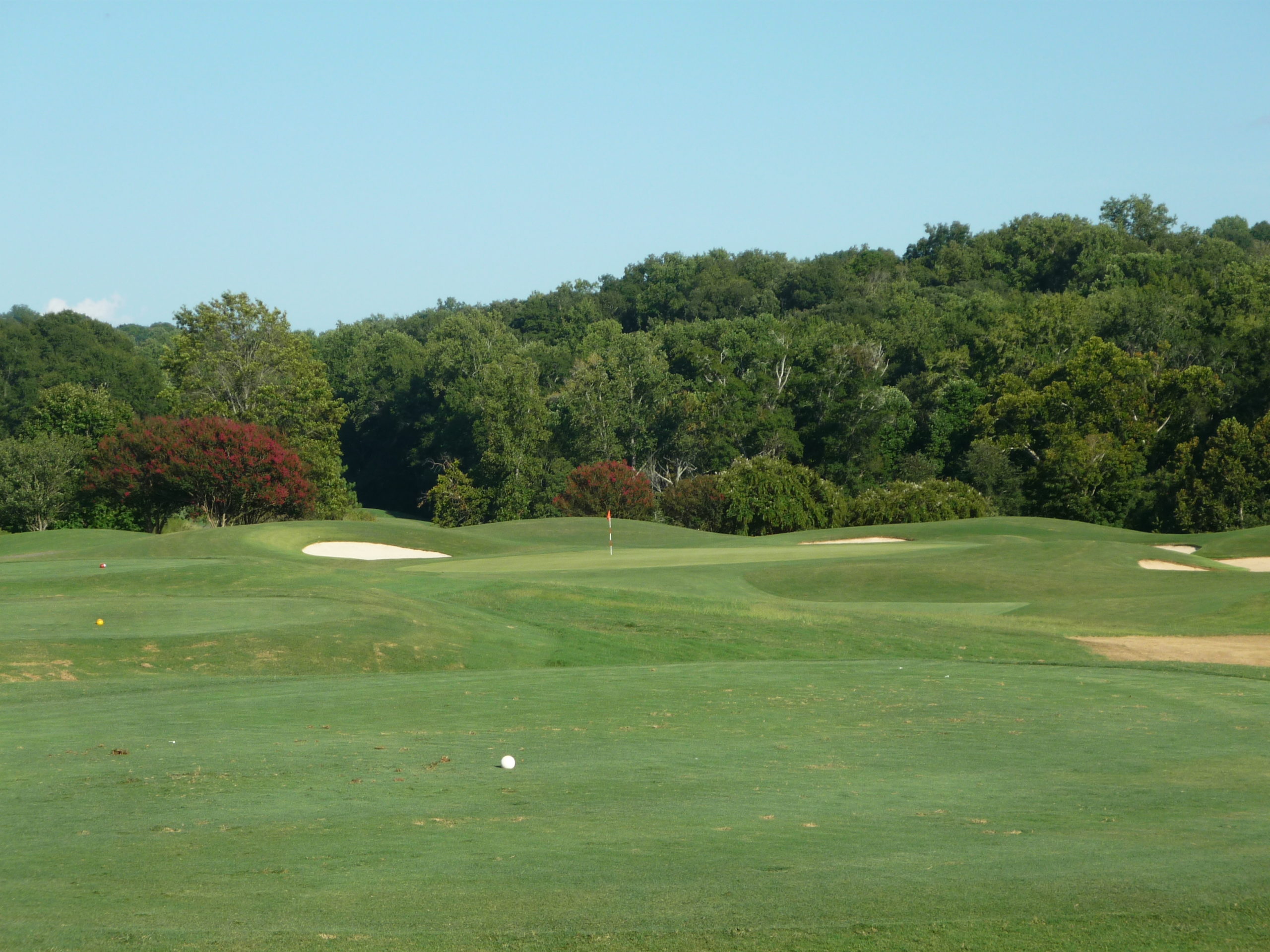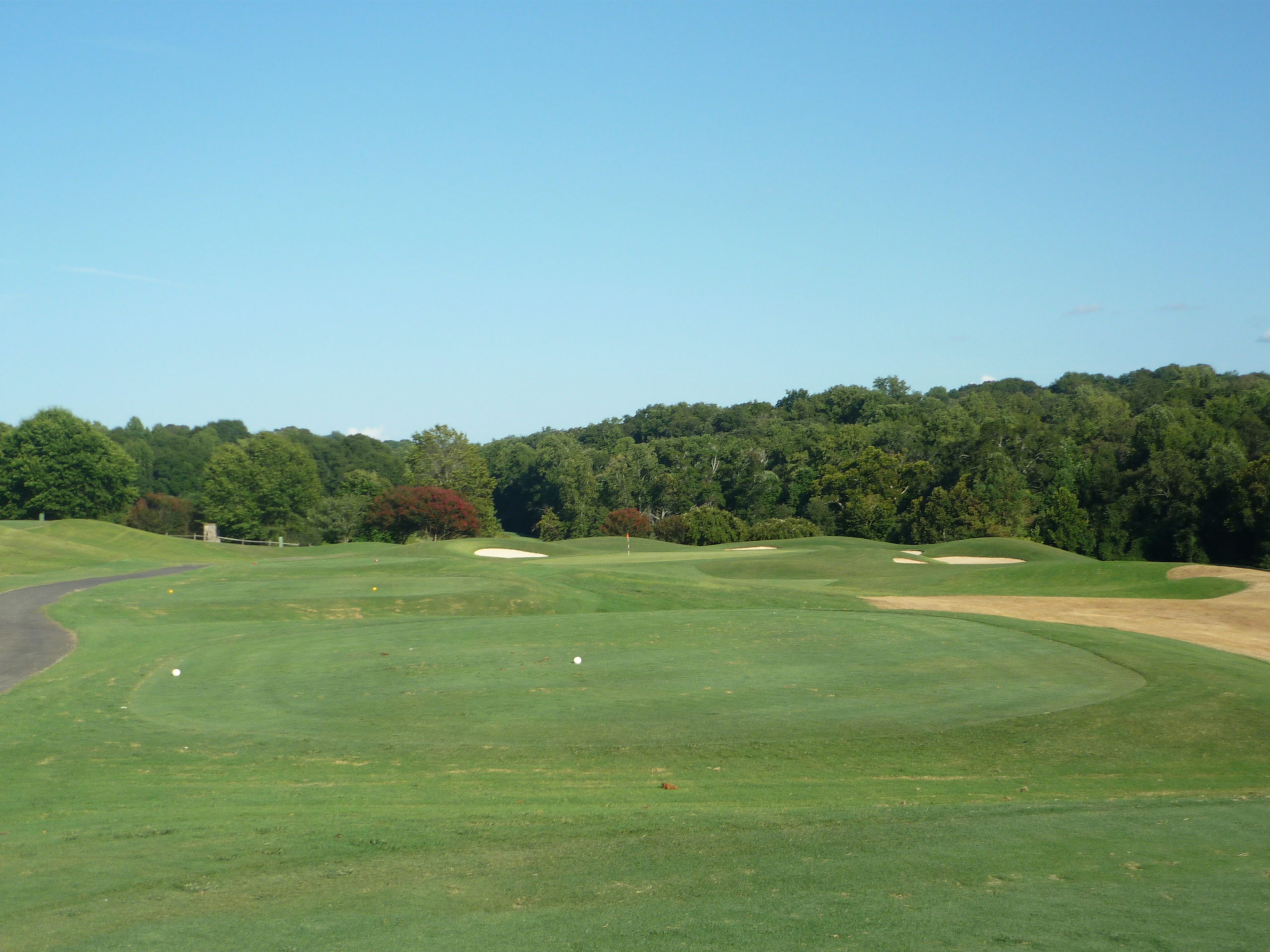 This would be the “signature hole” at the Walker Course. The bunkers form a tiger paw with the green. It’s a bit gimmicky but I like it. They’ve occasionally dyed the sand orange to really drive it home.