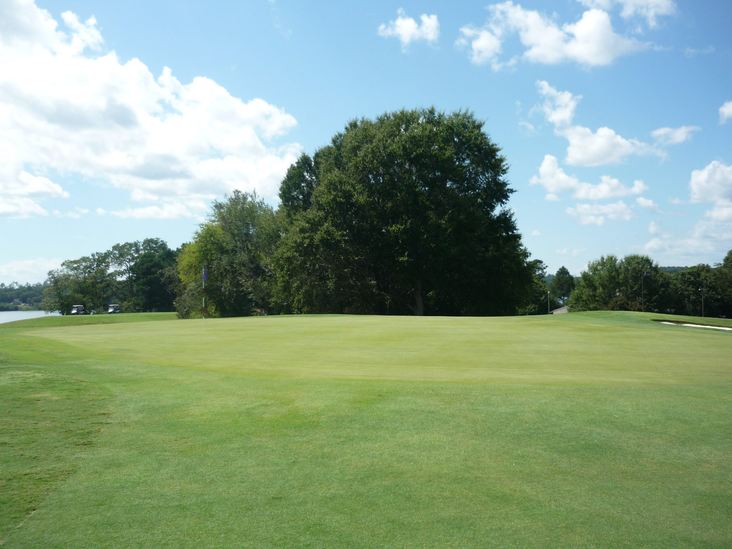 In a scramble at least one person is going to take a shot at this green. When I’m playing my own ball I play to the far left bunker to leave myself with a straight shot to the green.