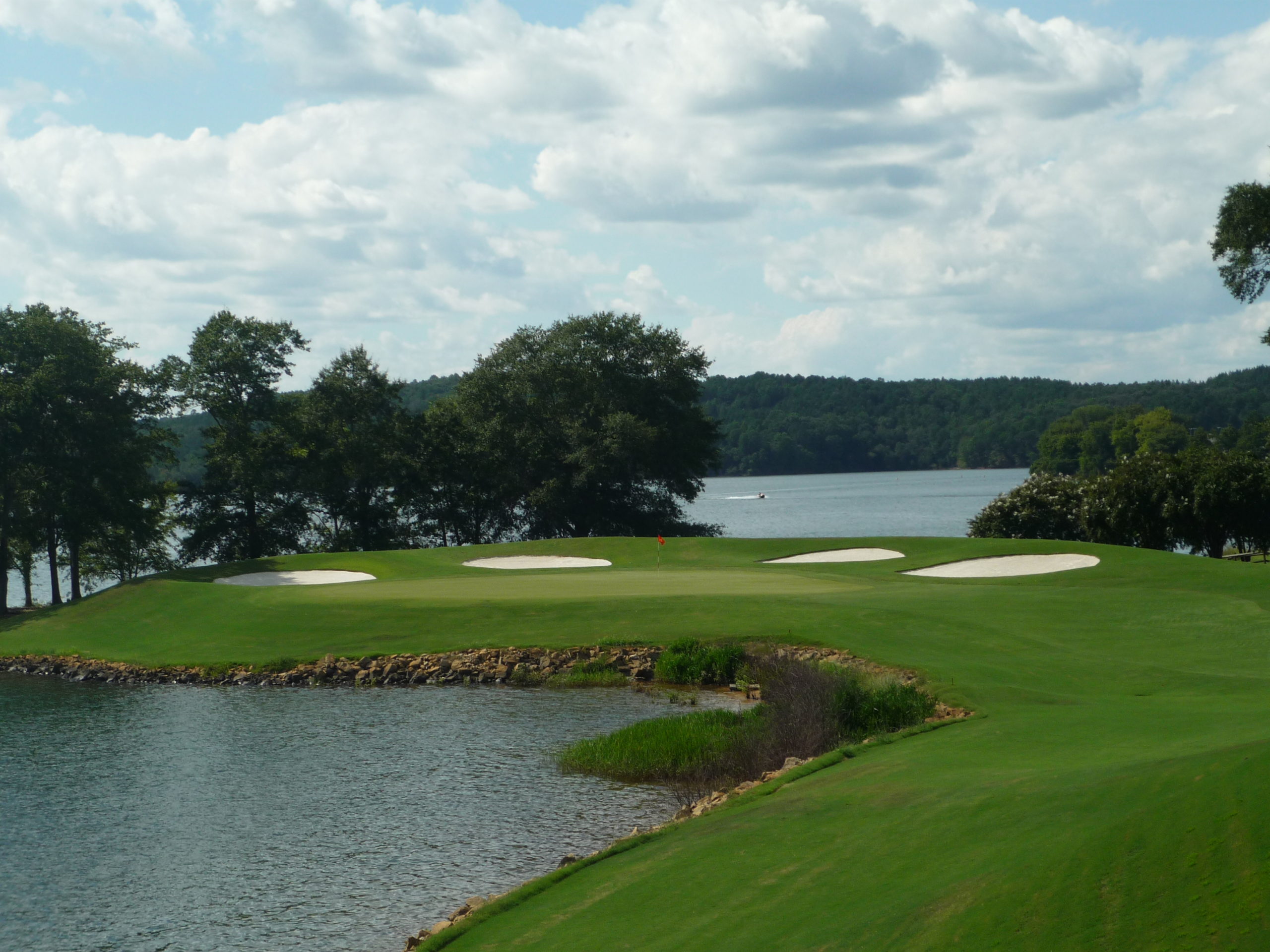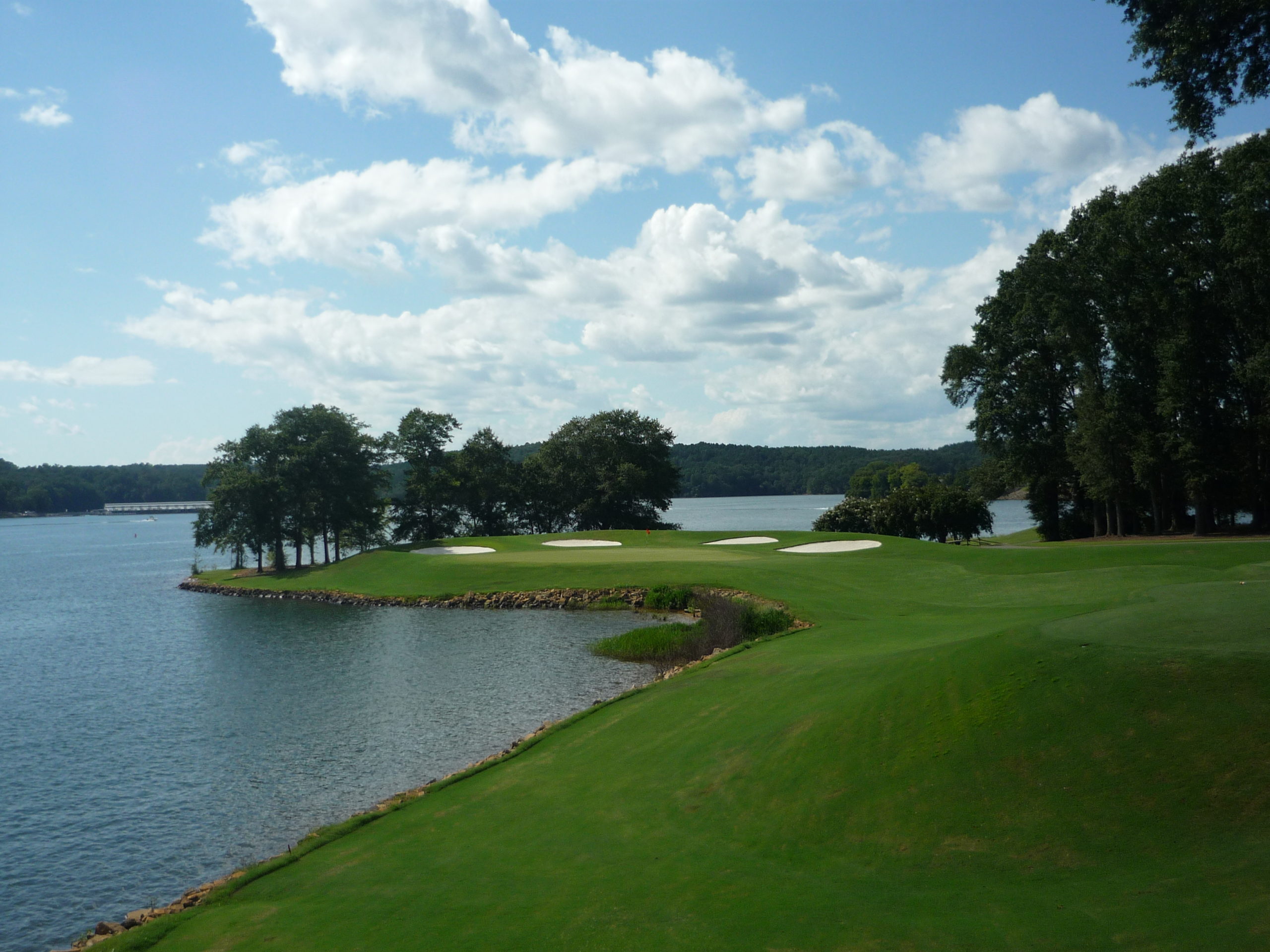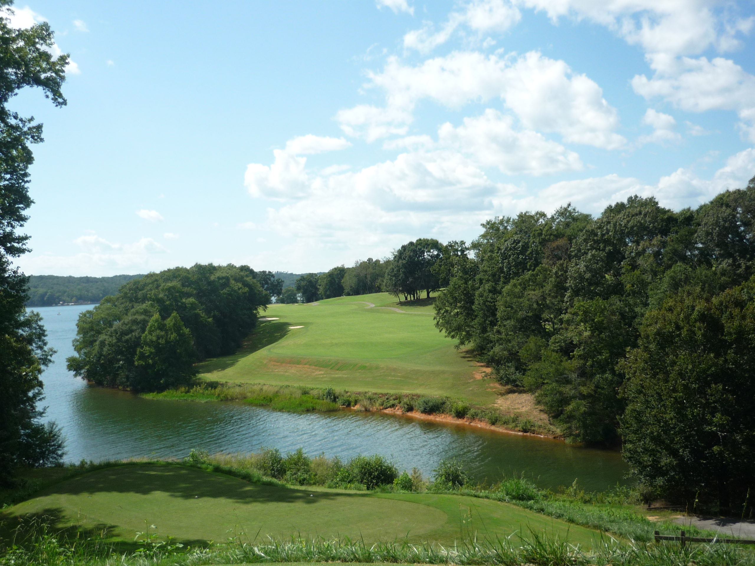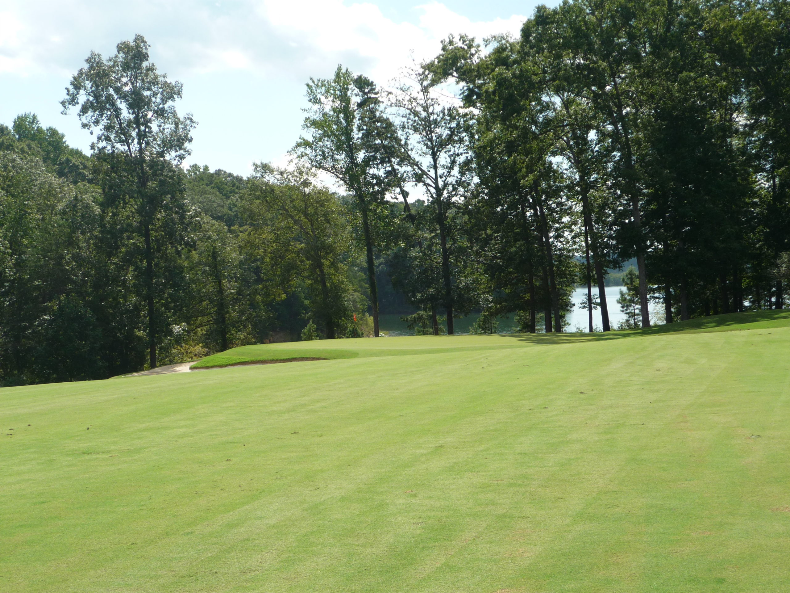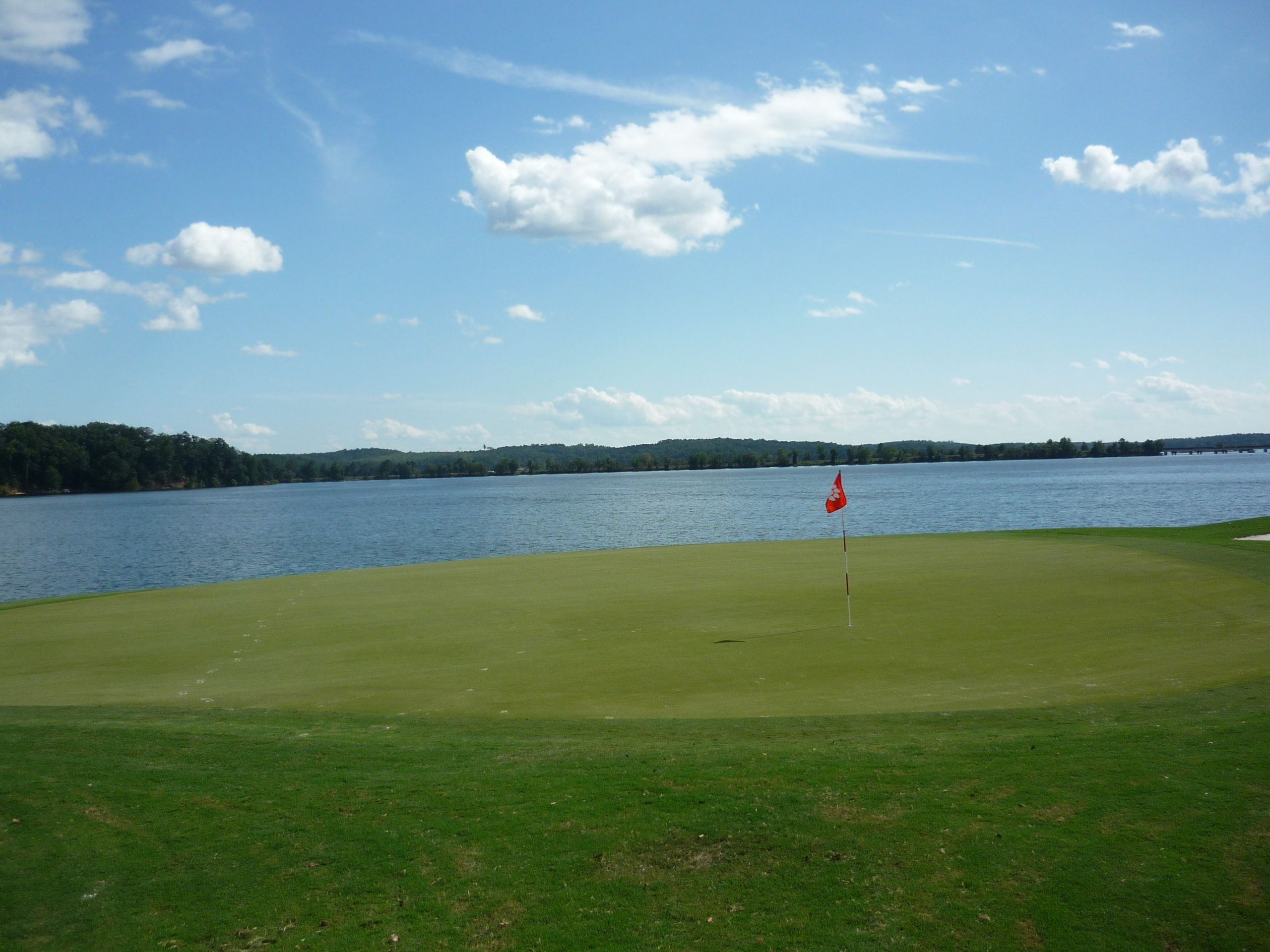 The final stretch features the views of Lake Hartwell. On a big game Saturday you could hear the roars of the crowd at Death Valley. There is room past the trees on the right.