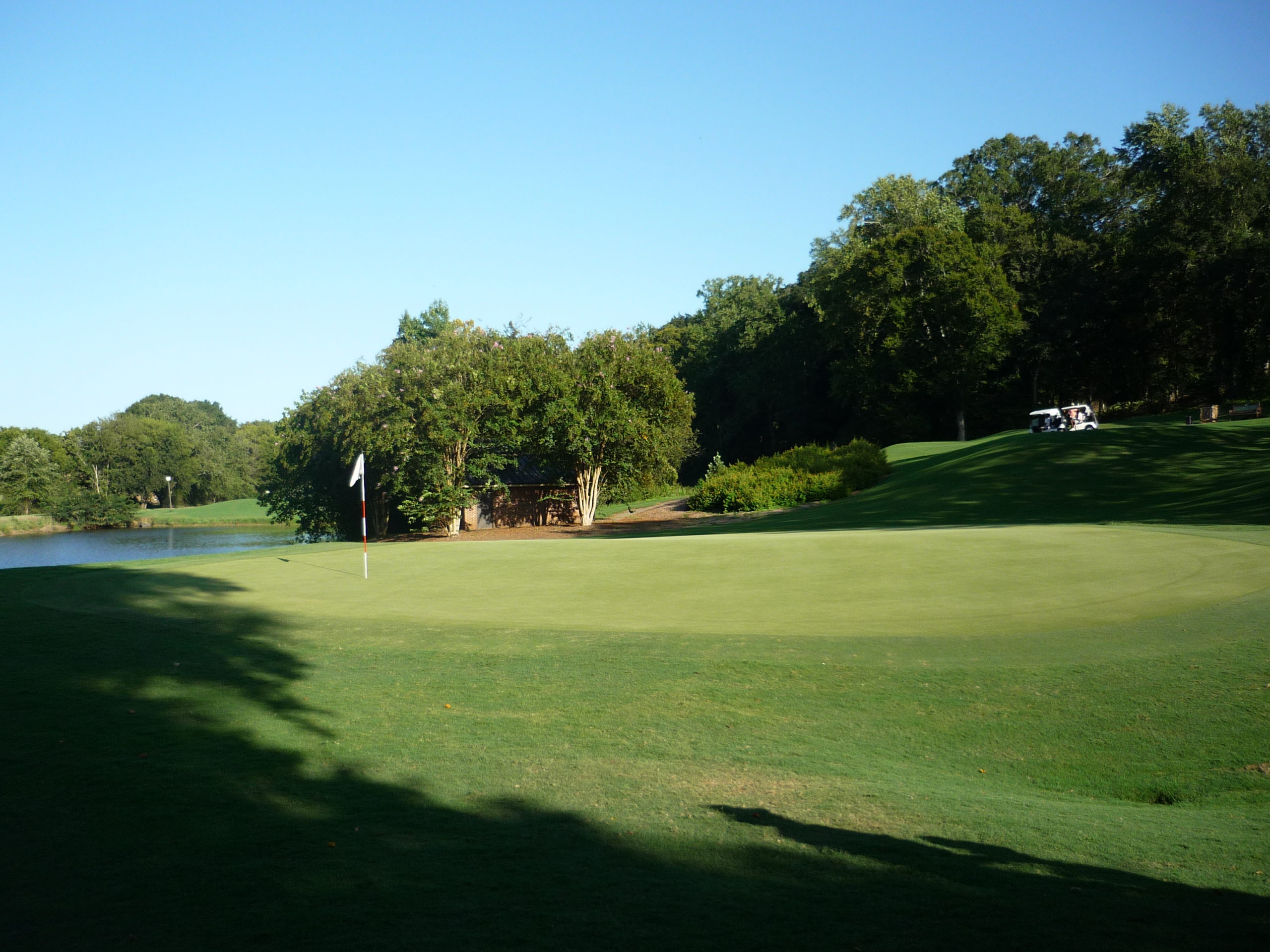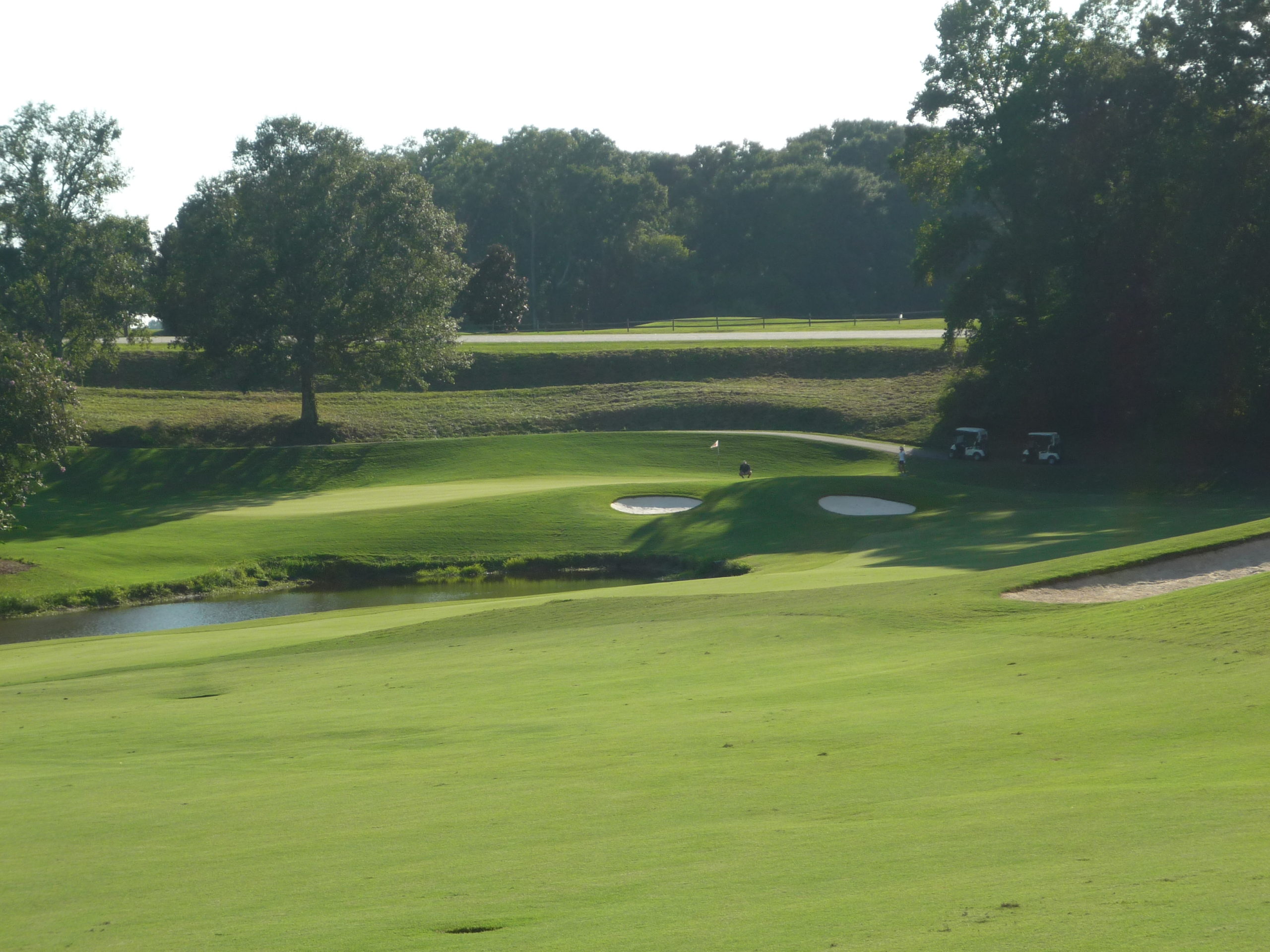 If you play back for safety, you’re faced with a 200-230 yard approach over water to an elevated green. I’m never a fan of forcing people into long, difficult shots.