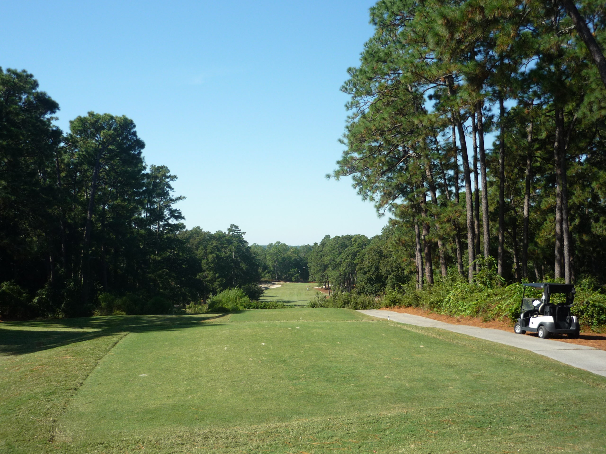 This hole is a great foil to the last one. The third is perhaps the most demanding at Aiken with a narrow fairway and ample length.
