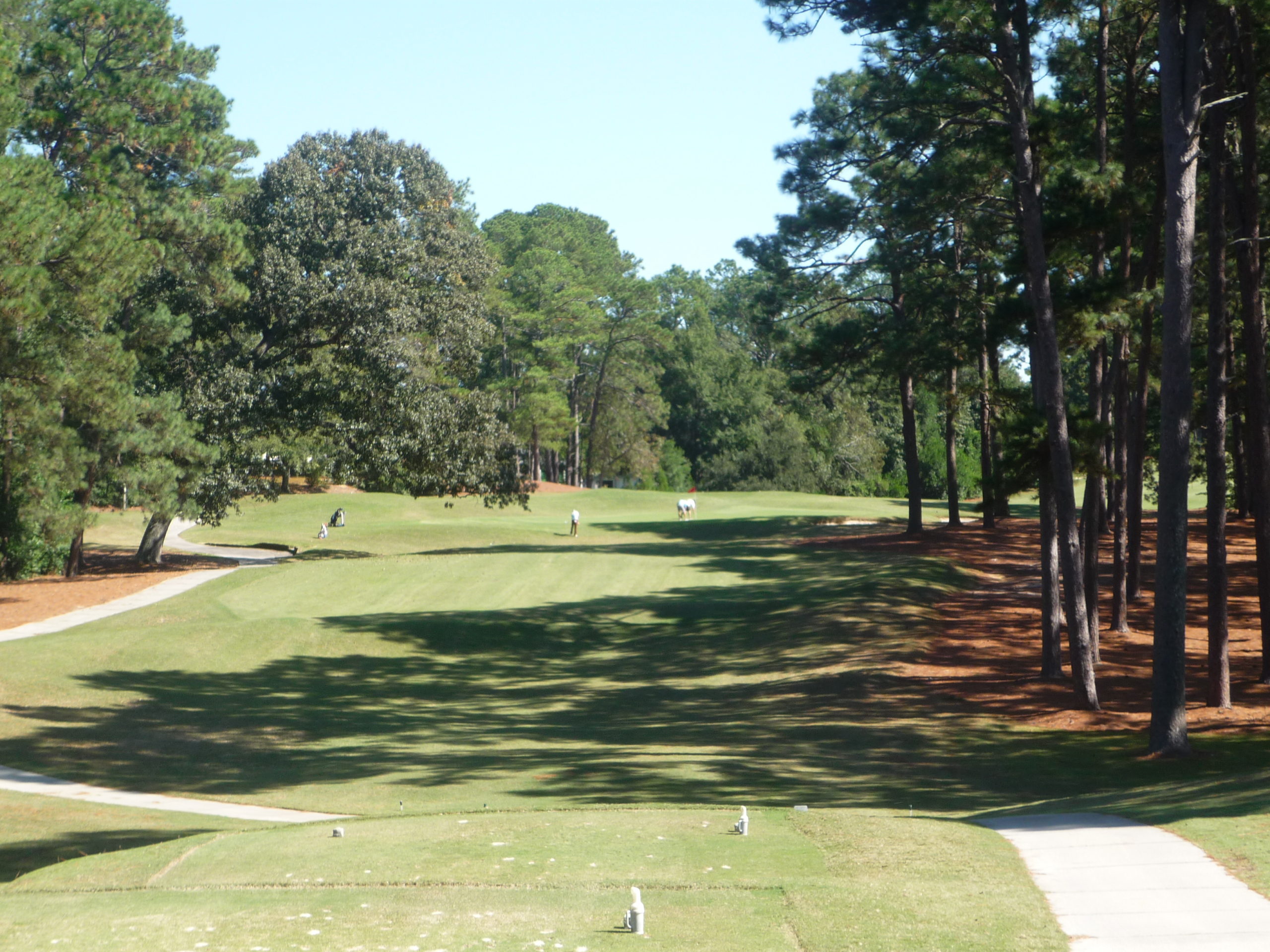 Playing through the trees is a theme at Aiken Golf Club. Precision is a must on this uphill par four.