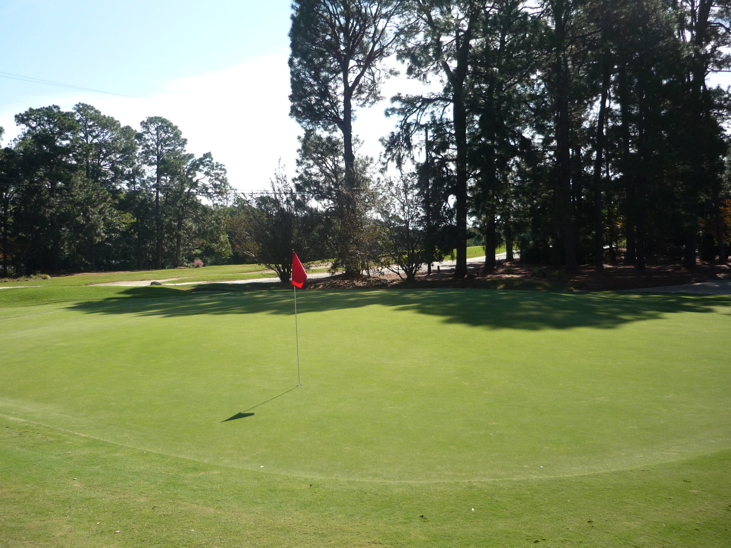 The Aiken Golf Club does things a little differently, so ending on a par three fits right into their template. This is the flattest of the one-shot holes with the parking lot and road lurking to the left.