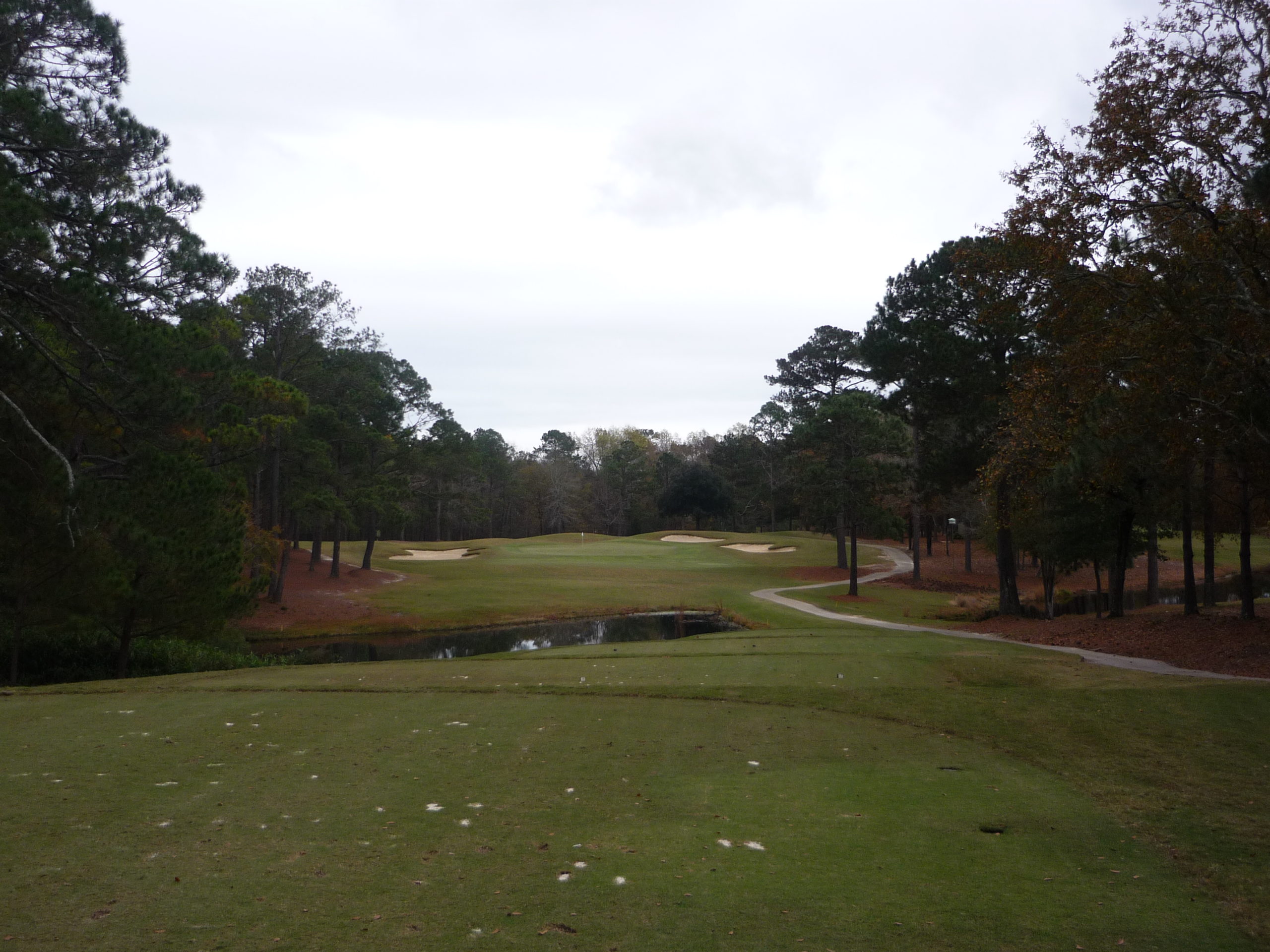 This hole curves to the right a bit and doesn’t have any sand until you get to the green. Stay out of the trees and a par should be easy.