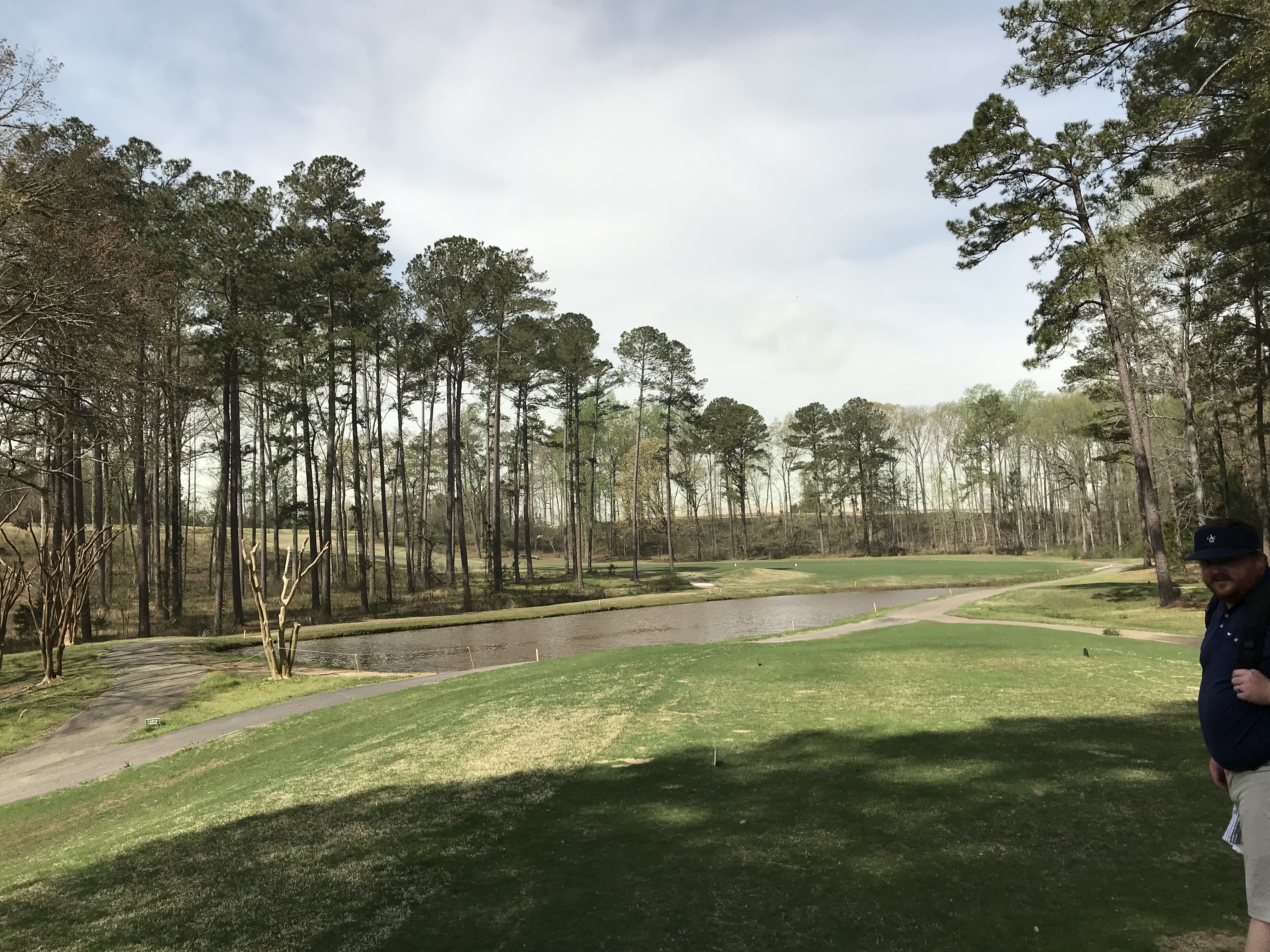 I didn’t do the full, start to finish course tour on this one. I did get some shots to give you a general overview of the course. Below is the dogleg left second hole where good drives leave you a short iron into the green. Special appearance from Luke.