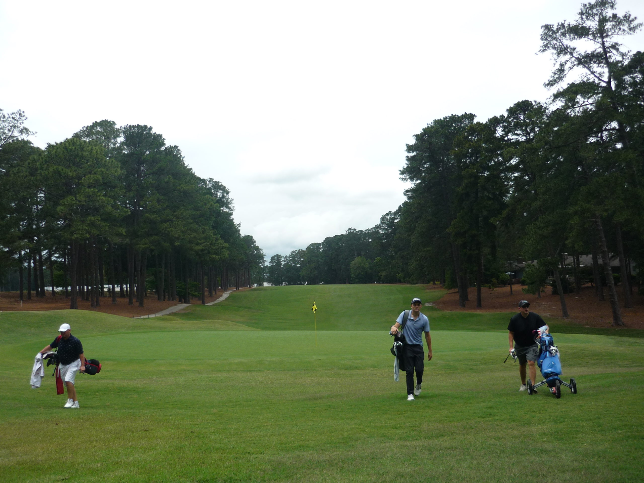 The No Laying Up universe prevailed again when Nick asked if anyone wanted to join for a midweek tee time at Pinehurst #1. I jumped at the chance to see the course again and get some pictures. Unfortunately, the weather betrayed us and I only got the few you see below. We played in a steady rain for at least half of our round. Poor Nick didn’t have any raingear and got soaked to the bone.