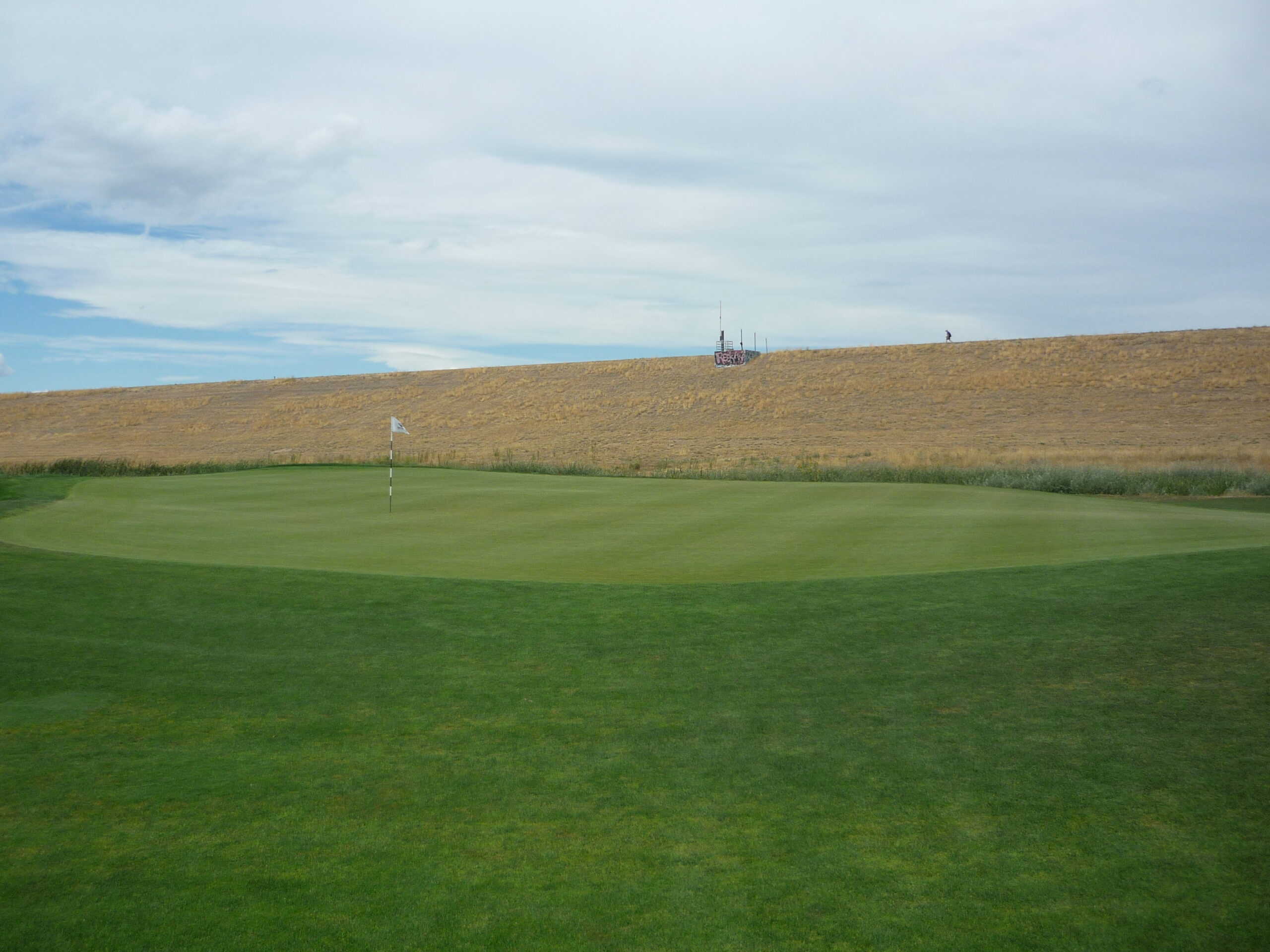 This elevated green can provide a challenge when the wind is up. It’s pretty short but any misfire will get rejected by the slopes.