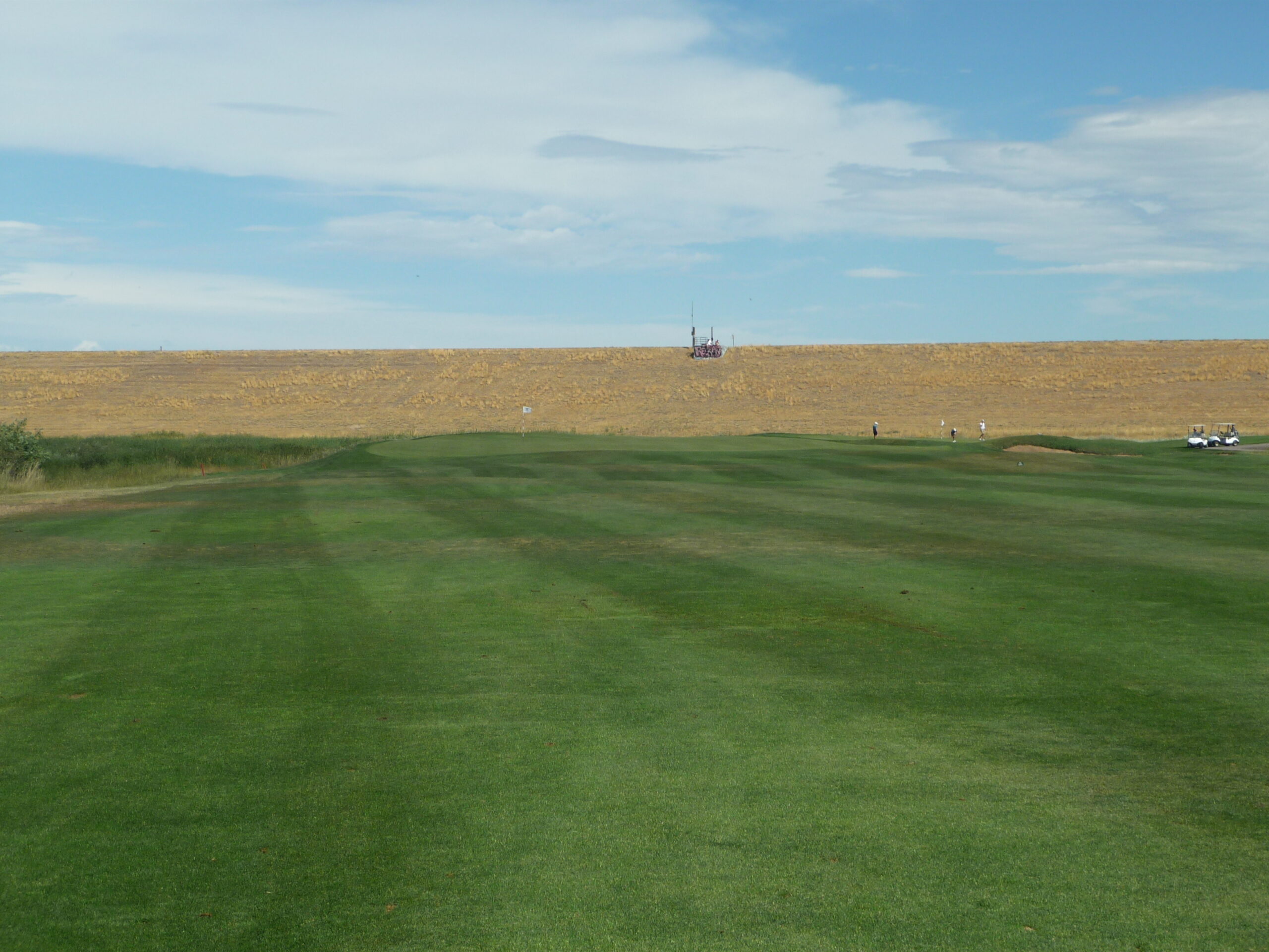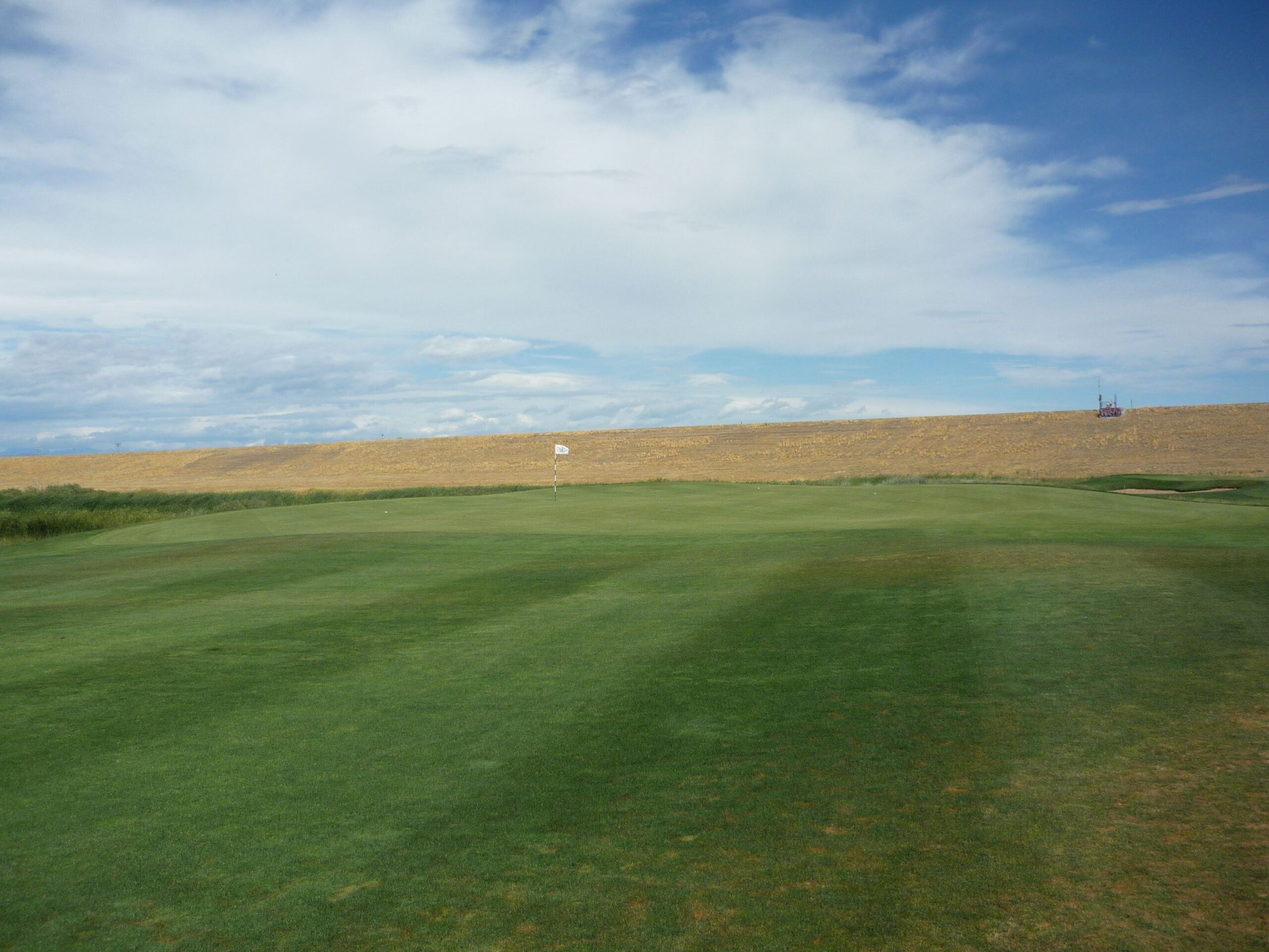 It’s bombs away on this downhill par four. Even the fescue to the right of the fairway wasn’t all that dense. Avoiding the bunker is your only objective.